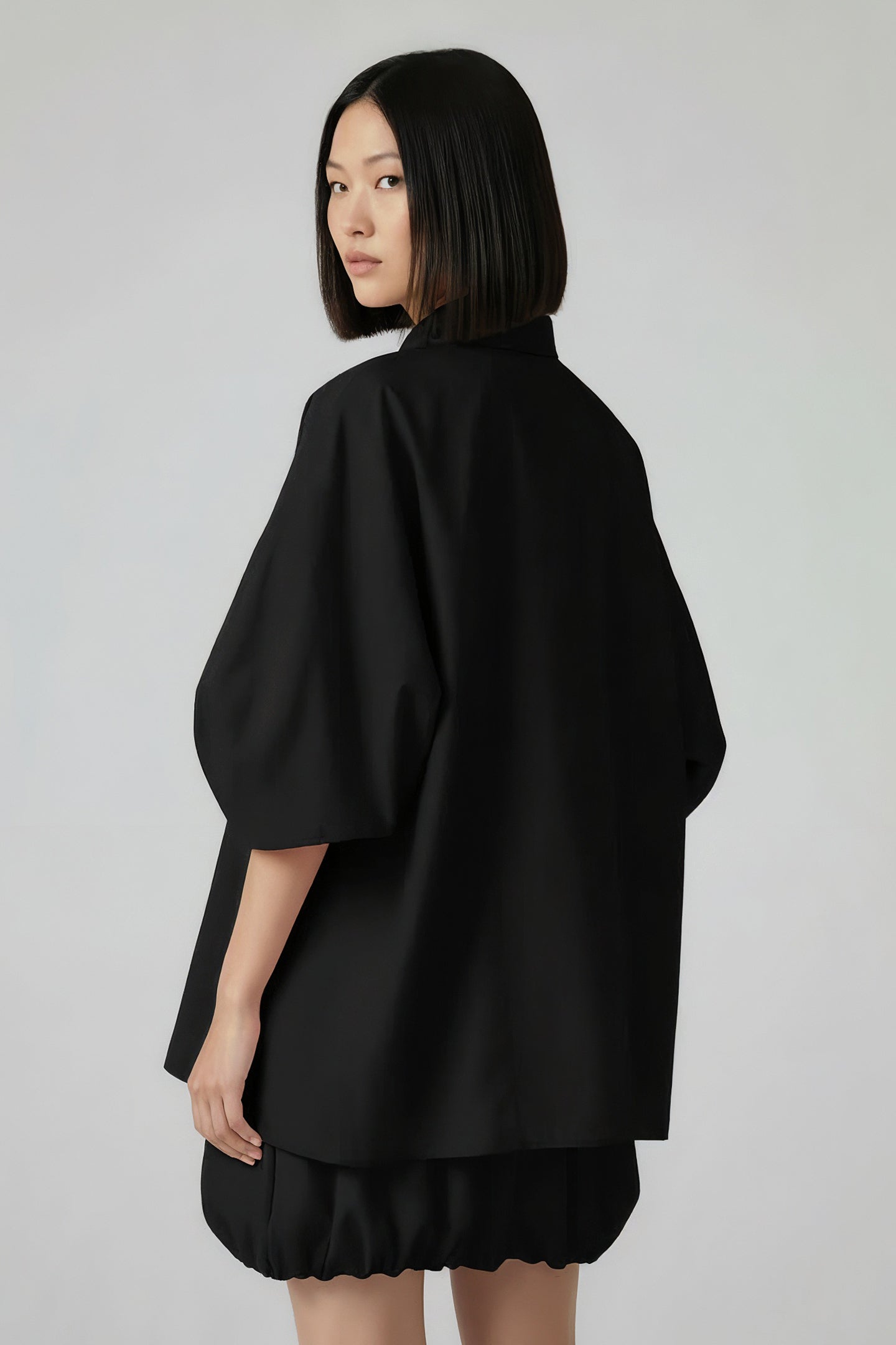 Fit: Relaxed, free-size silhouette; designed to drape gracefully with structure