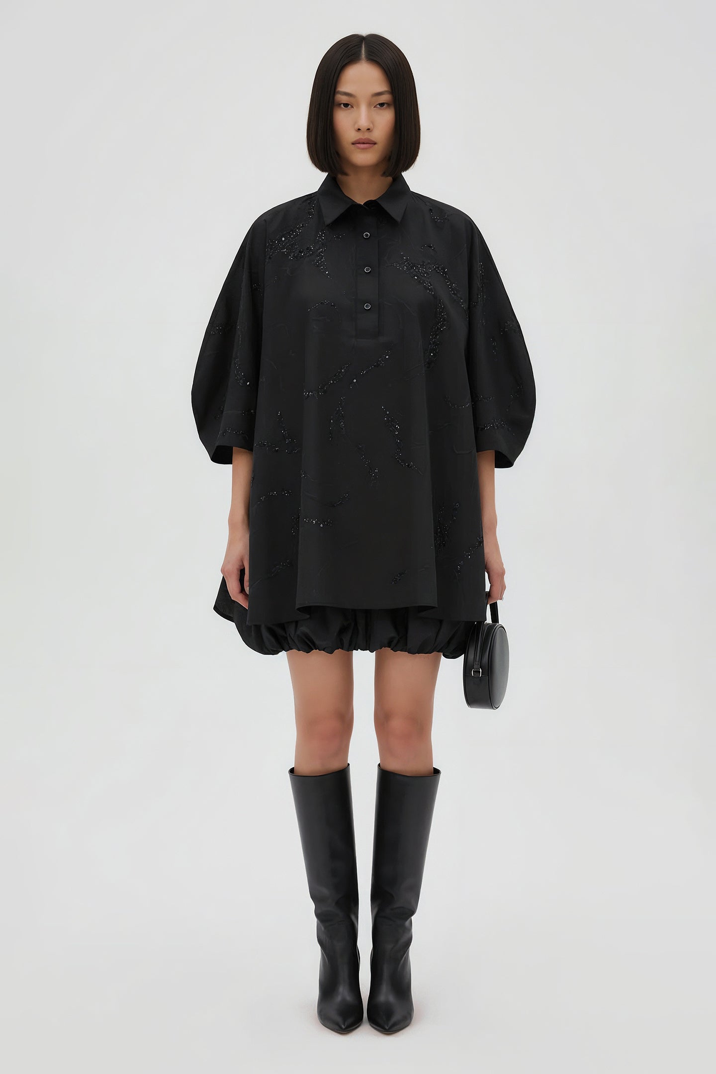 Wear It For: Contemporary gatherings, art events, or elevated travel looks where comfort meets couture restraint