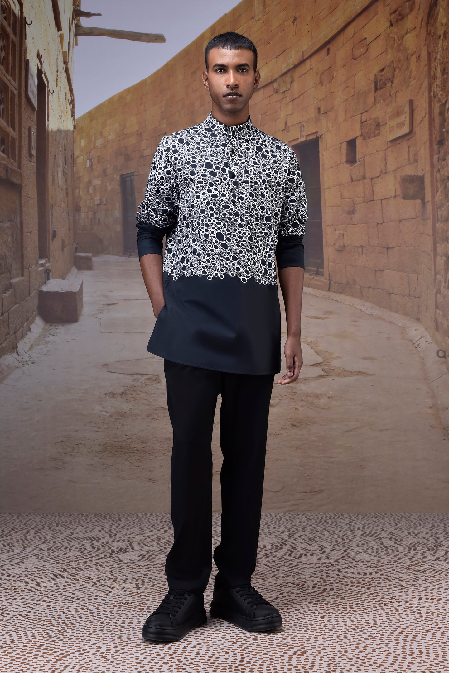 Semi-Fitted Turtle Neck Top with Cell Degrade Print