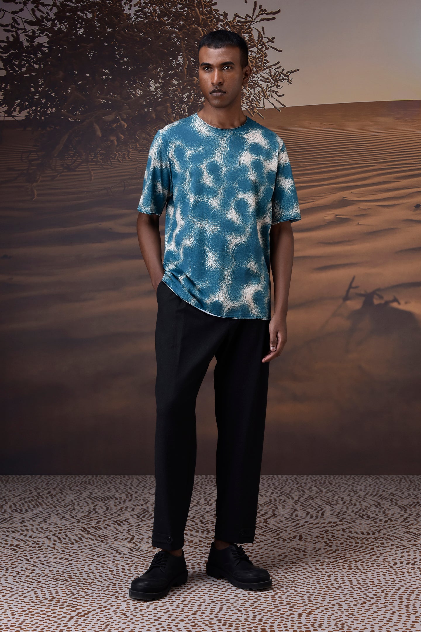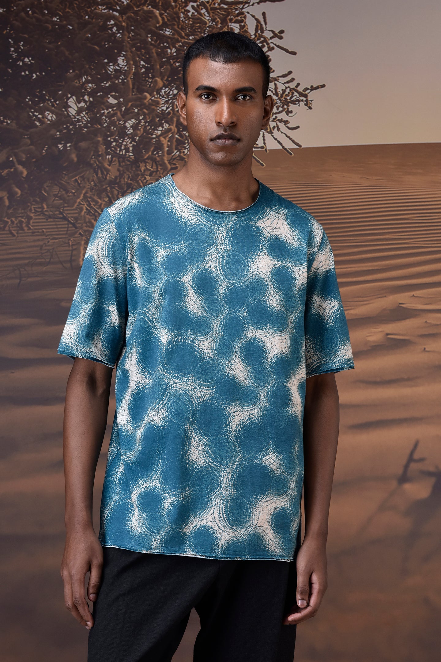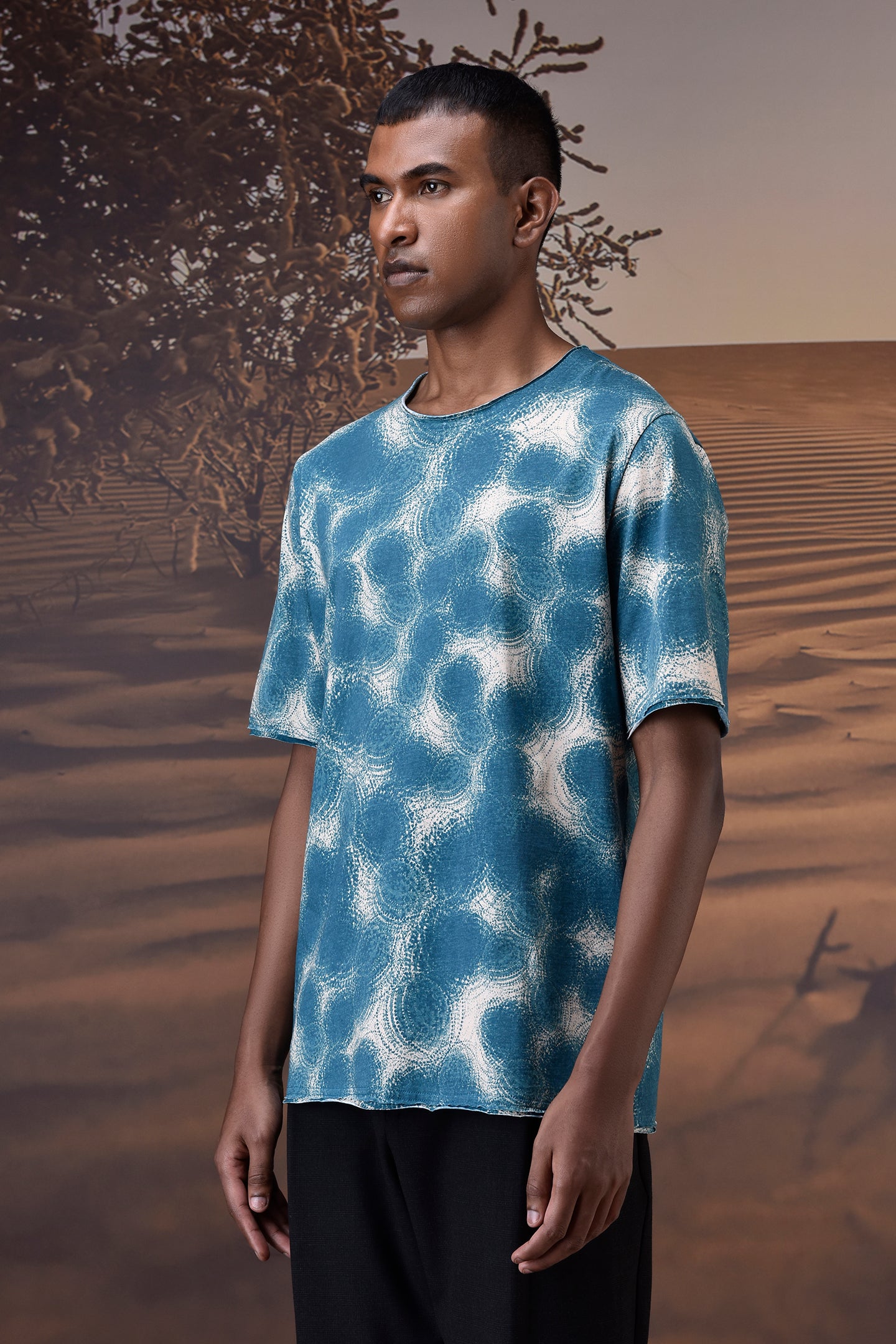 Cut from soft, breathable cotton single jersey, this retro blue t-shirt brings a fresh graphic flair to everyday wear. The abstract wave pattern, rendered in dynamic blue and off-white, lends a subtle retro vibe with a modern twist. Designed for easy layering, its relaxed fit and clean crew neckline offer versatile comfort and effortless movement.