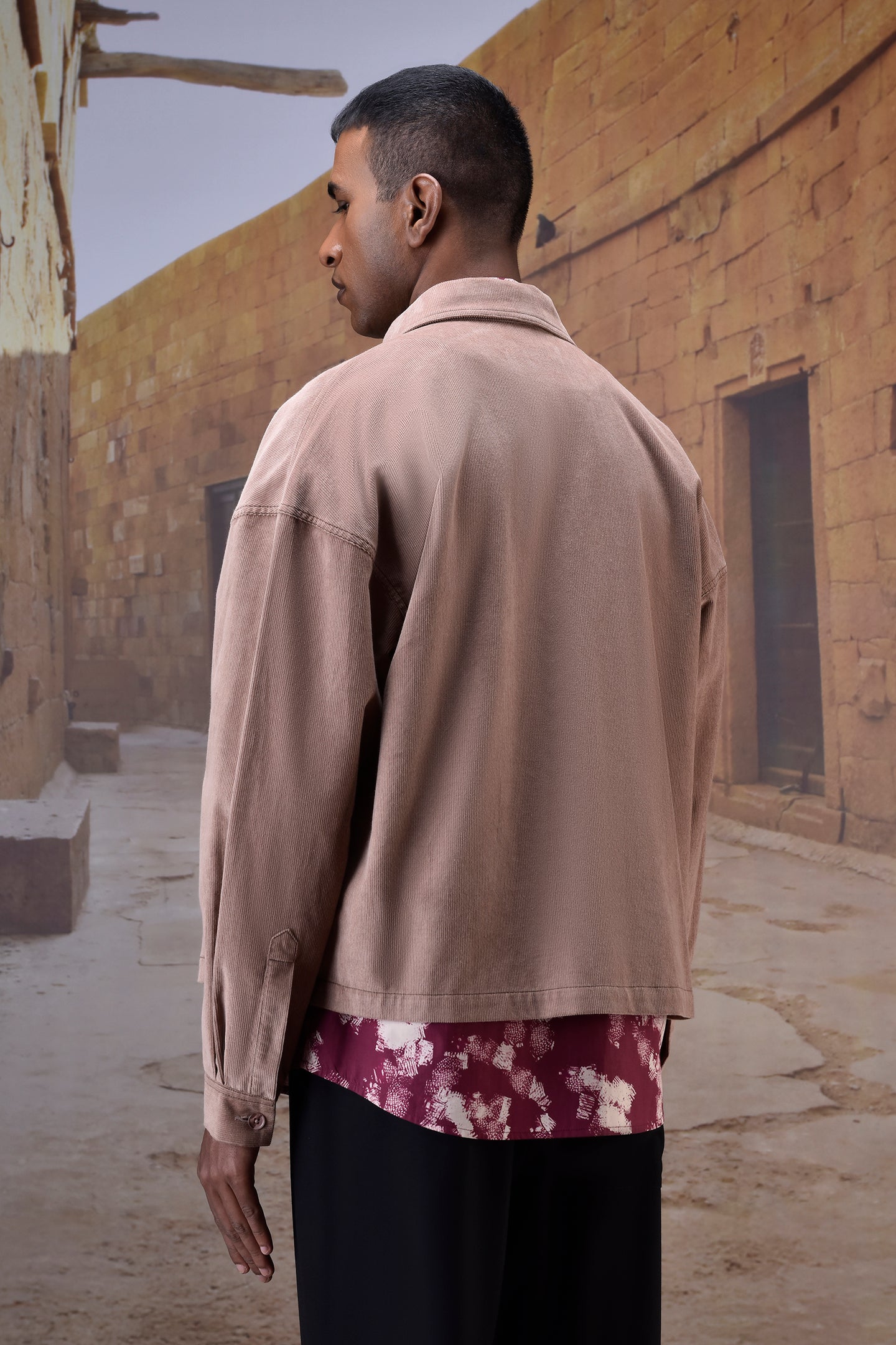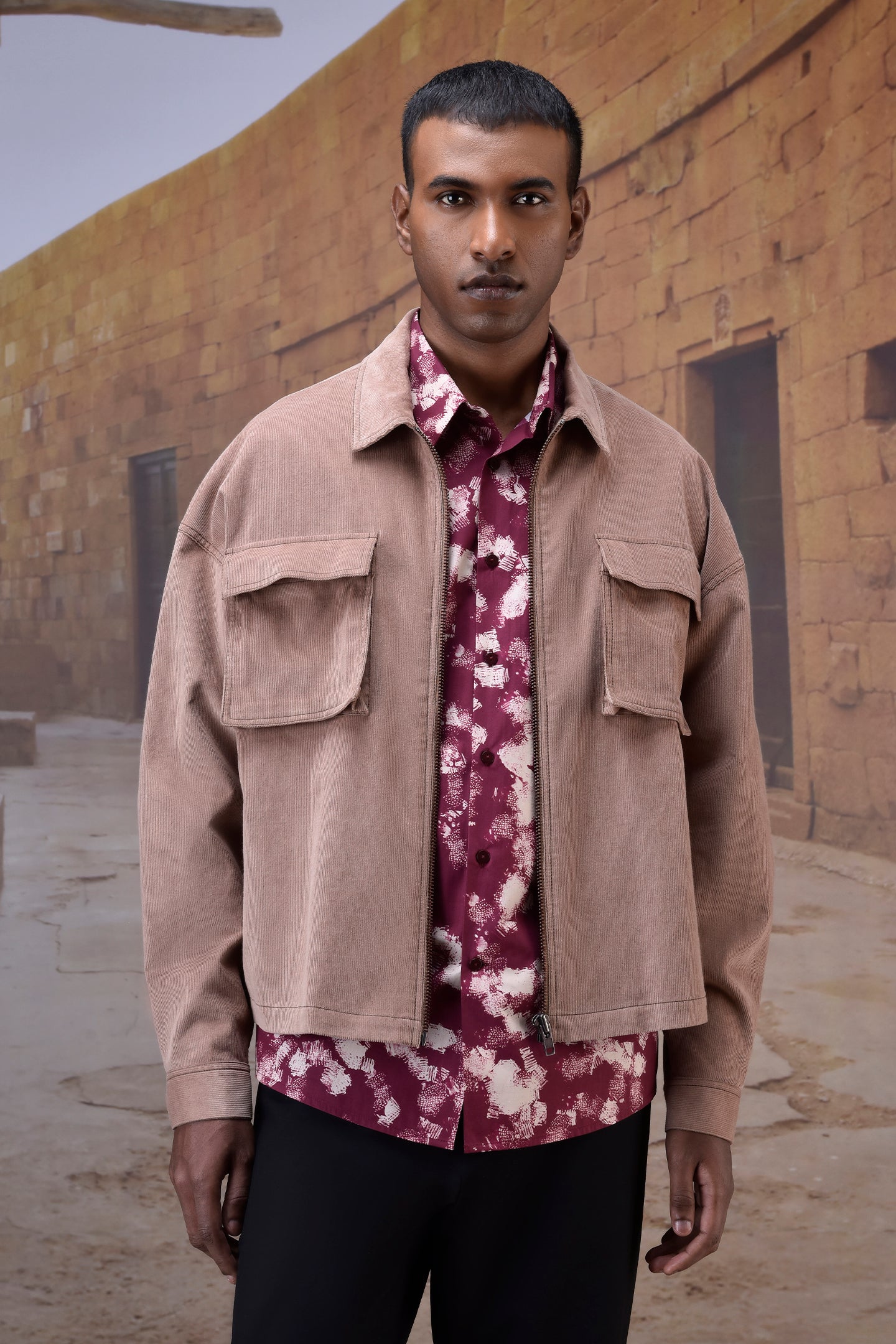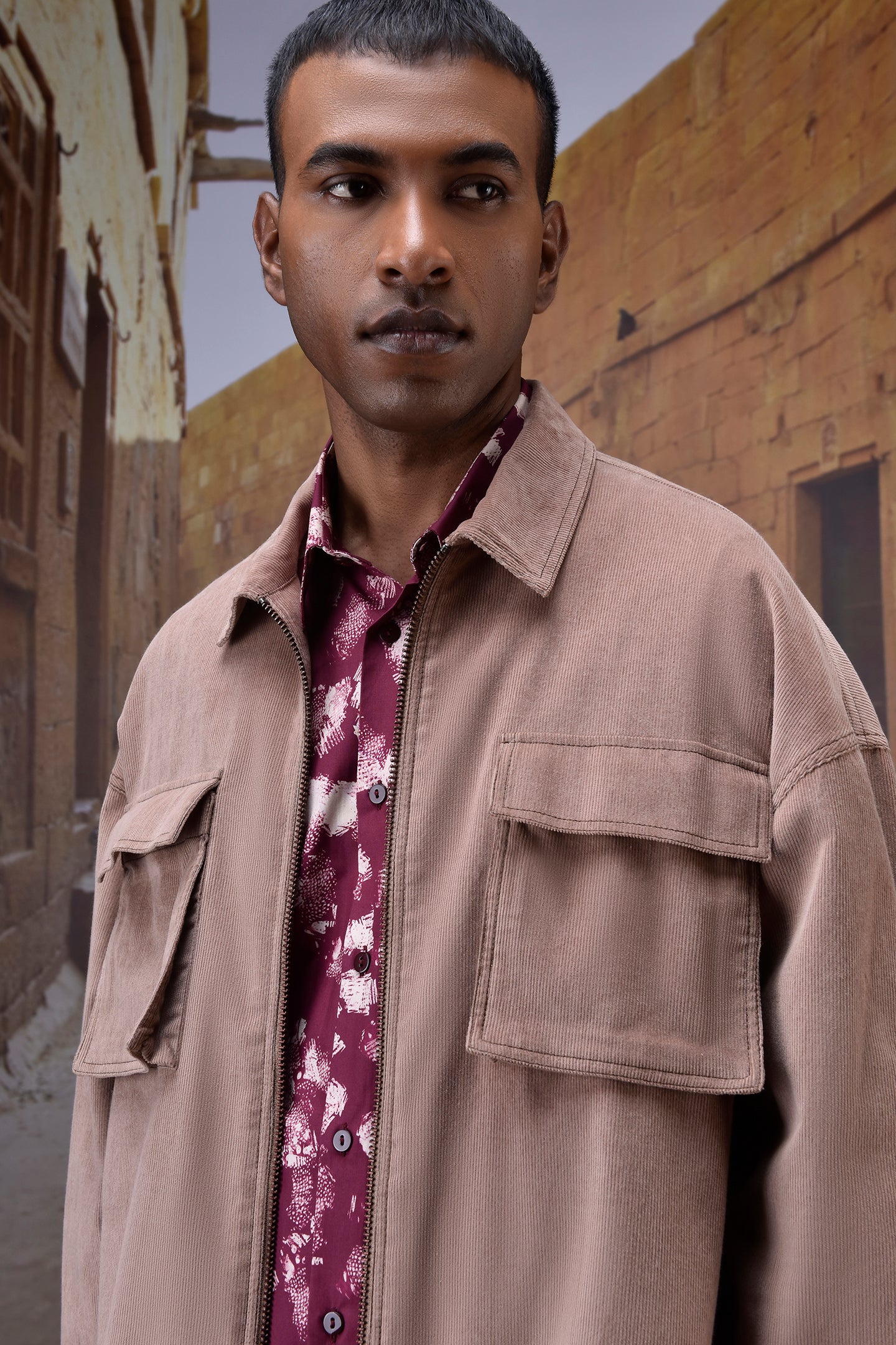 Ideal for workdays, casual weekends, or travel-ready wardrobes. Layer over printed shirts and pair with trousers or denim—the warm beige corduroy adds understated elegance, making this shirt a versatile staple for modern ensembles.