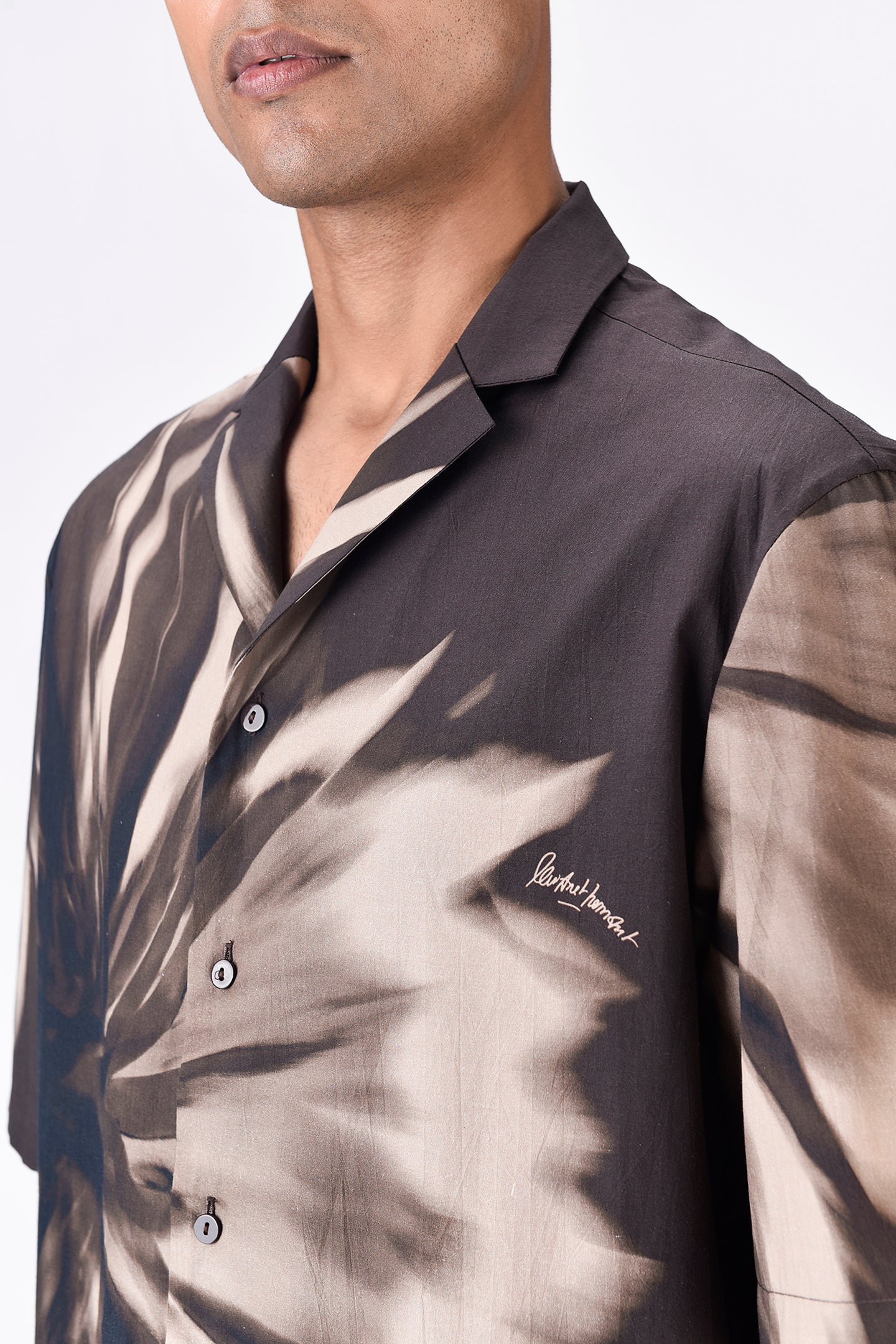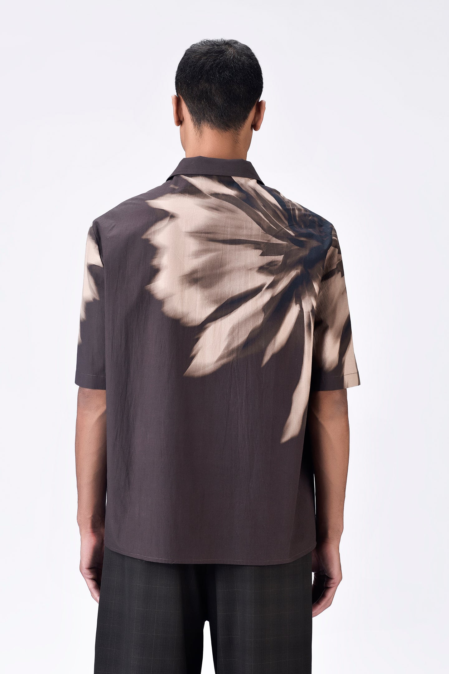 Cotton Poplin Shirt with UV Flower Print - Chocolate brown