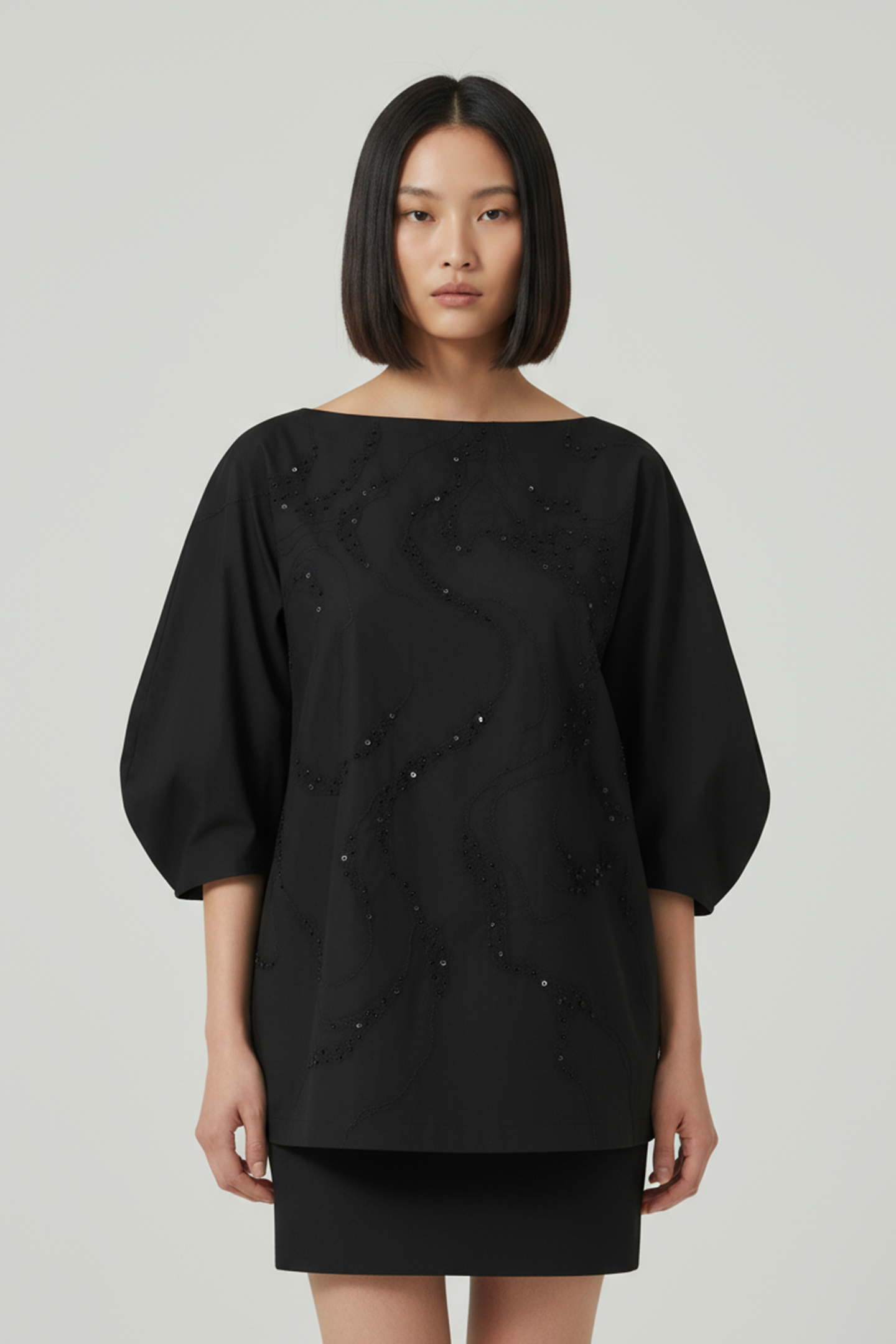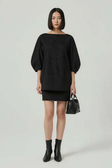 ¾ voluminous sleeves for structured balance