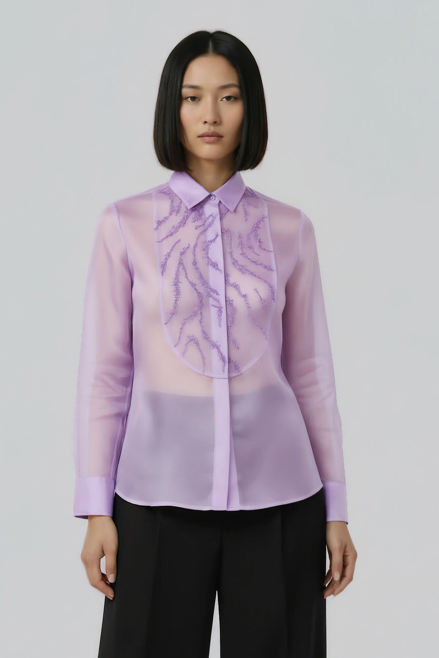 Lavender Embroidered Sheer Shirt