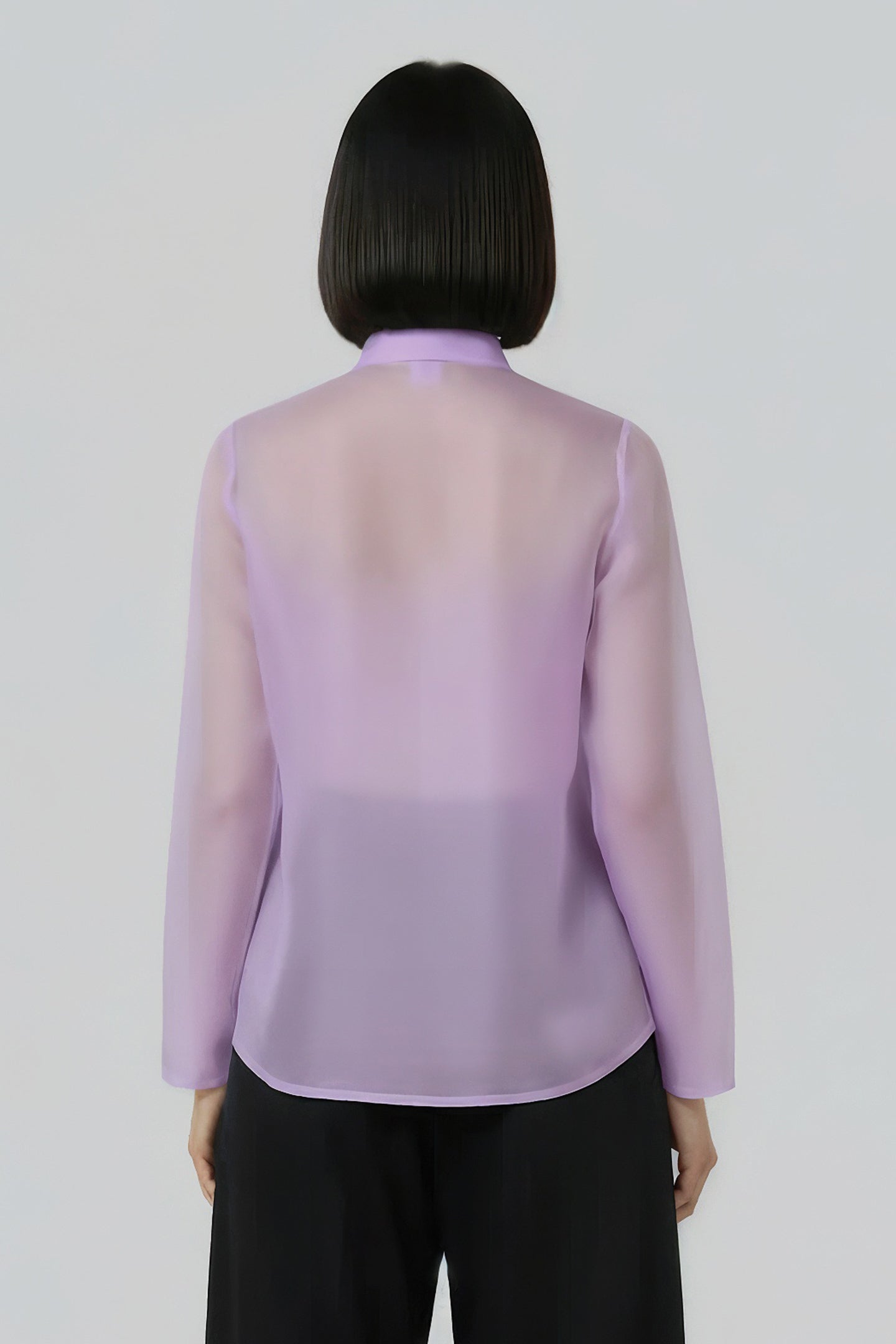 Crafted from 100% polyester organza, this shirt exudes soft femininity and refined modernity. The fabric’s translucent finish and gentle sheen create an ethereal interplay of light and colour, while precise tailoring lends structure to its fluid form.