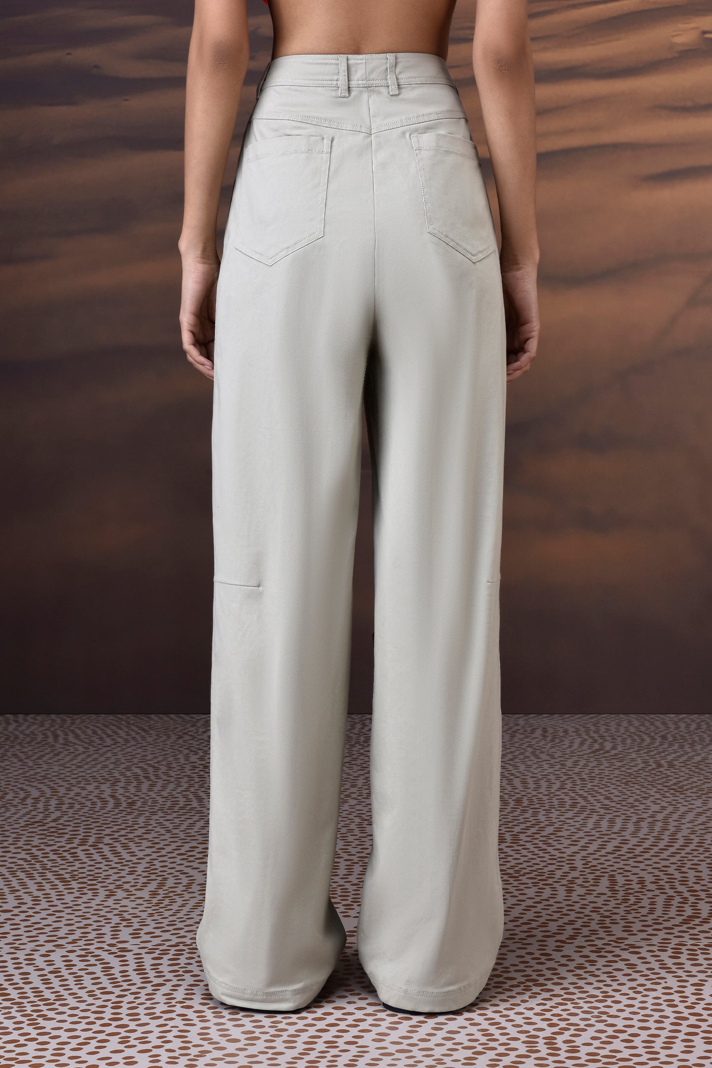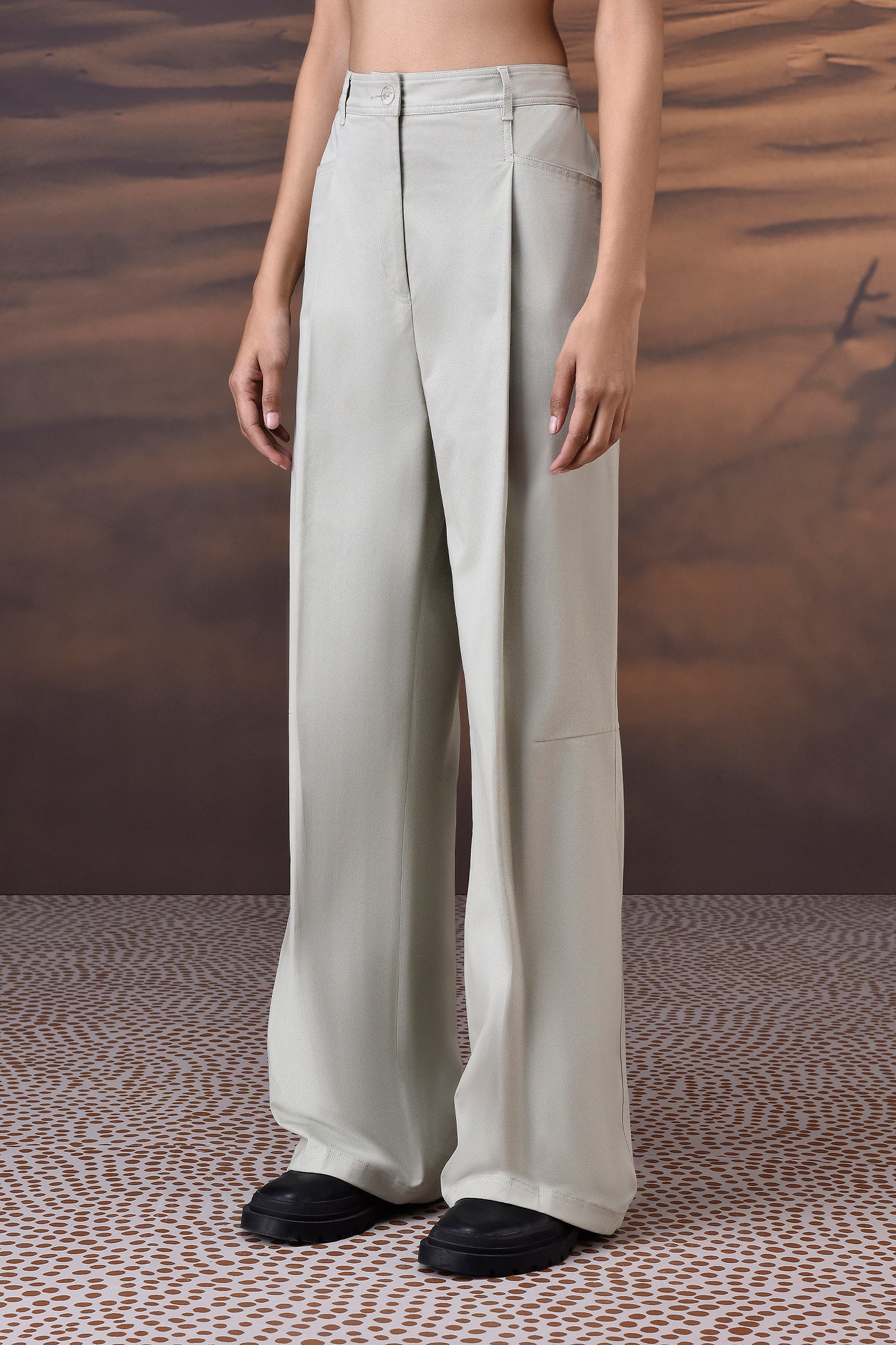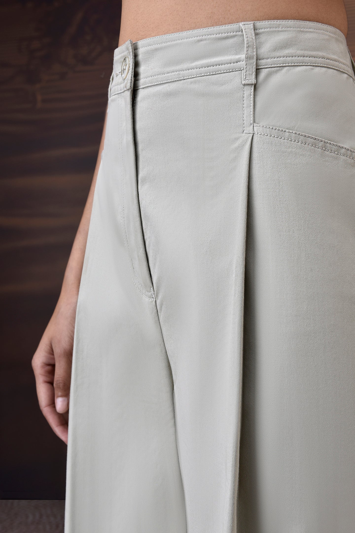 Soft Fern Green Cotton Twill Wide-Leg Trousers