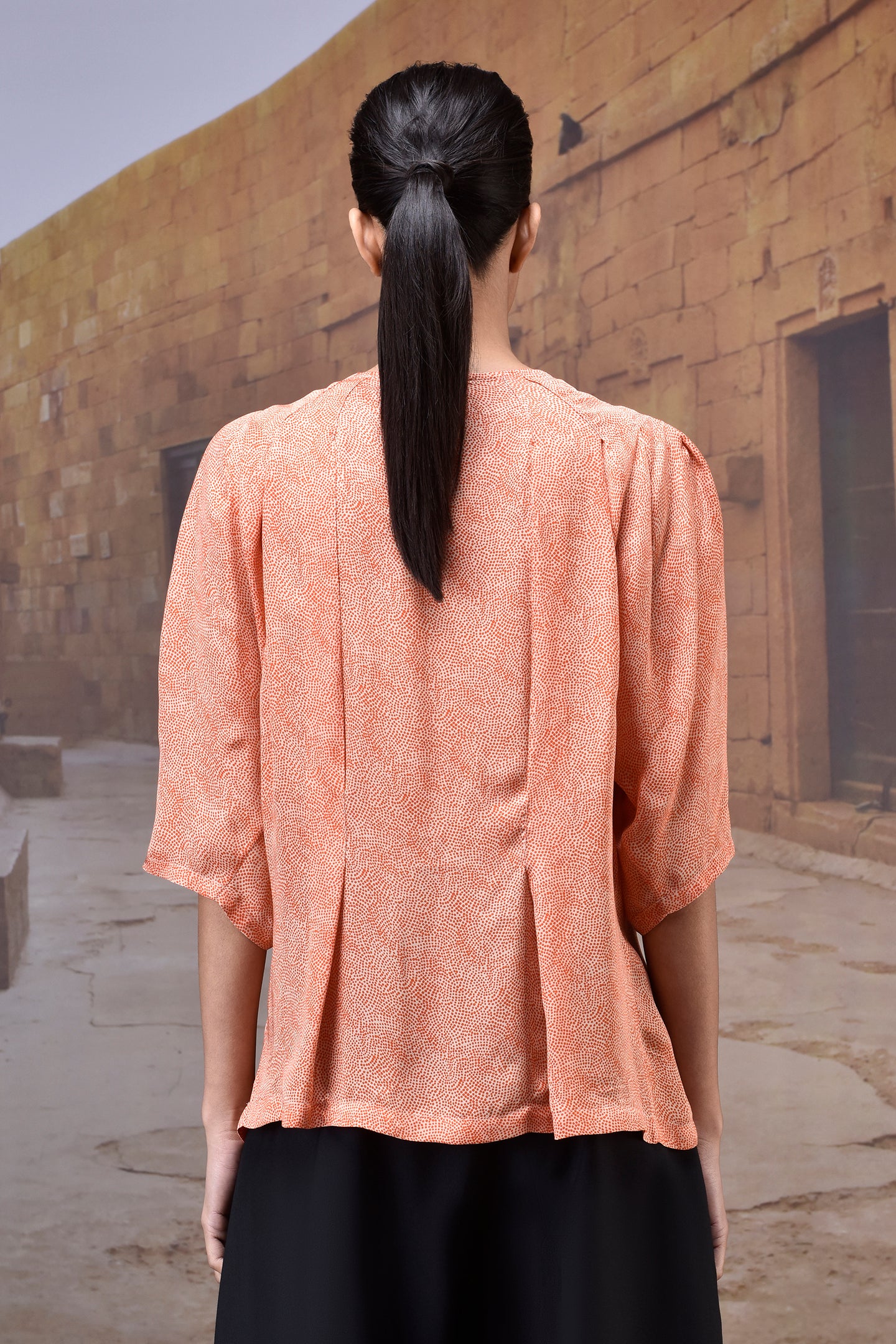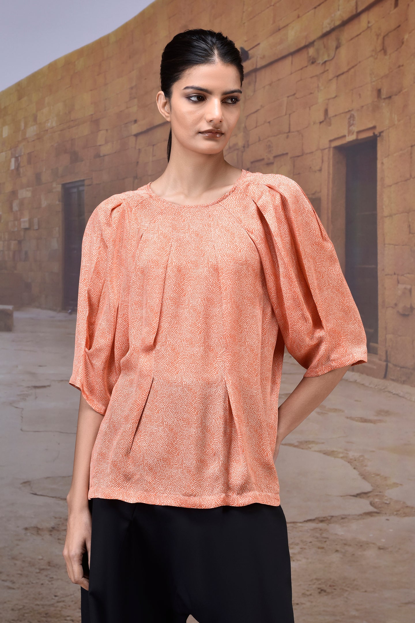 Sculpted Coquelicot Pleat Satin Top