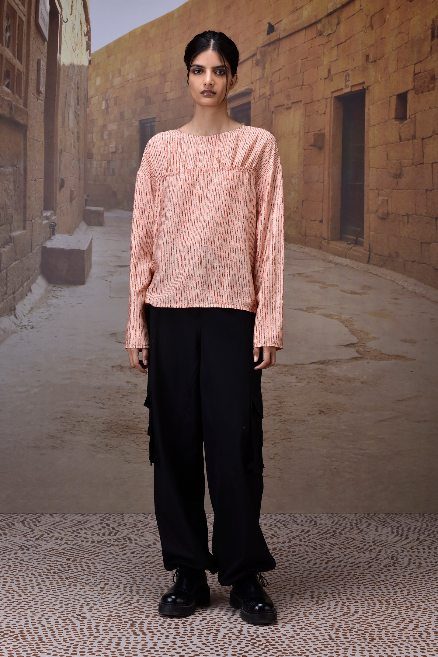 Semi-Fitted Turtle Neck Top with Cell Degrade Print