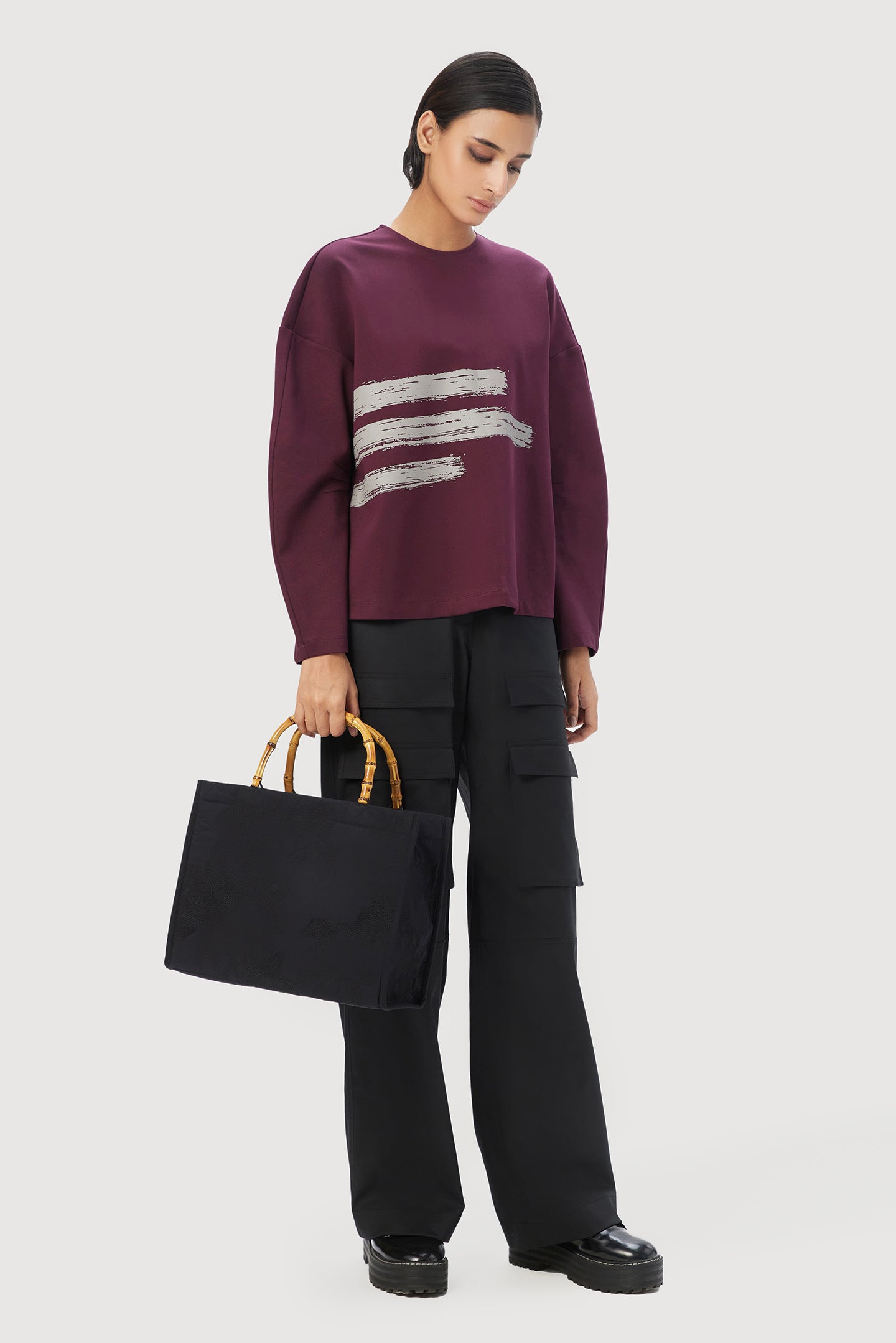 Easy Fit Round Neck Sweatshirt with Drop Shoulder - Wine