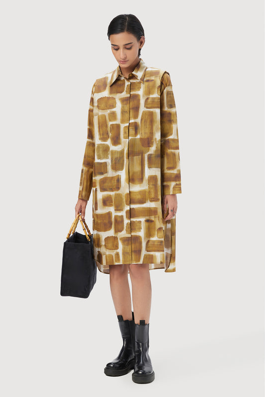 Regular Fit Button-Up Shirt with Cell Degrade Print - Clay Green