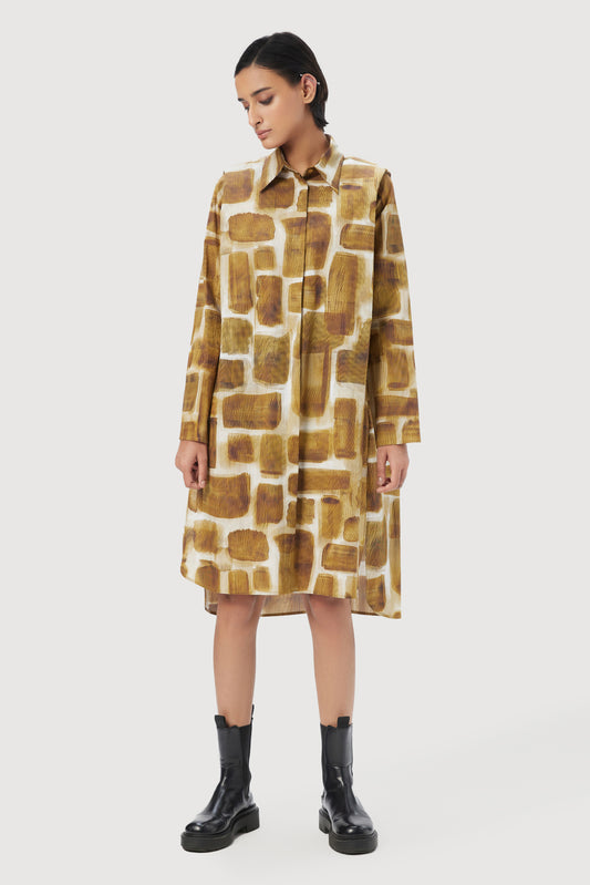 Crepe Turtle Neck Dress with Cell Degrade Print