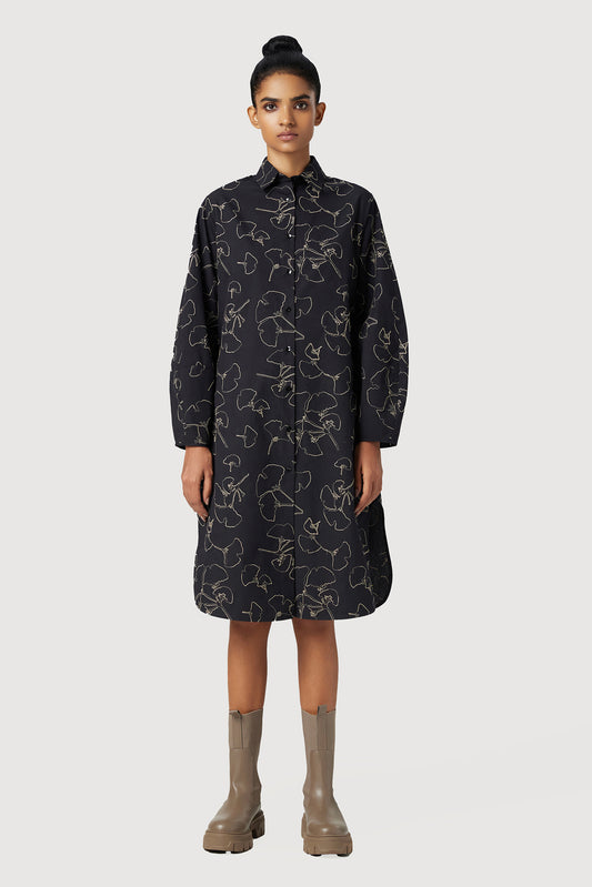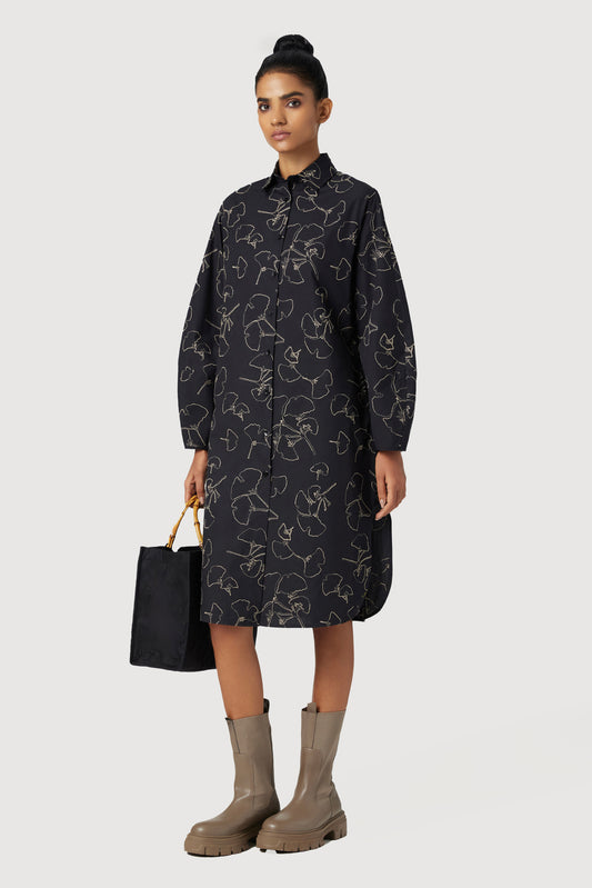 Women's Orchid Print Oversized Cotton Poplin Shirt