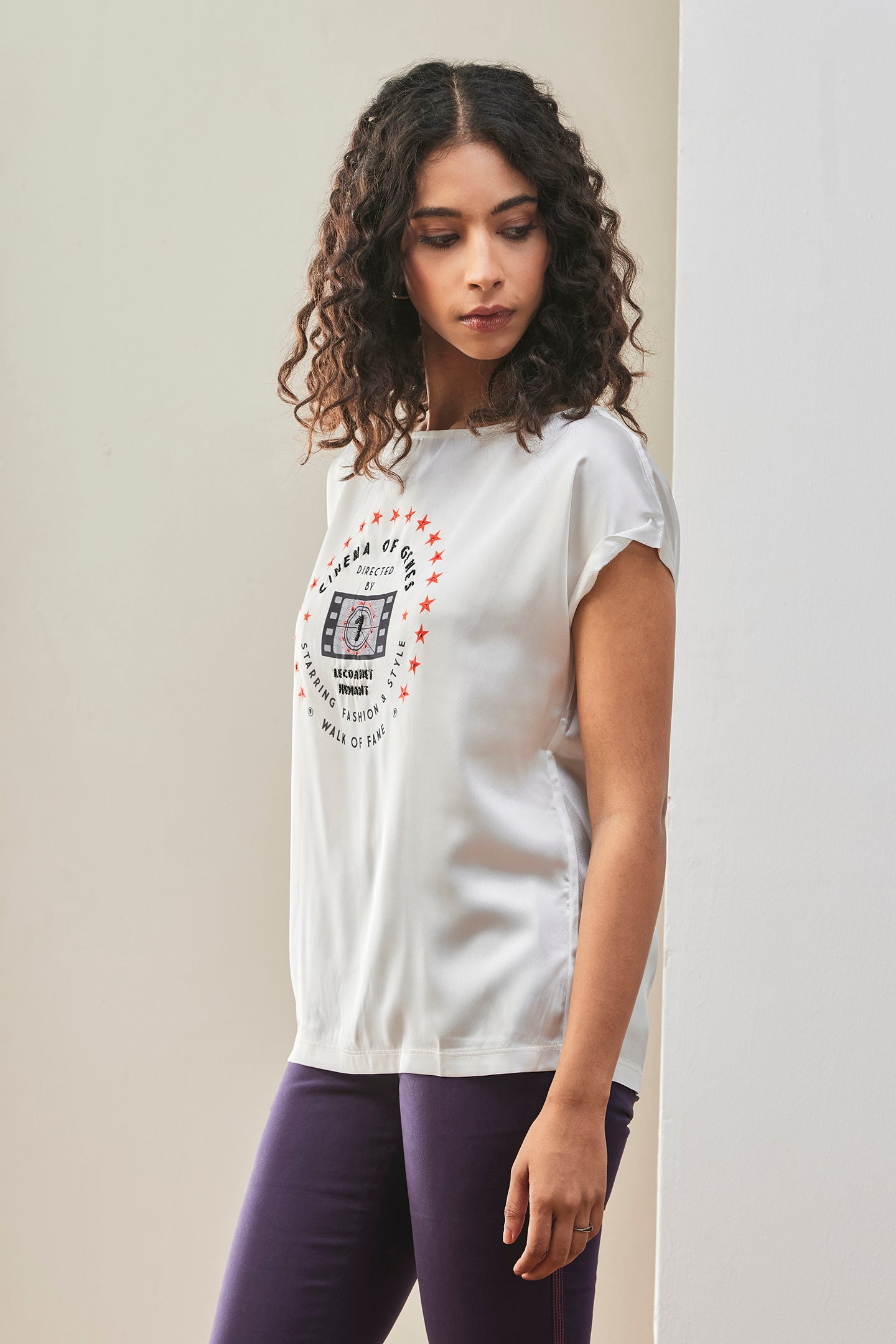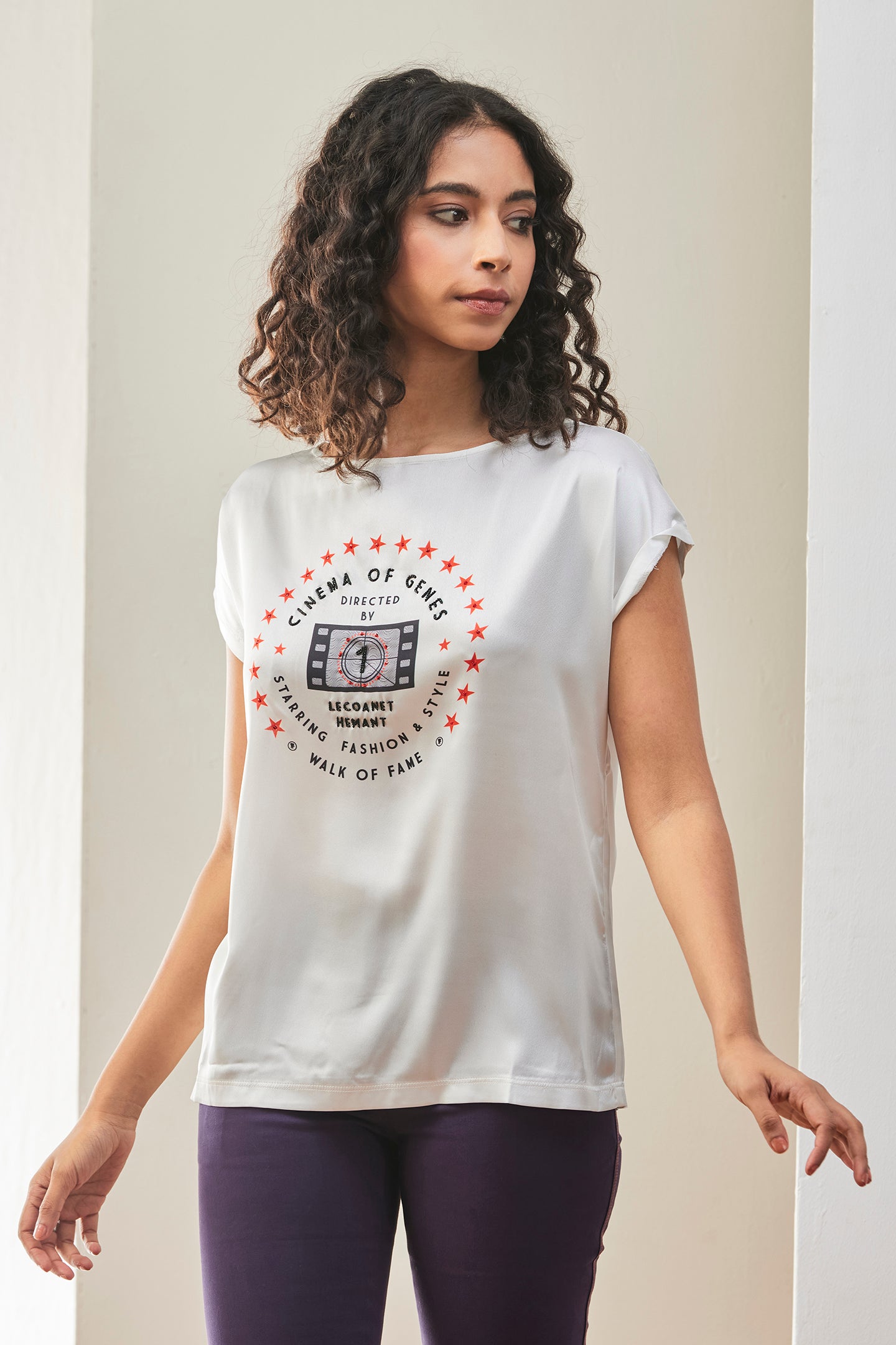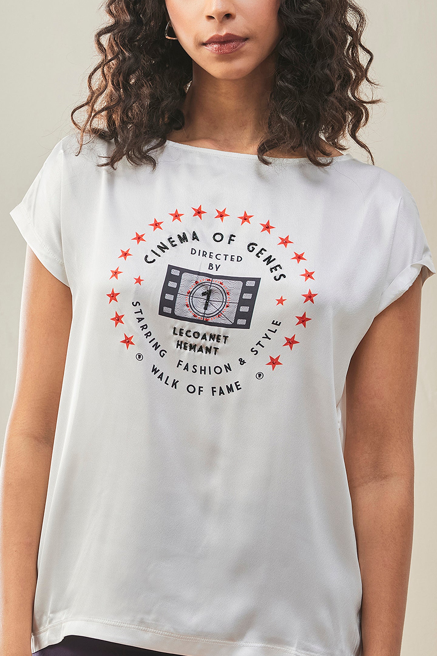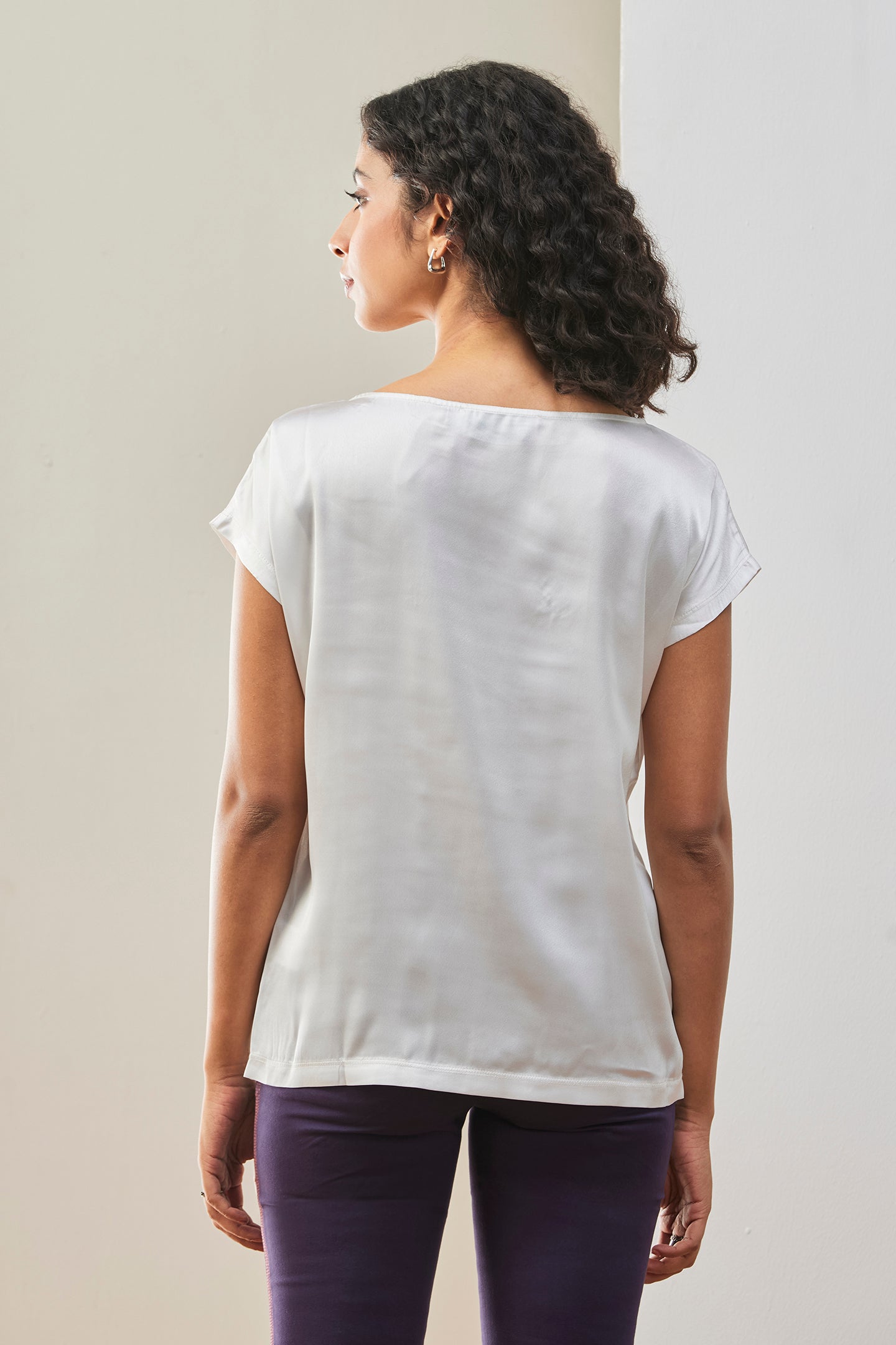 This cotton satin t-shirt offers a sleek and polished look, perfect for a refined casual style.
