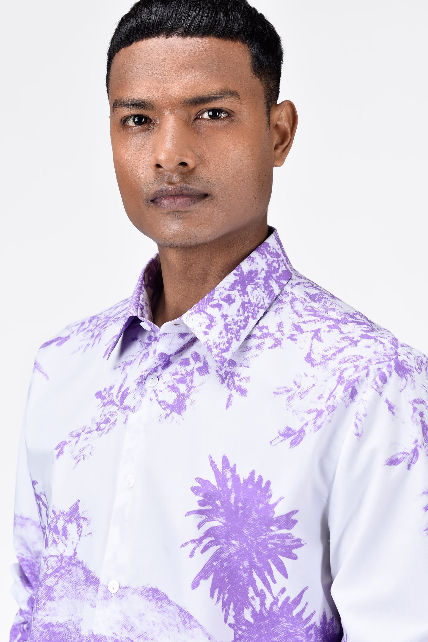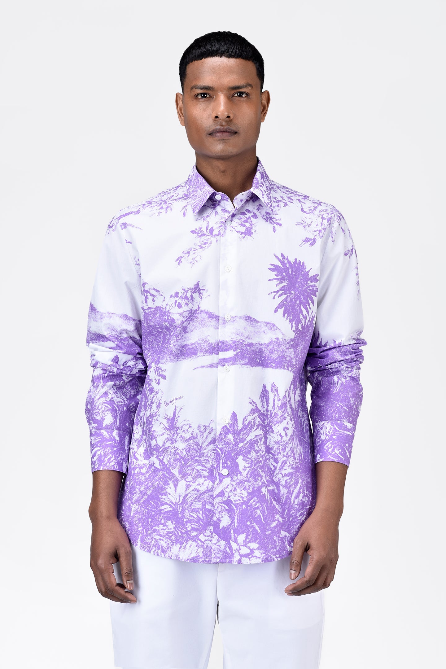 Landscape Print Regular Fit Men's Button-Up Shirt-Amethyst