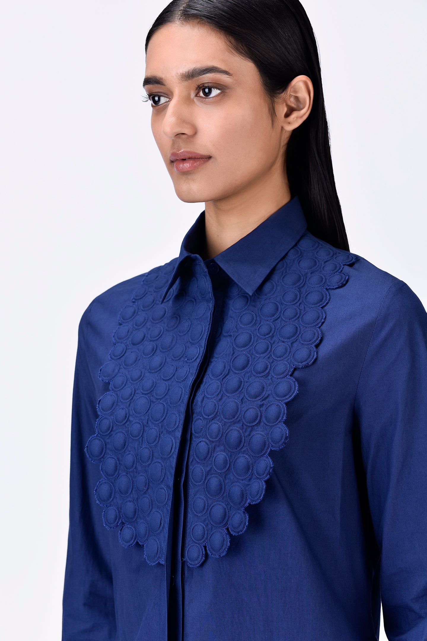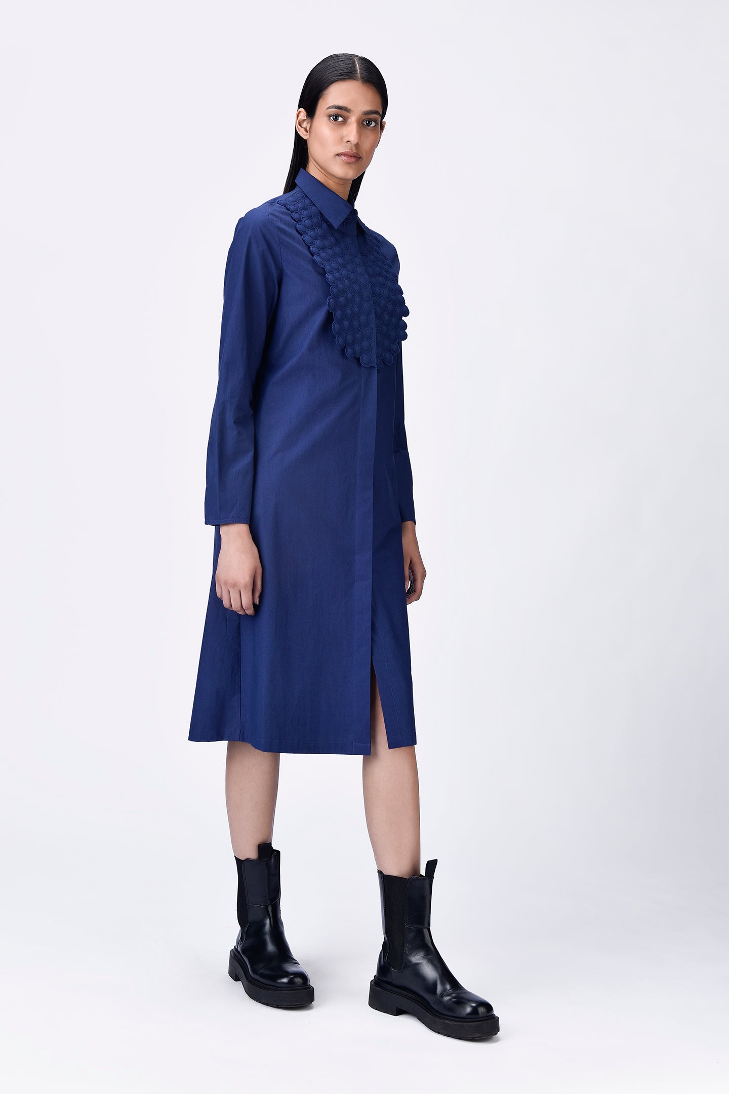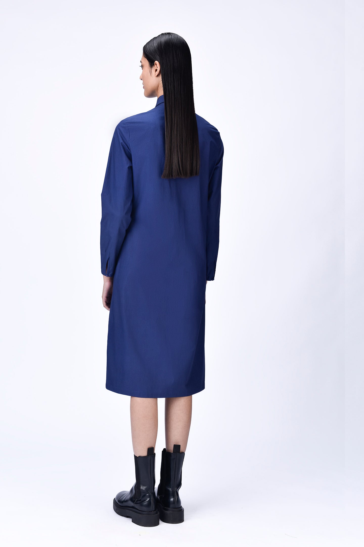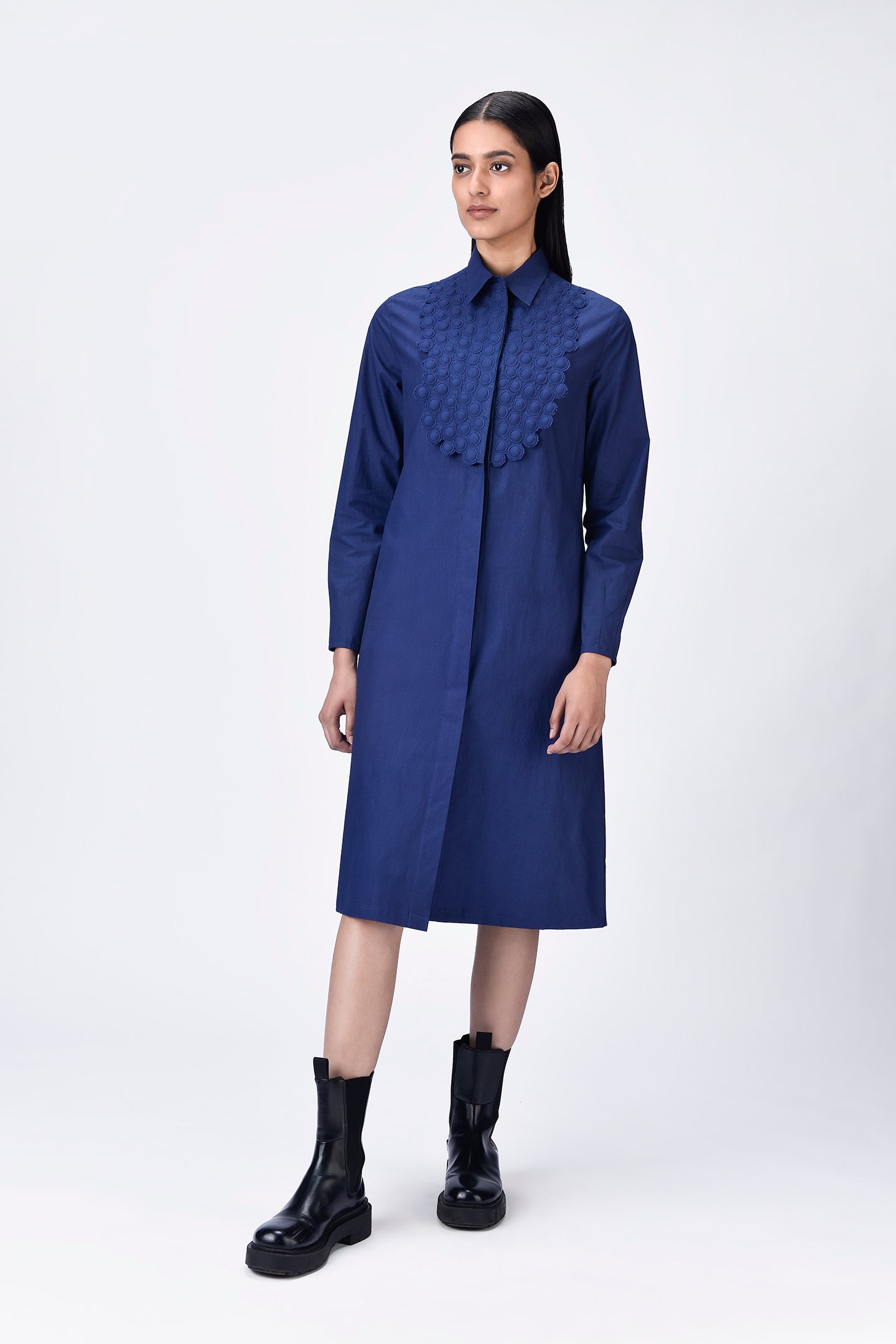 Straight Fit Shirt Dress with Heritage Embroidery - Navy Blue