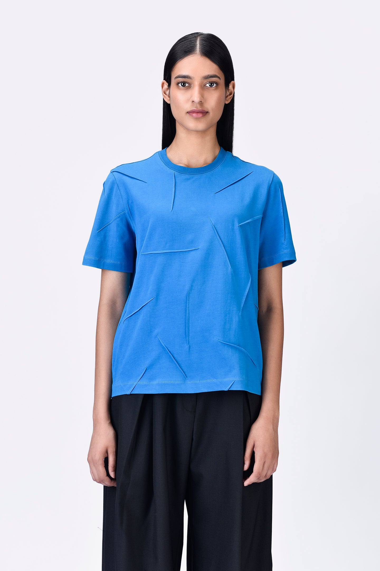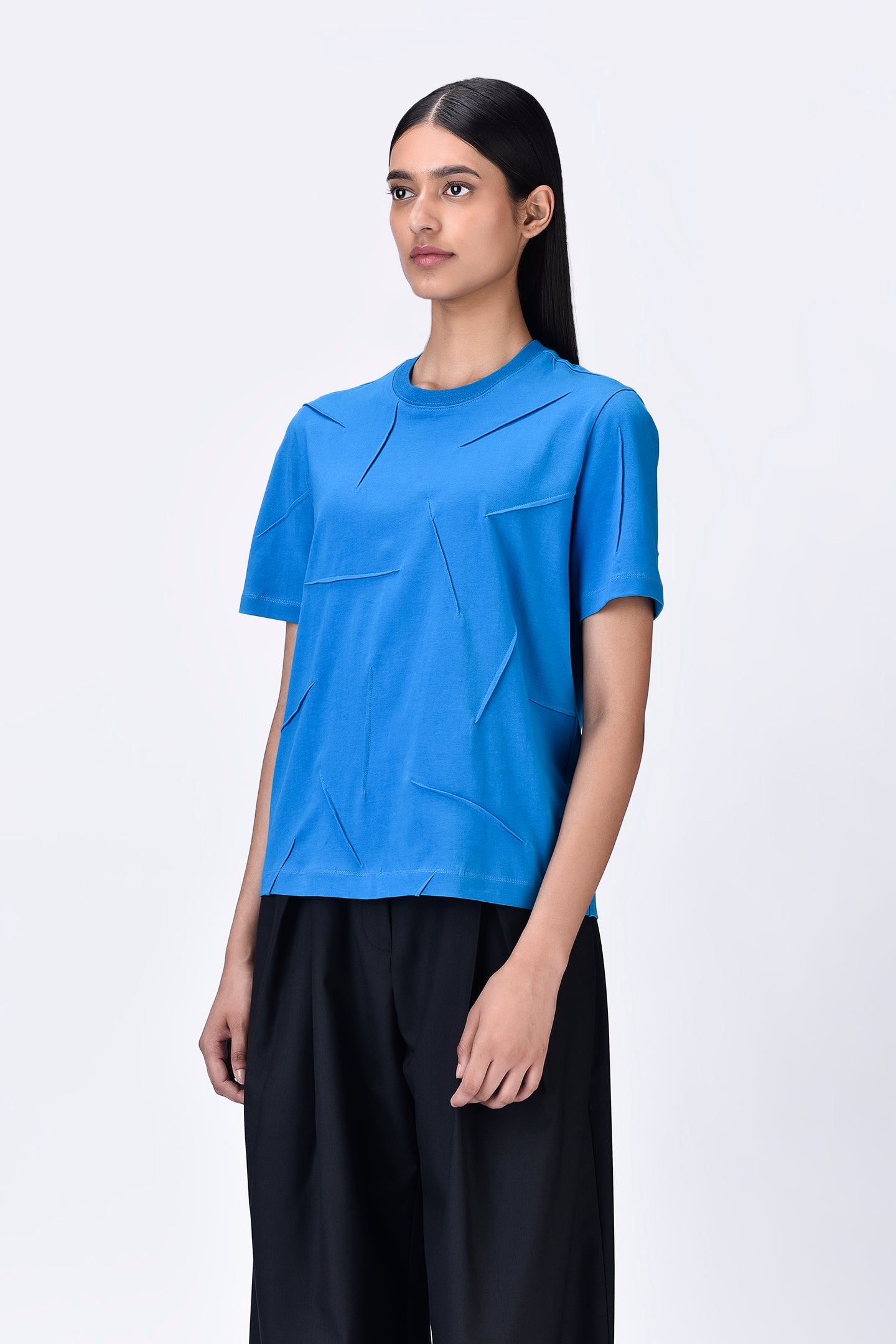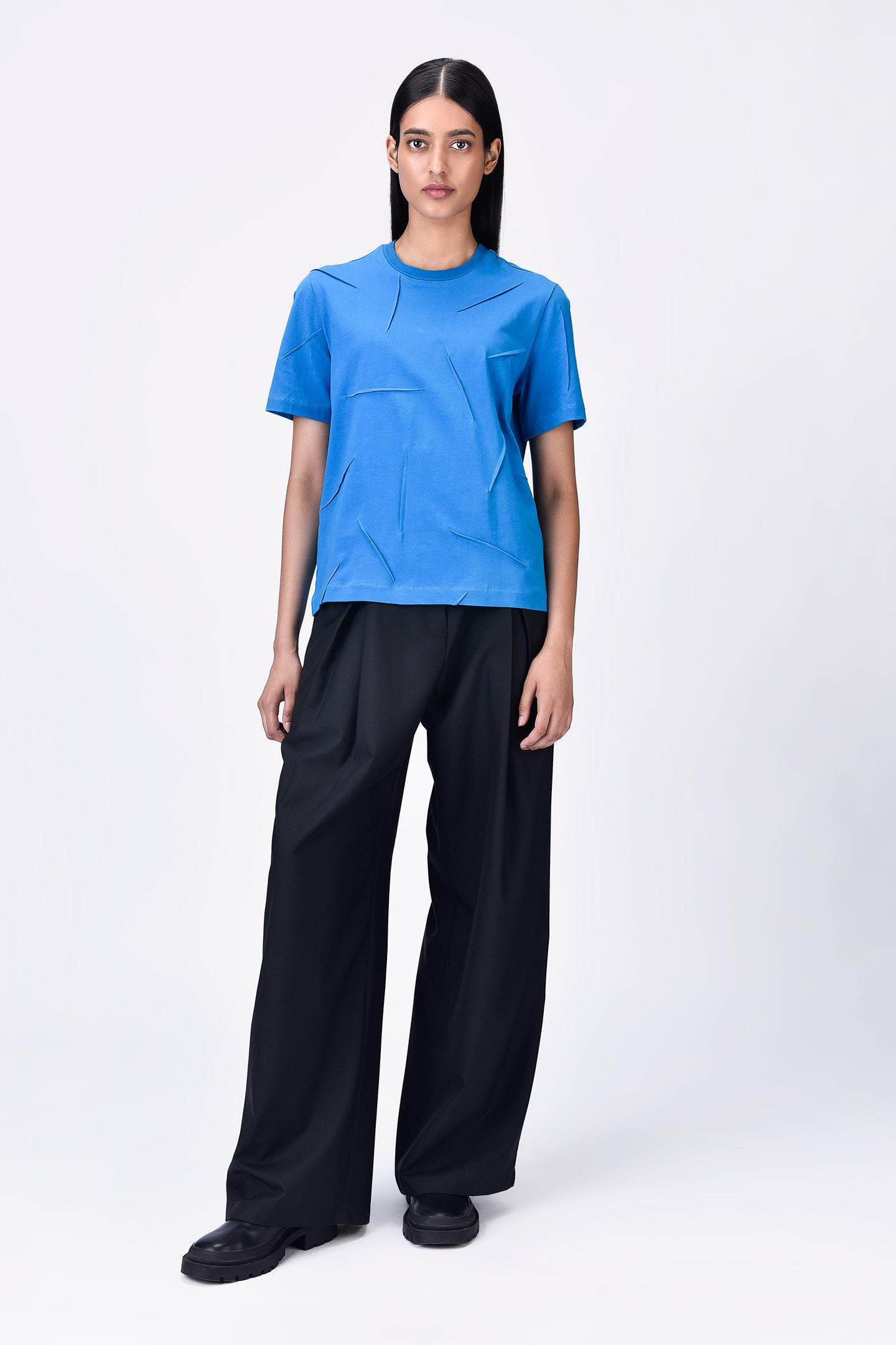 Cotton Single Jersey Regular Fit T-Shirt with Beads Embroidery - Azure Blue