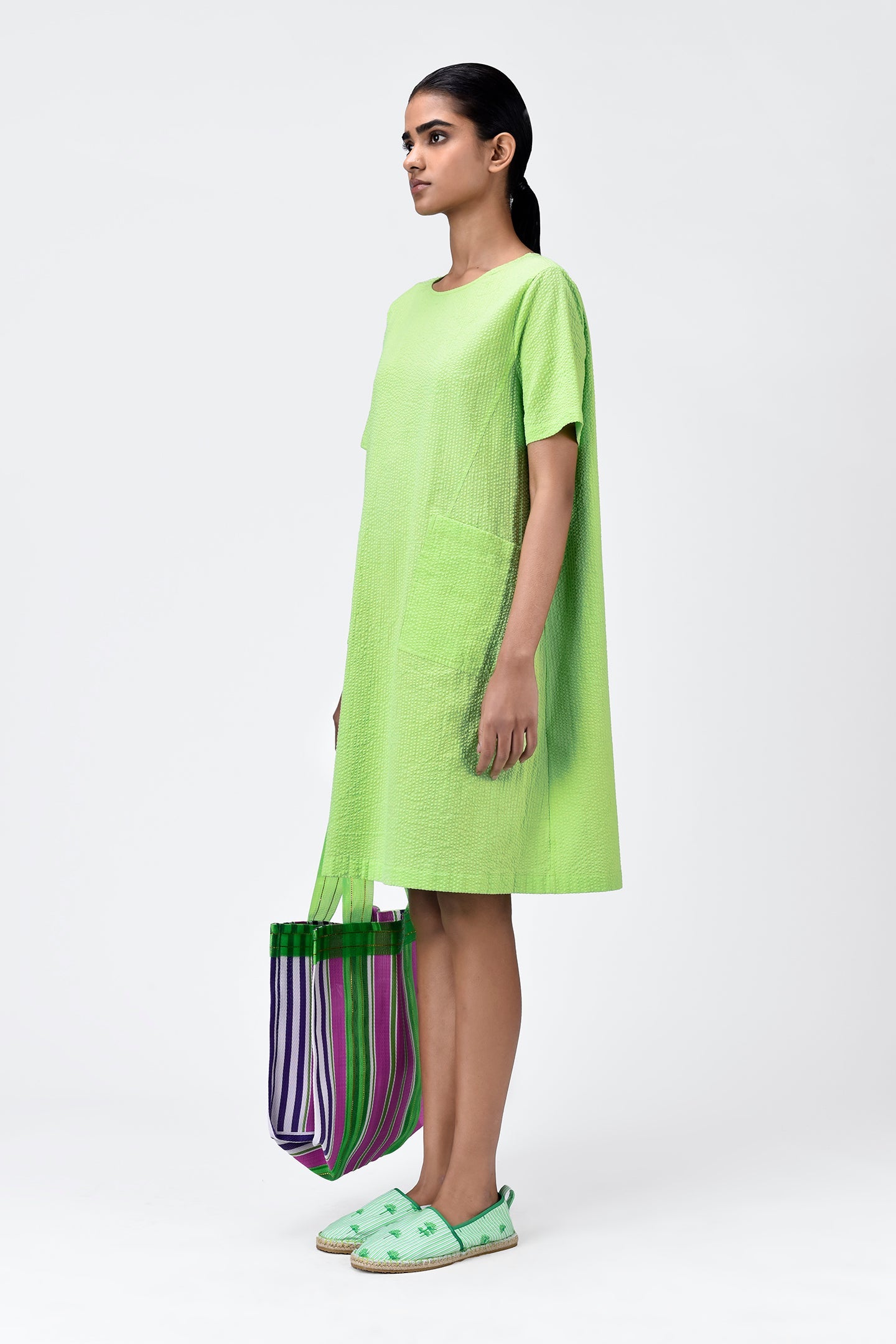 Easy-Fit Solid Dress with Patch Pockets-Mint Green