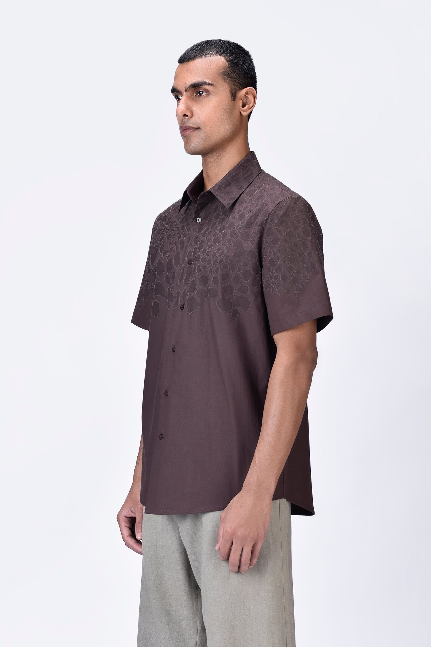 Giza Cotton Poplin Half Sleeve Shirt - Brown