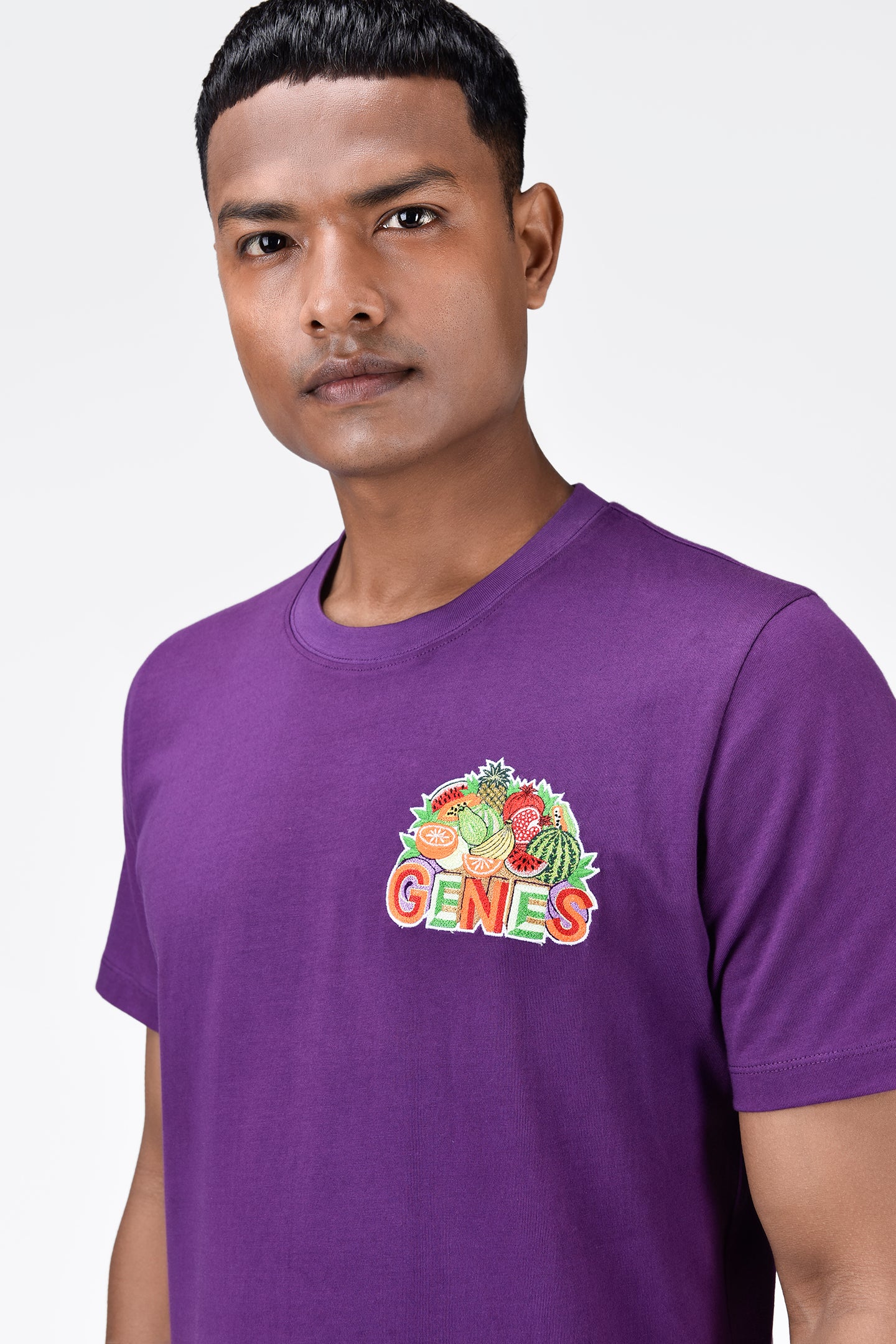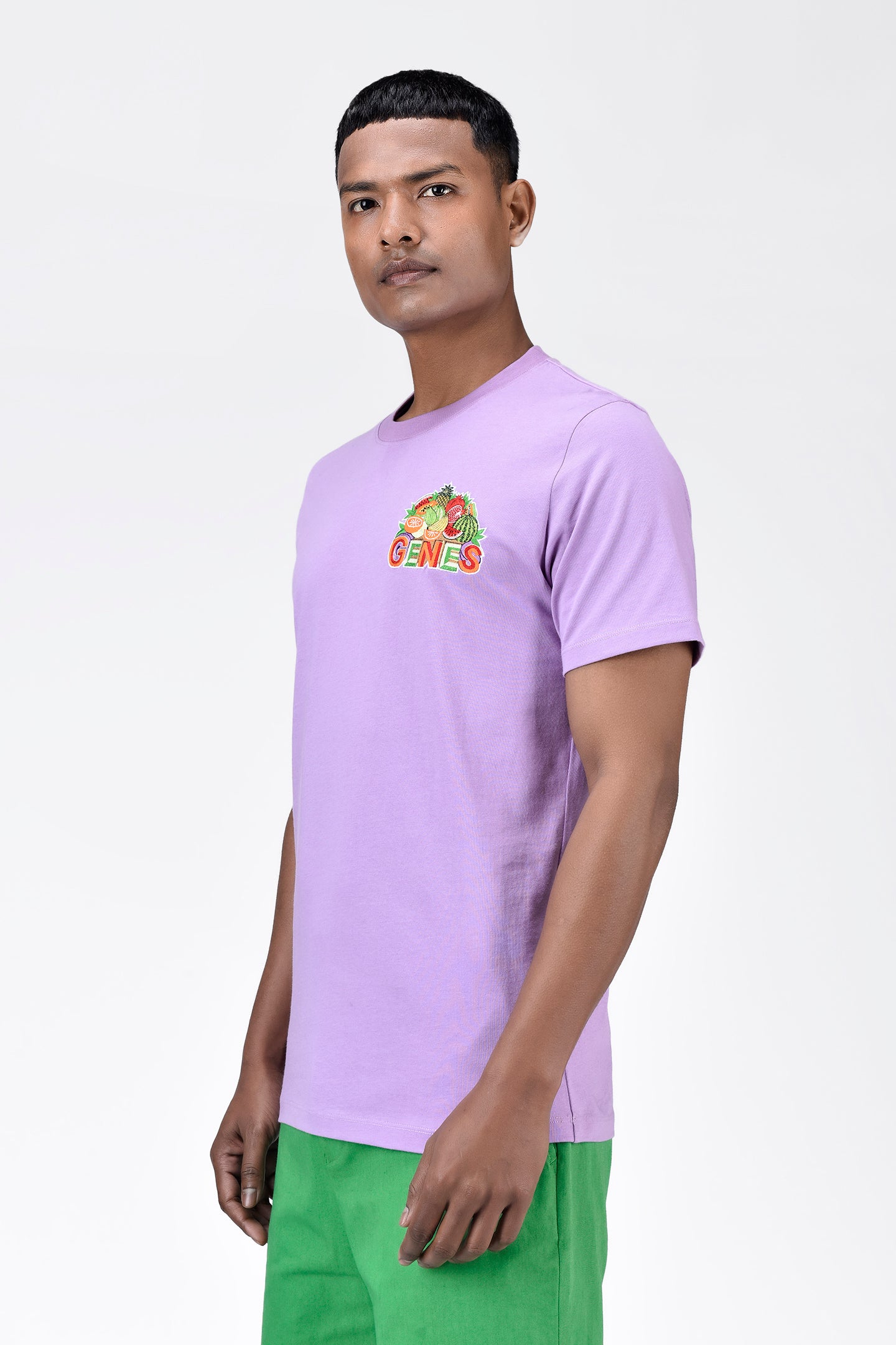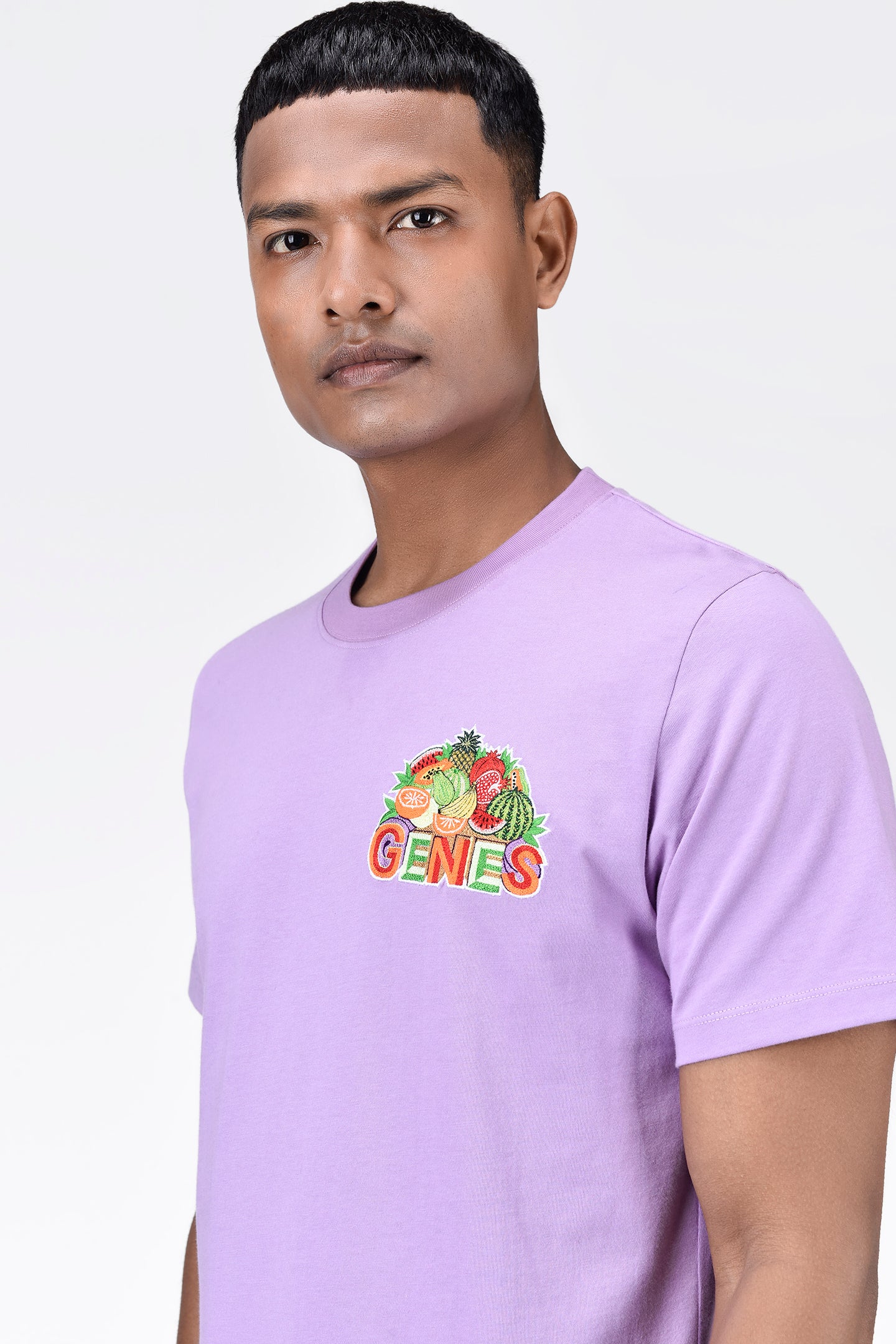 Elevate your casual wear with our Regular Fit Crew Neck T-Shirt, featuring an exquisite Genes fruit basket embroidery placement. Crafted in soft lavender cotton single jersey, this T-shirt combines comfort with playful sophistication, making it a standout addition to your wardrobe.