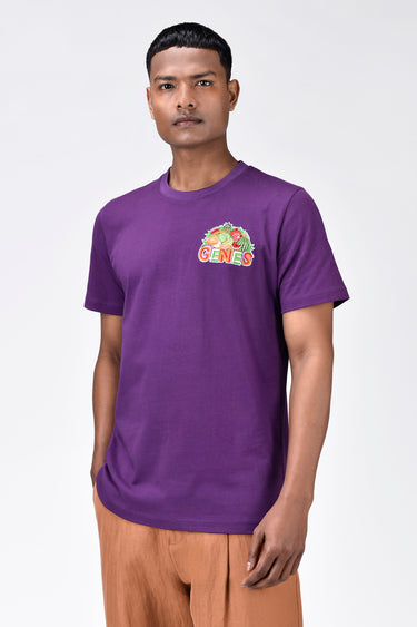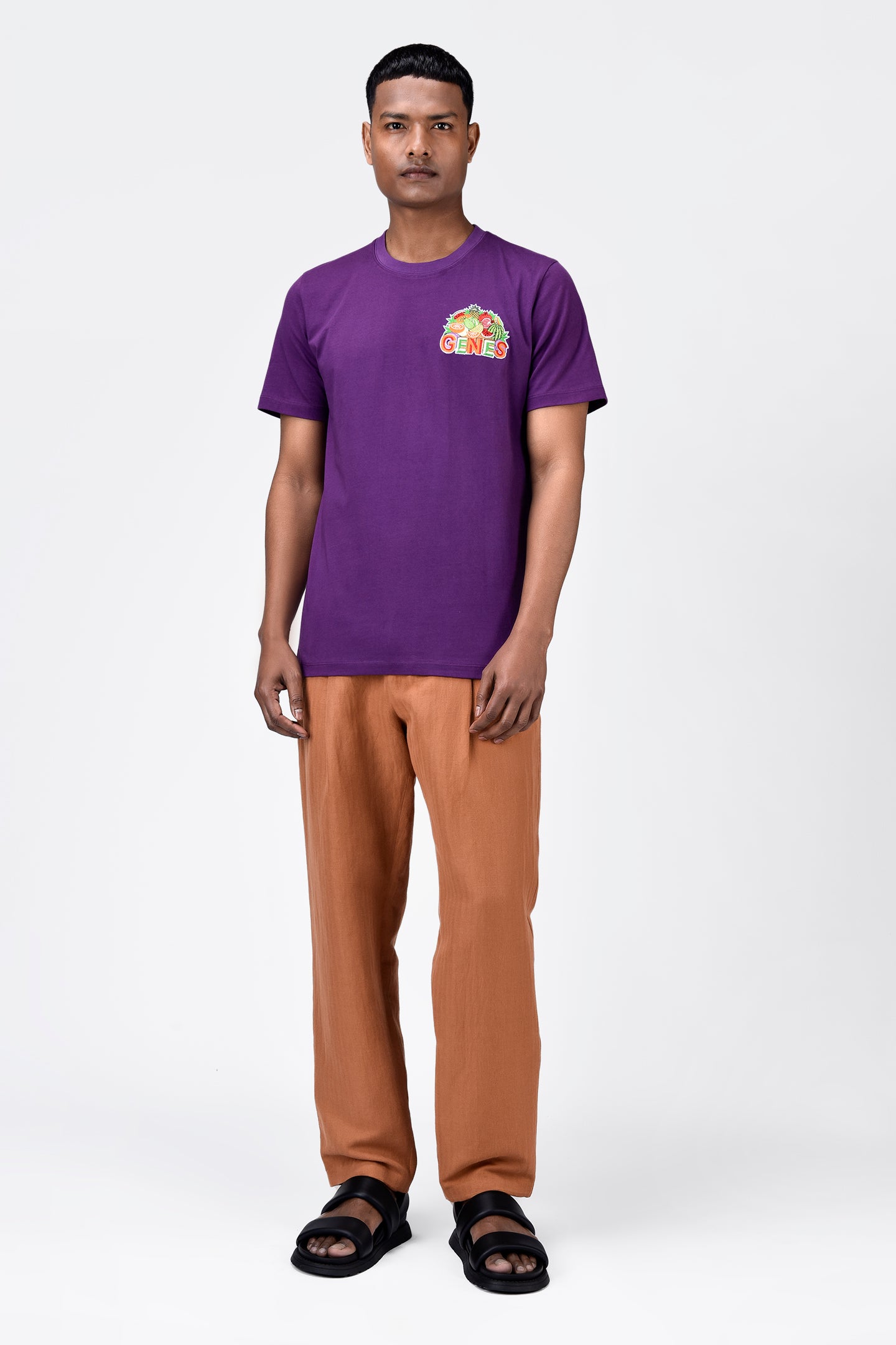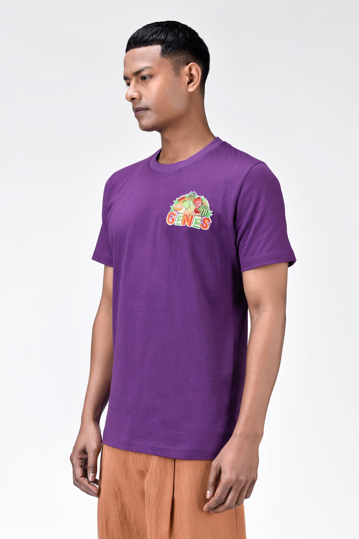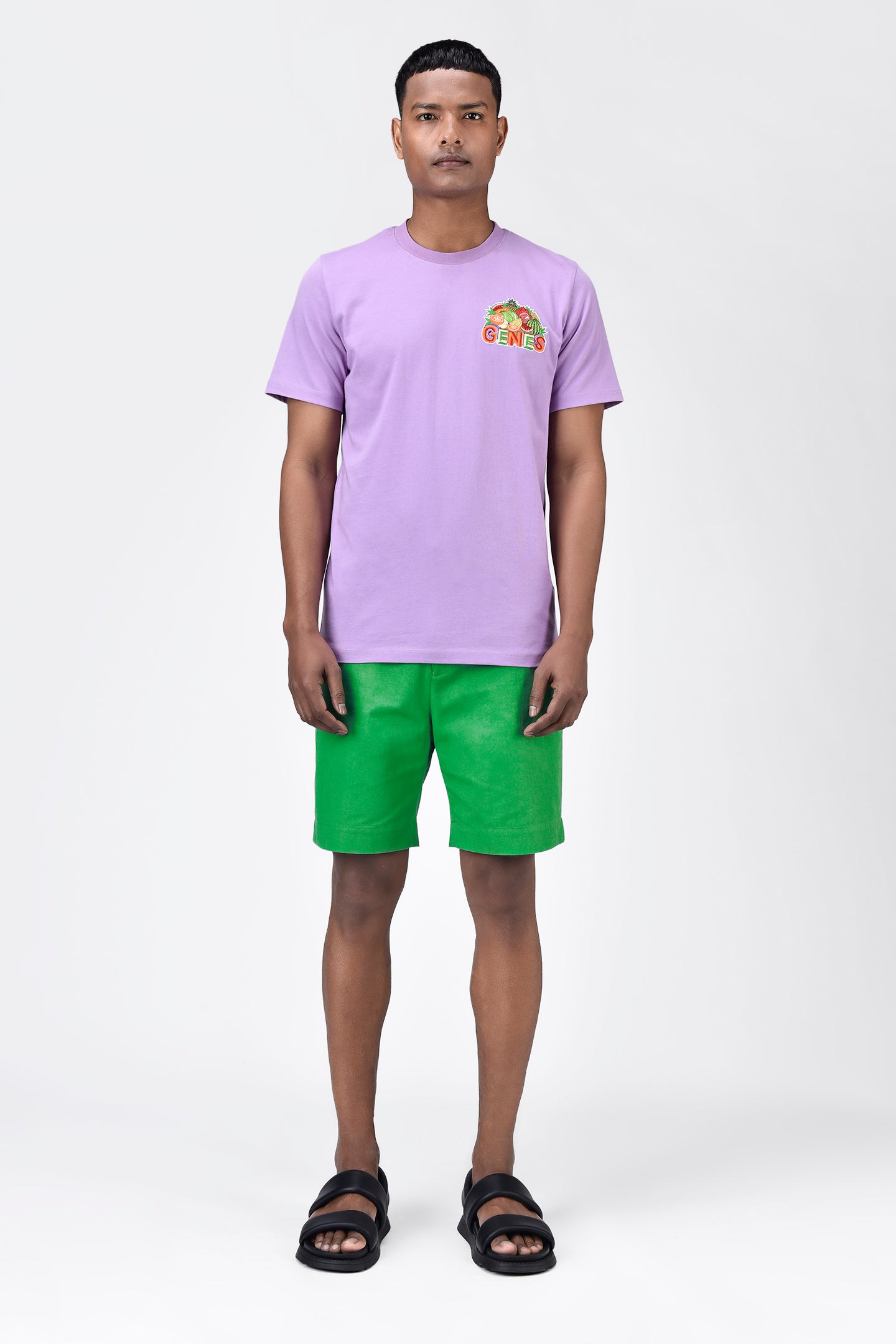 Elevate your casual wear with our Regular Fit Crew Neck T-Shirt, featuring an exquisite Genes fruit basket embroidery placement. Crafted in soft lavender cotton single jersey, this T-shirt combines comfort with playful sophistication, making it a standout addition to your wardrobe.