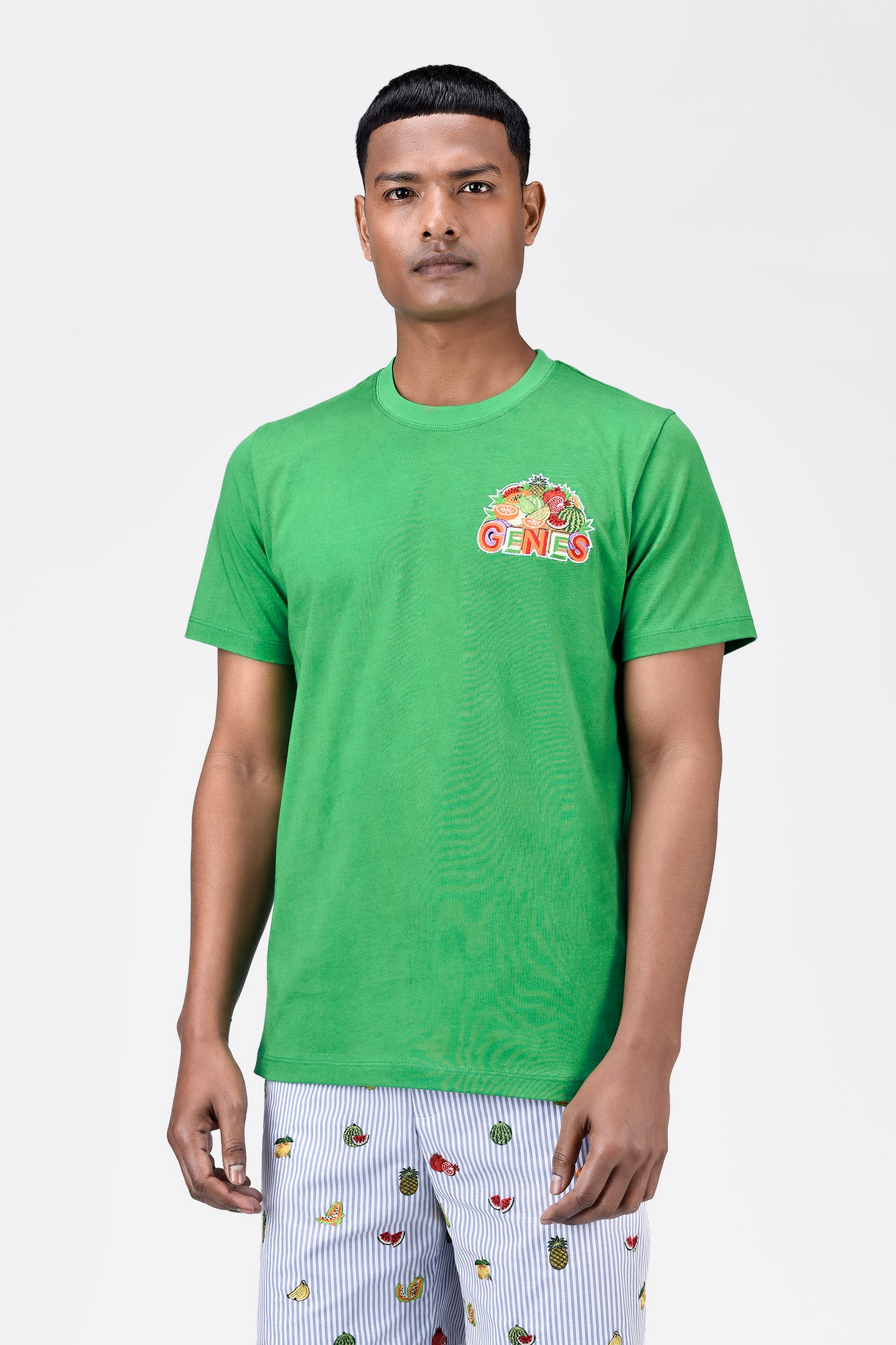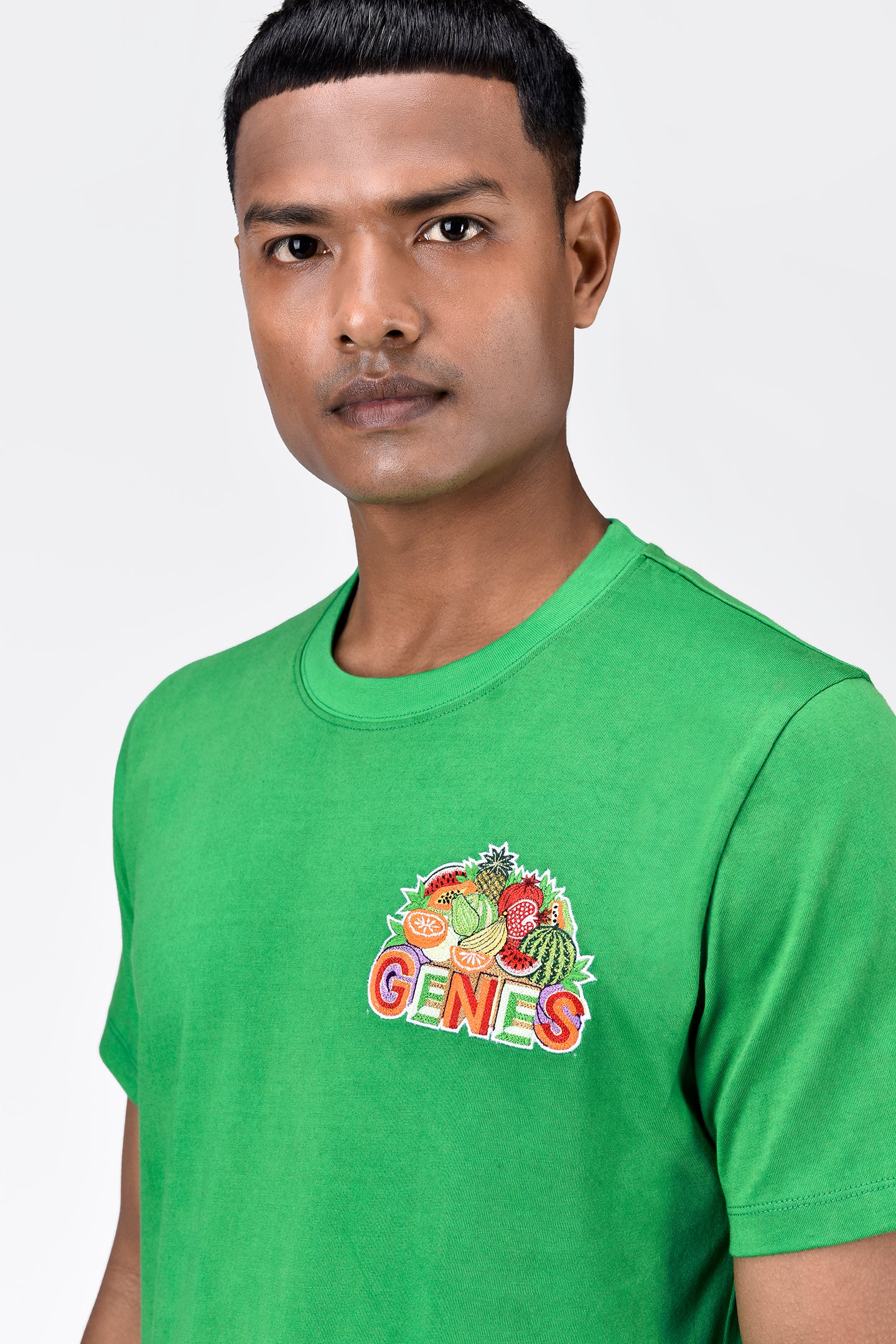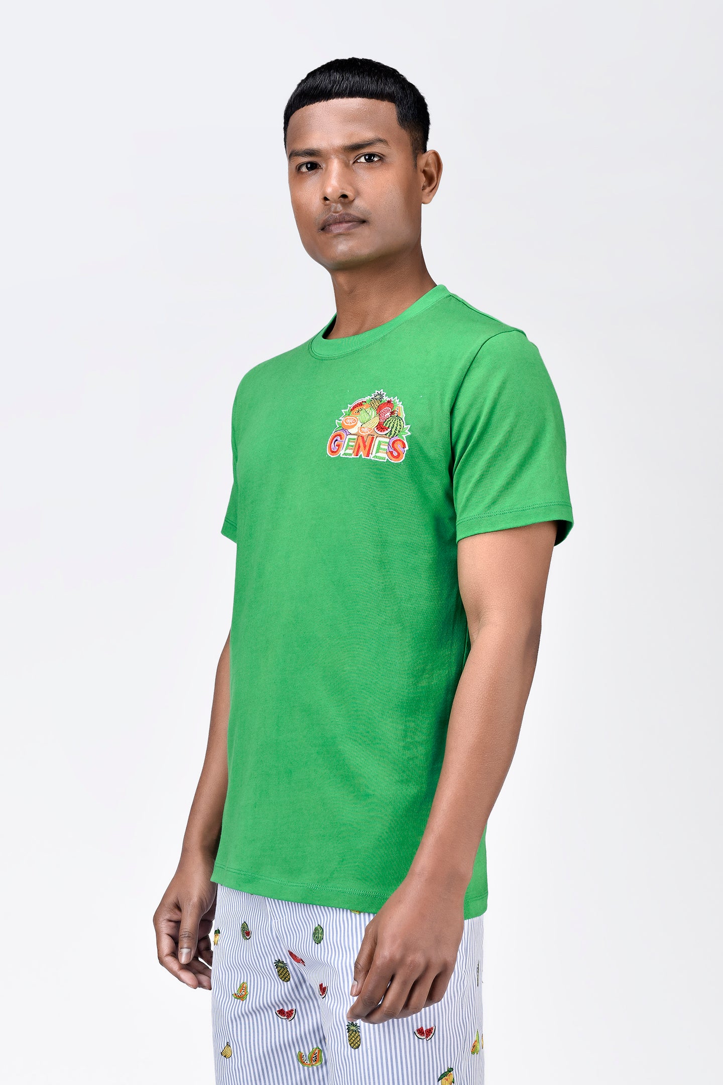 Regular Fit Men's T-Shirt With Genes Fruit Basket Embroidery