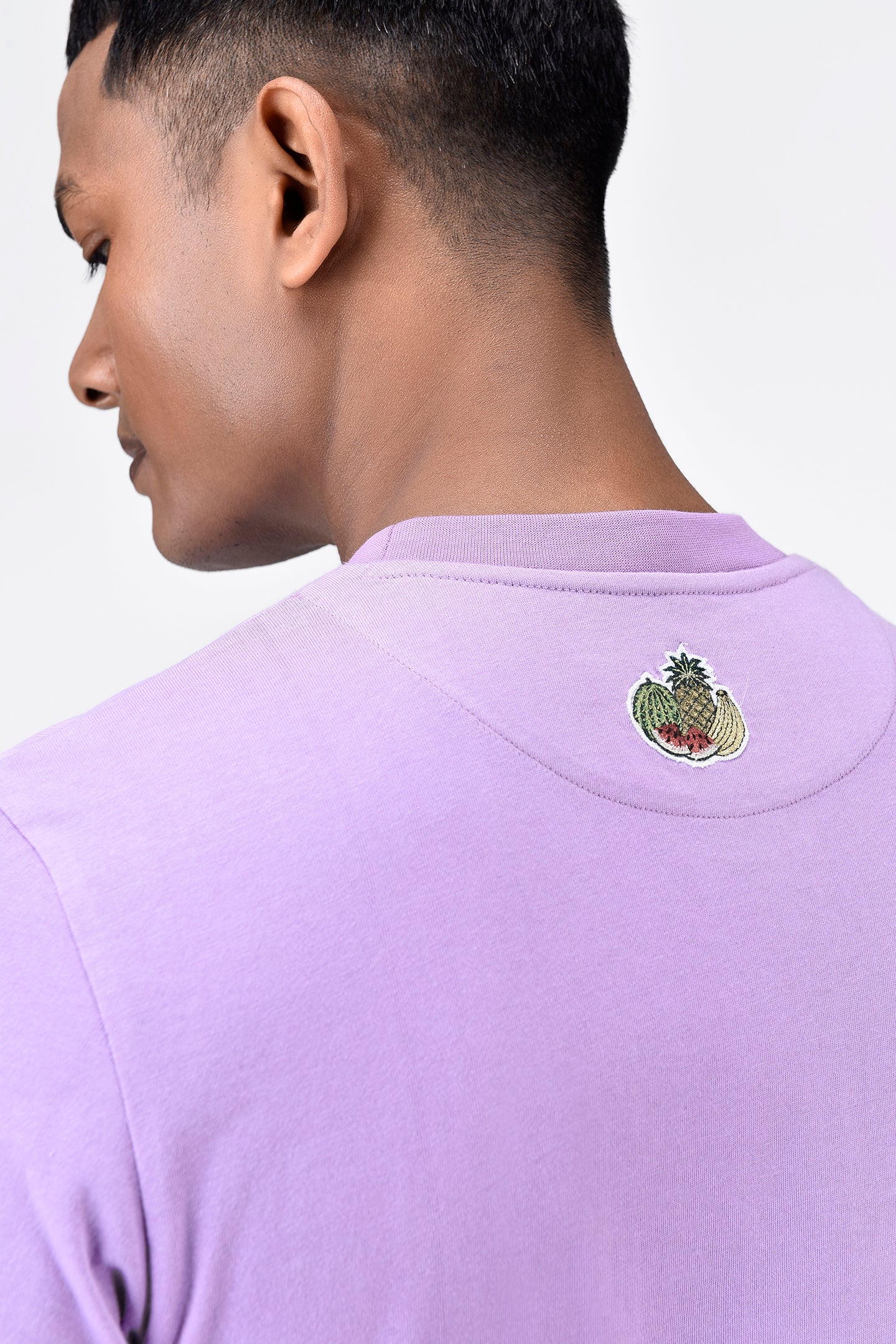 Regular Fit Men's T-Shirt With Genes Fruit Basket Embroidery-Lavender
