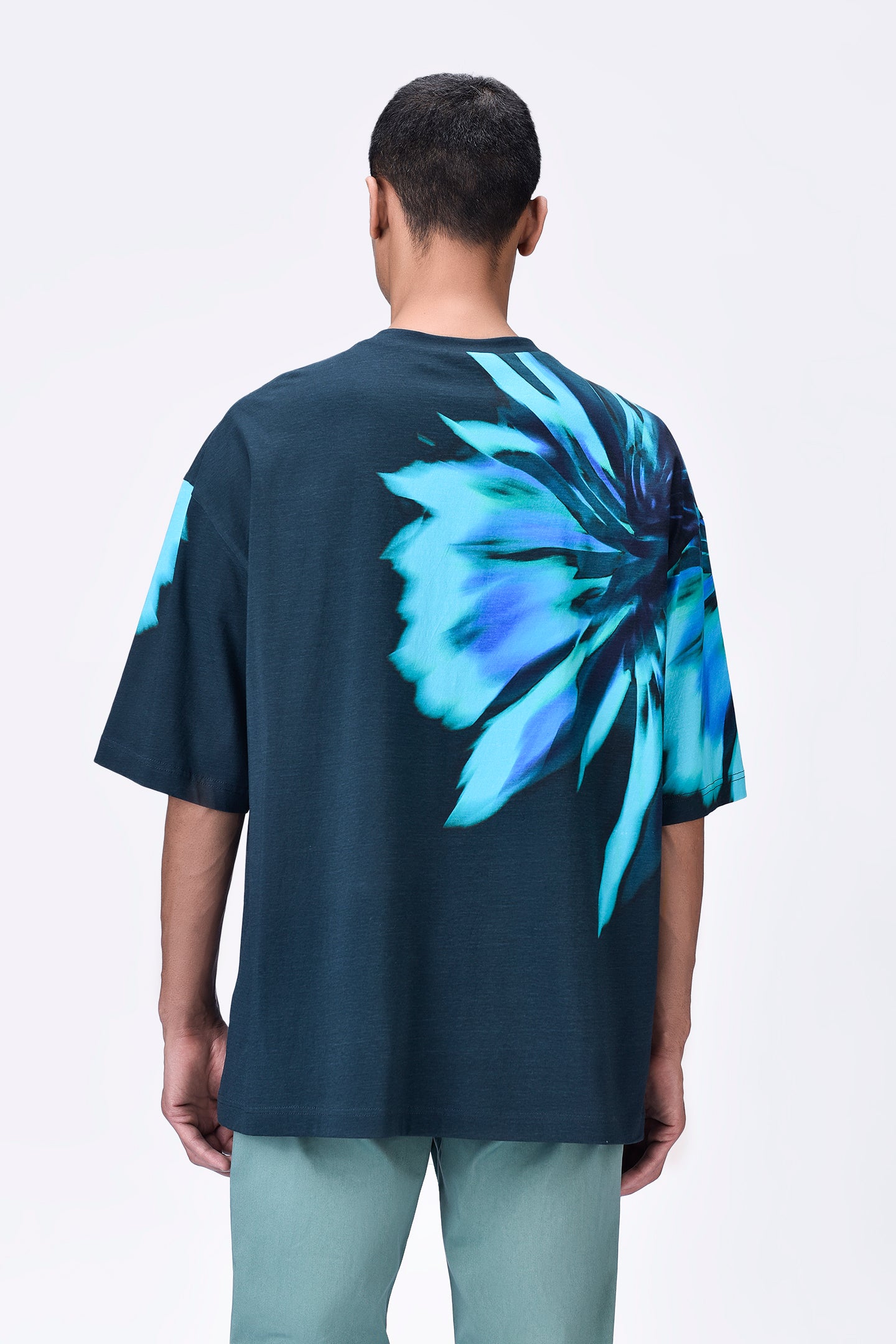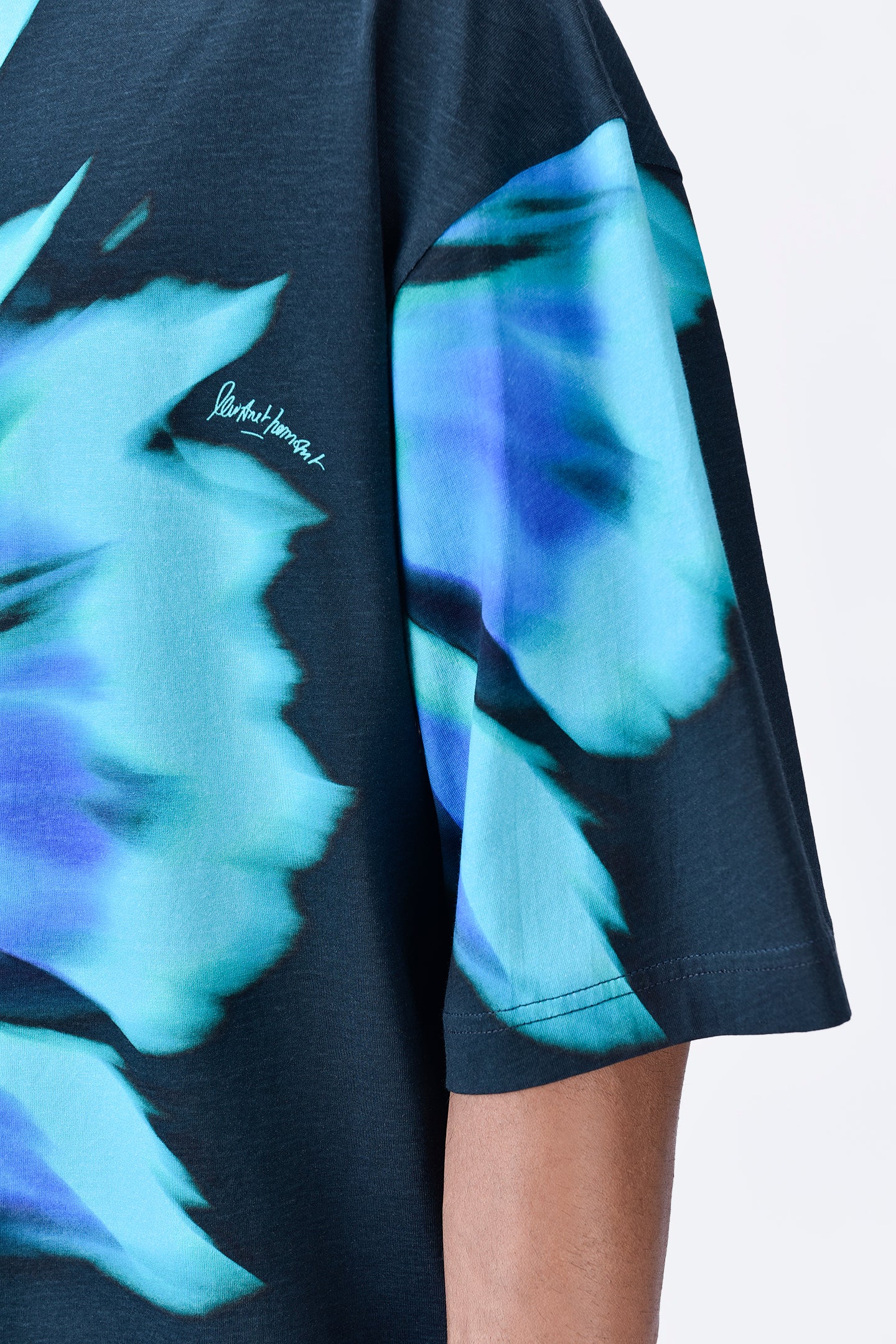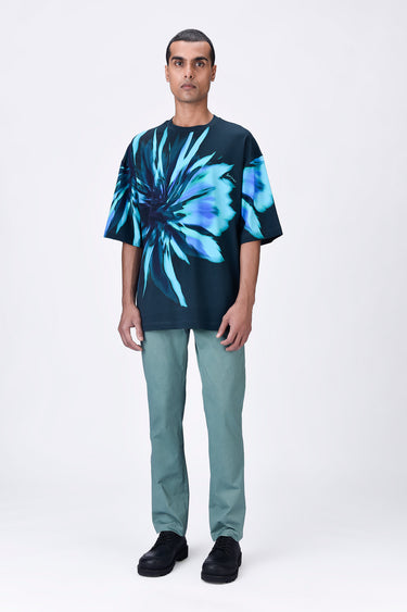 Oversized Cotton T-Shirt with UV Flower Print