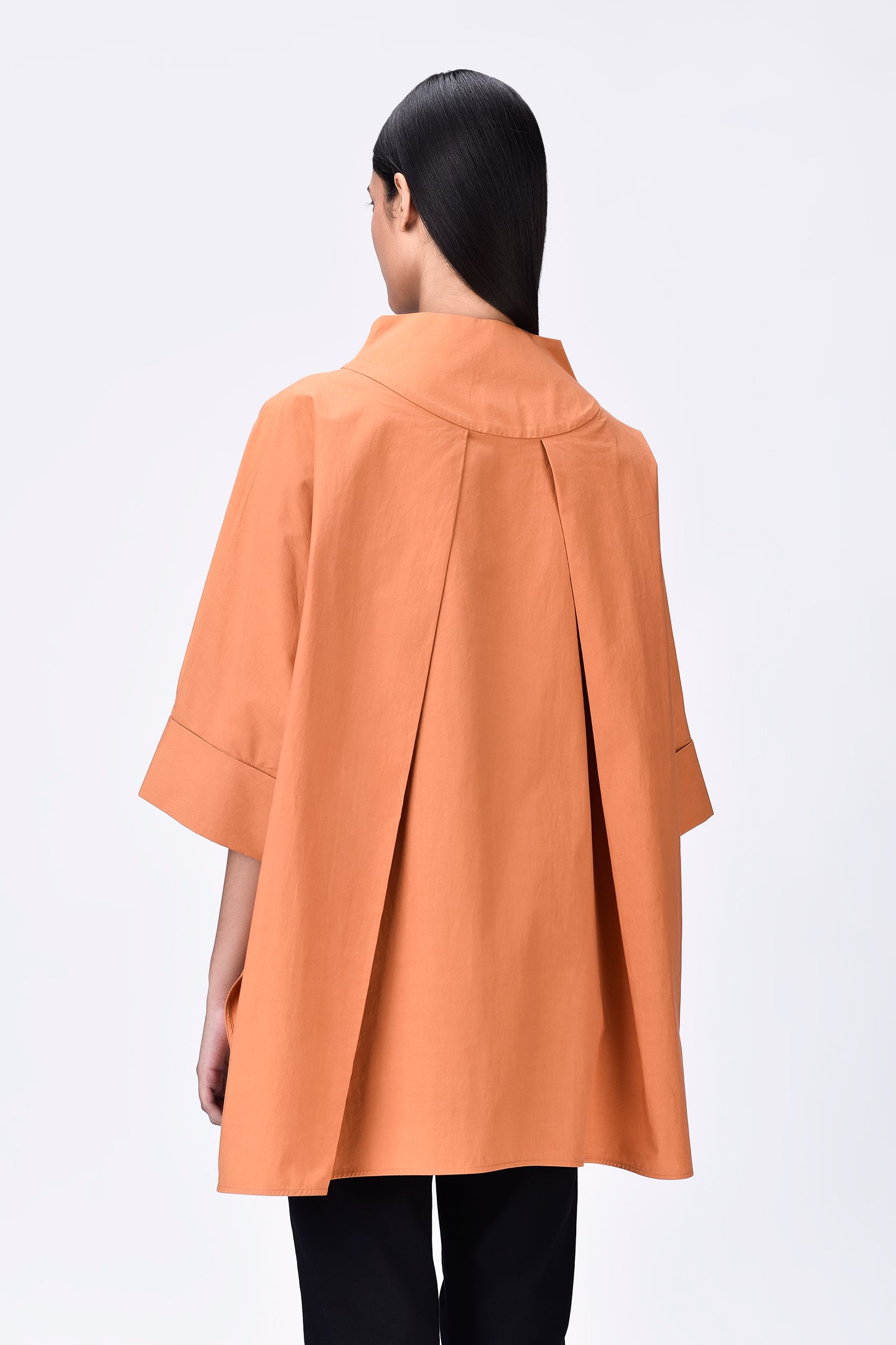 - It's unique silhouette with front tapered yoke, folded cuff and back pleats make this piece one of it's kind.