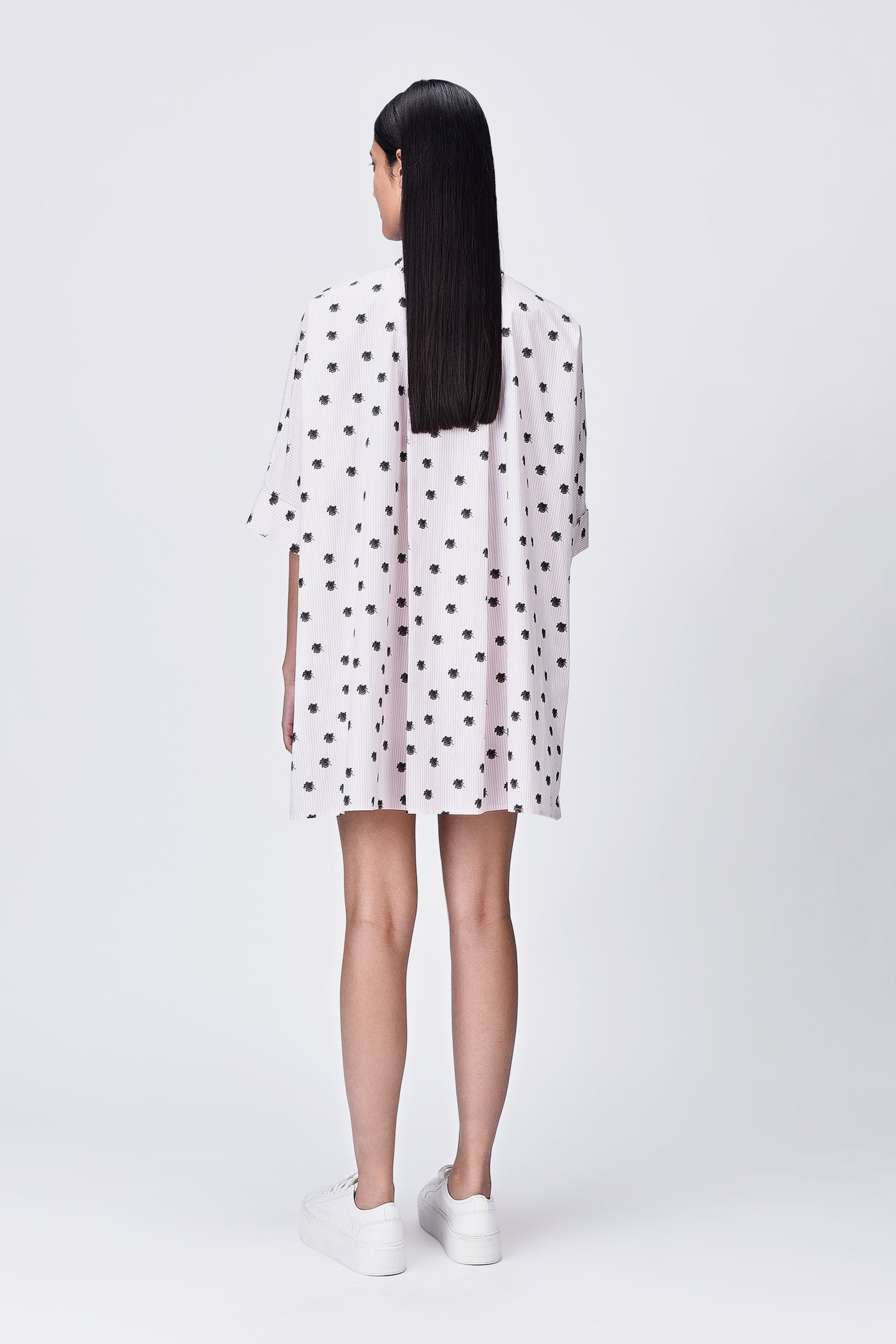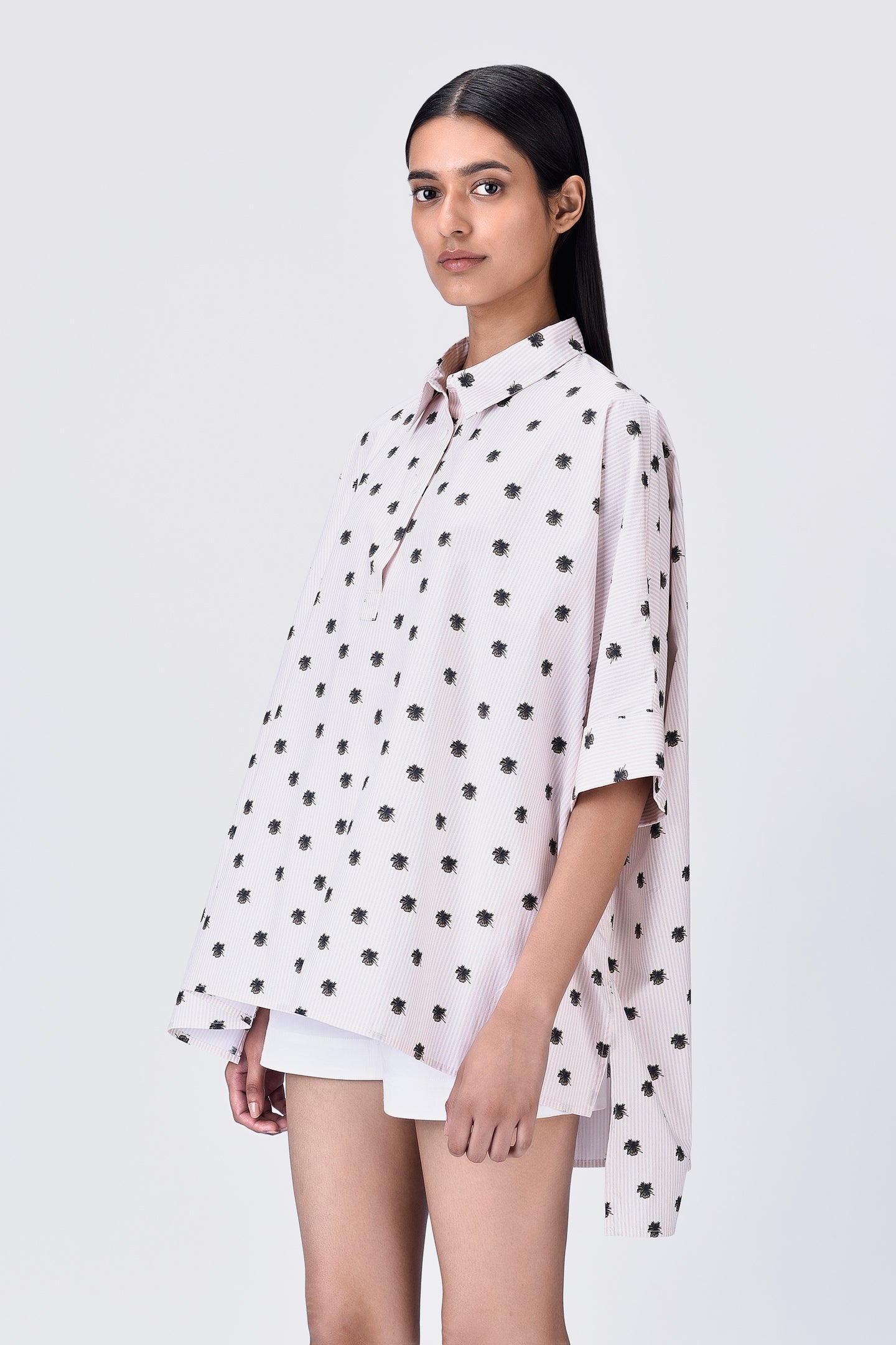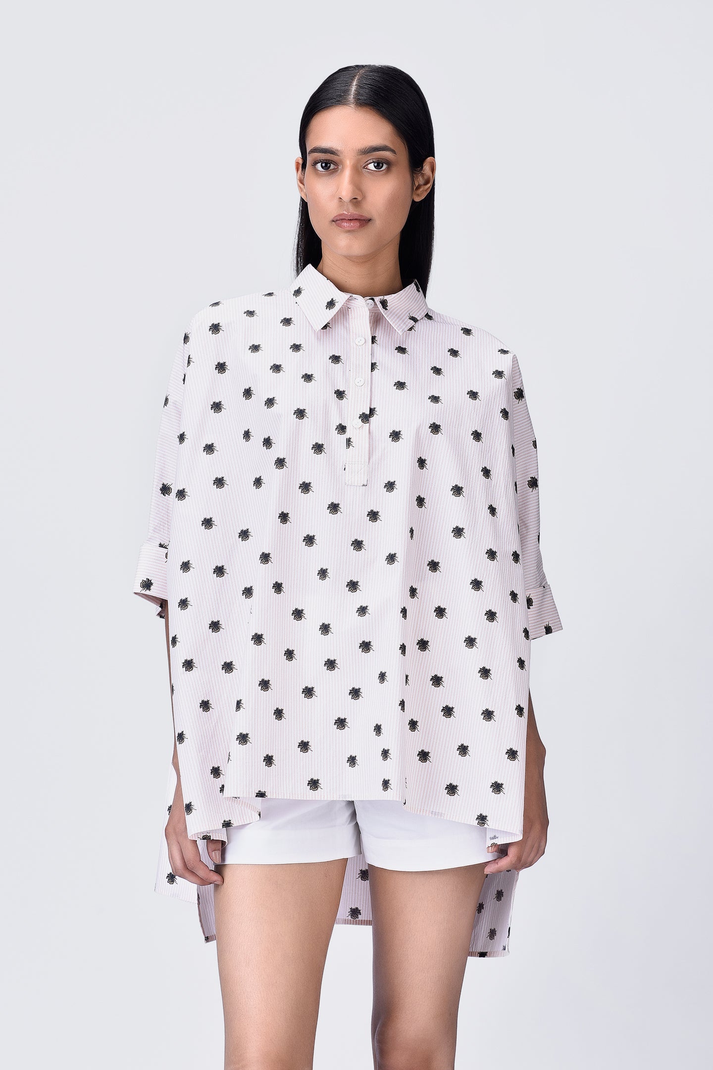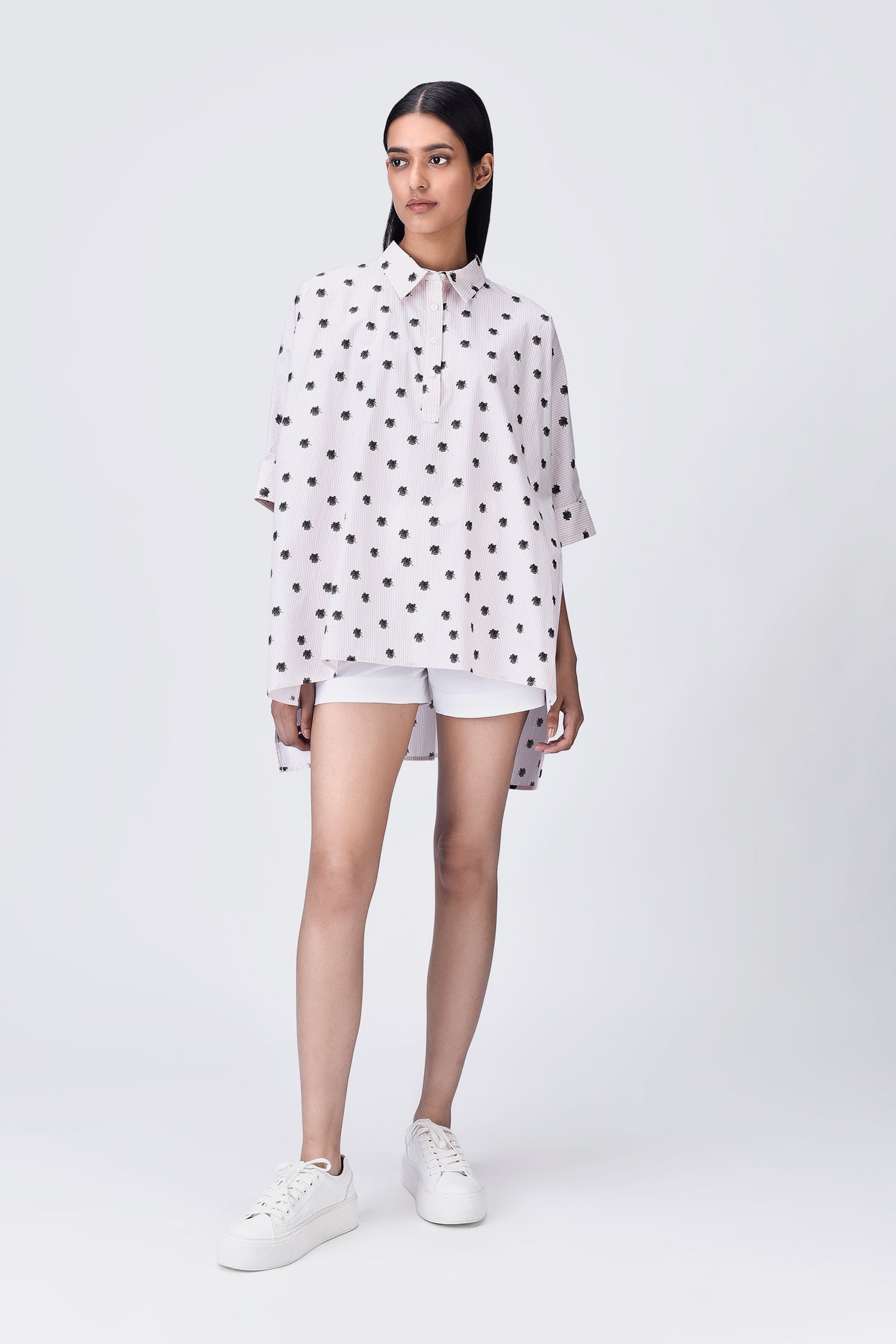 - The oversized, high-low silhouette gives relax and modern feel to the shirt