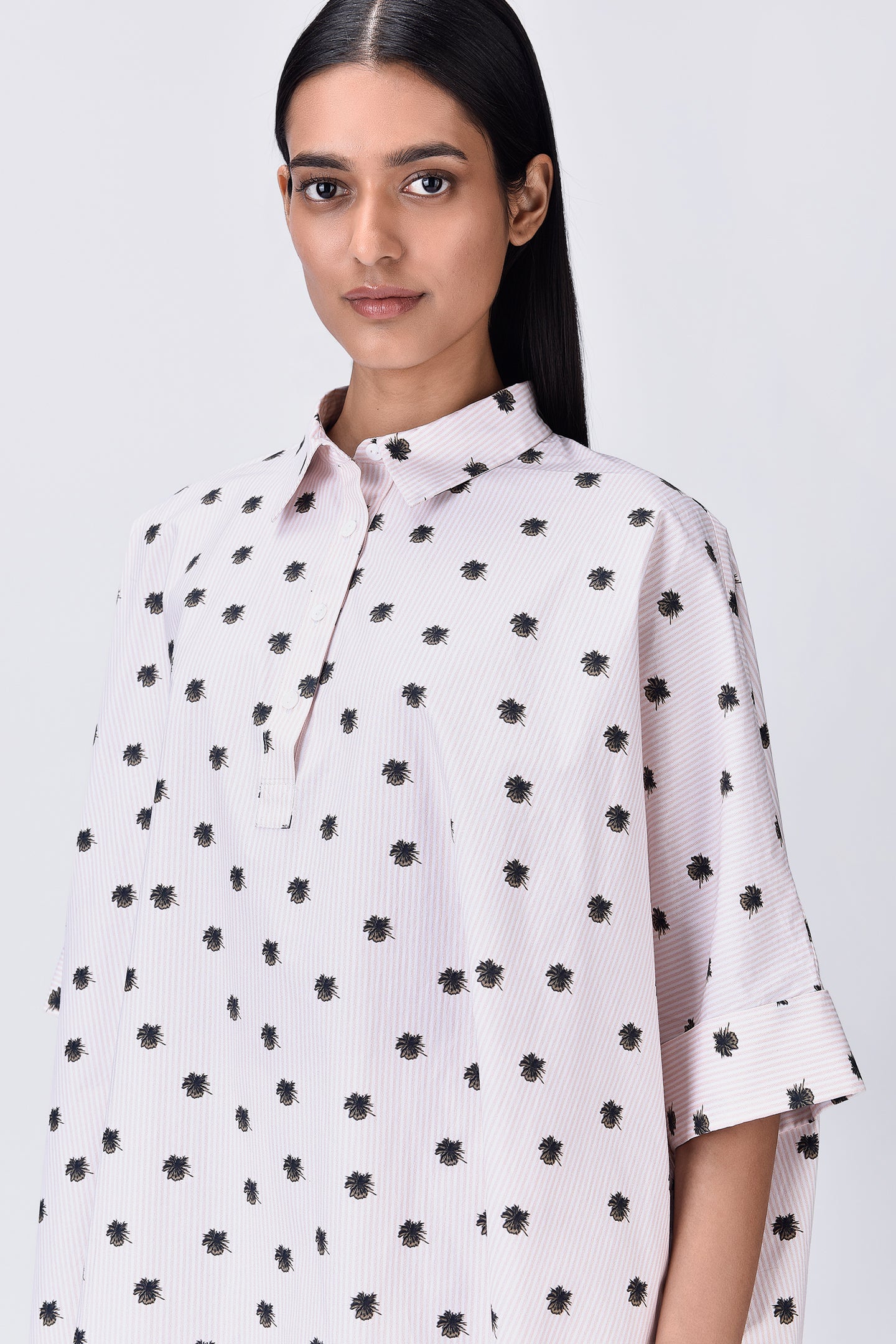 Featuring Pink Stripe UV Flower Print Shirt inspired by combining the classic Genes stripe and UV representation of the botanical wonder Kadupul: Queen of Night.