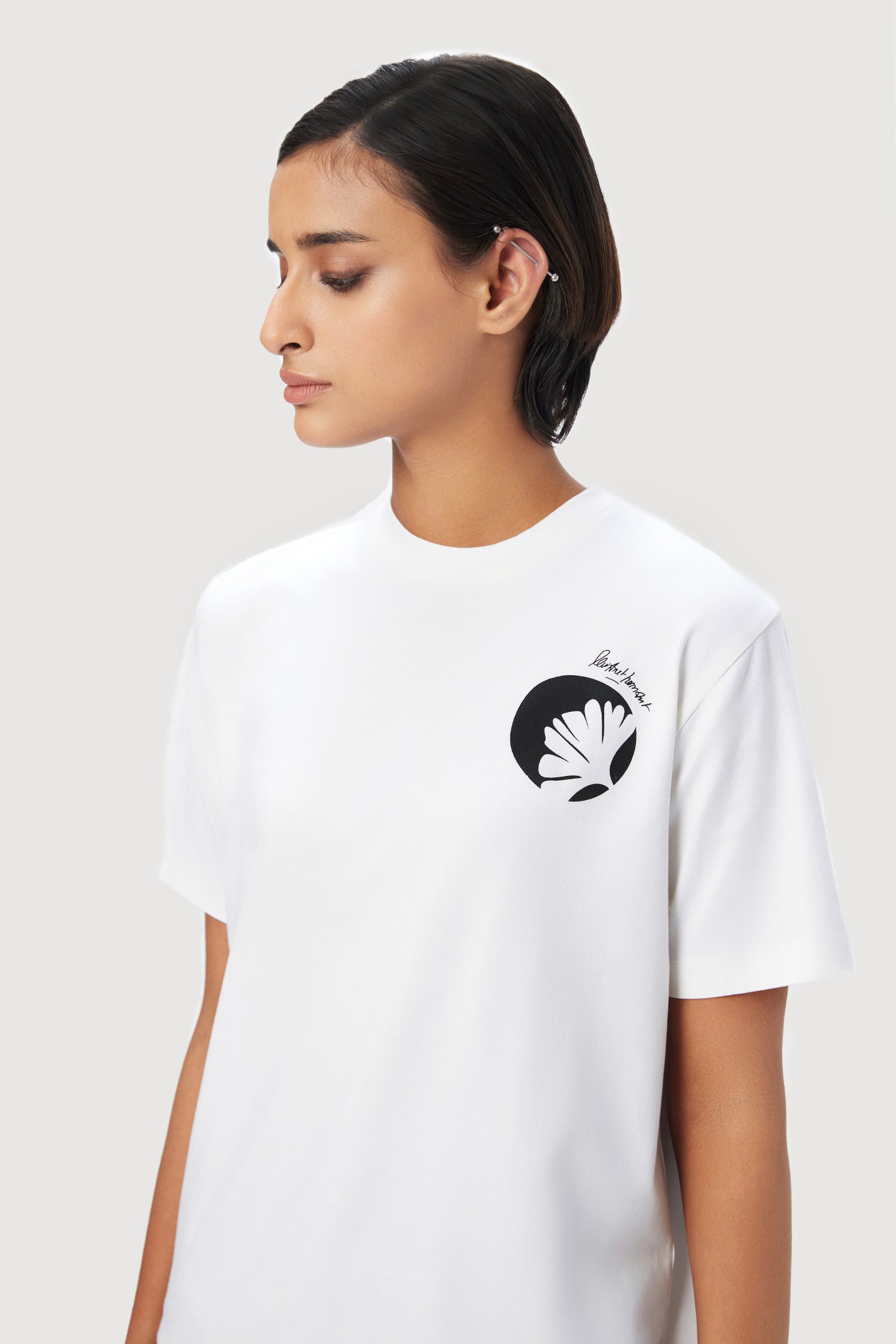 Advance your casual wardrobe with our exquisite regular-fit T-Shirt. Designed for both comfort and style, this t-shirt boasts a classic regular fit that complements all body types. The striking Ginkgo stamp print, meticulously placed, adds an artistic flair to your attire, while the subtle signature detail showcases our commitment to unique craftsmanship.