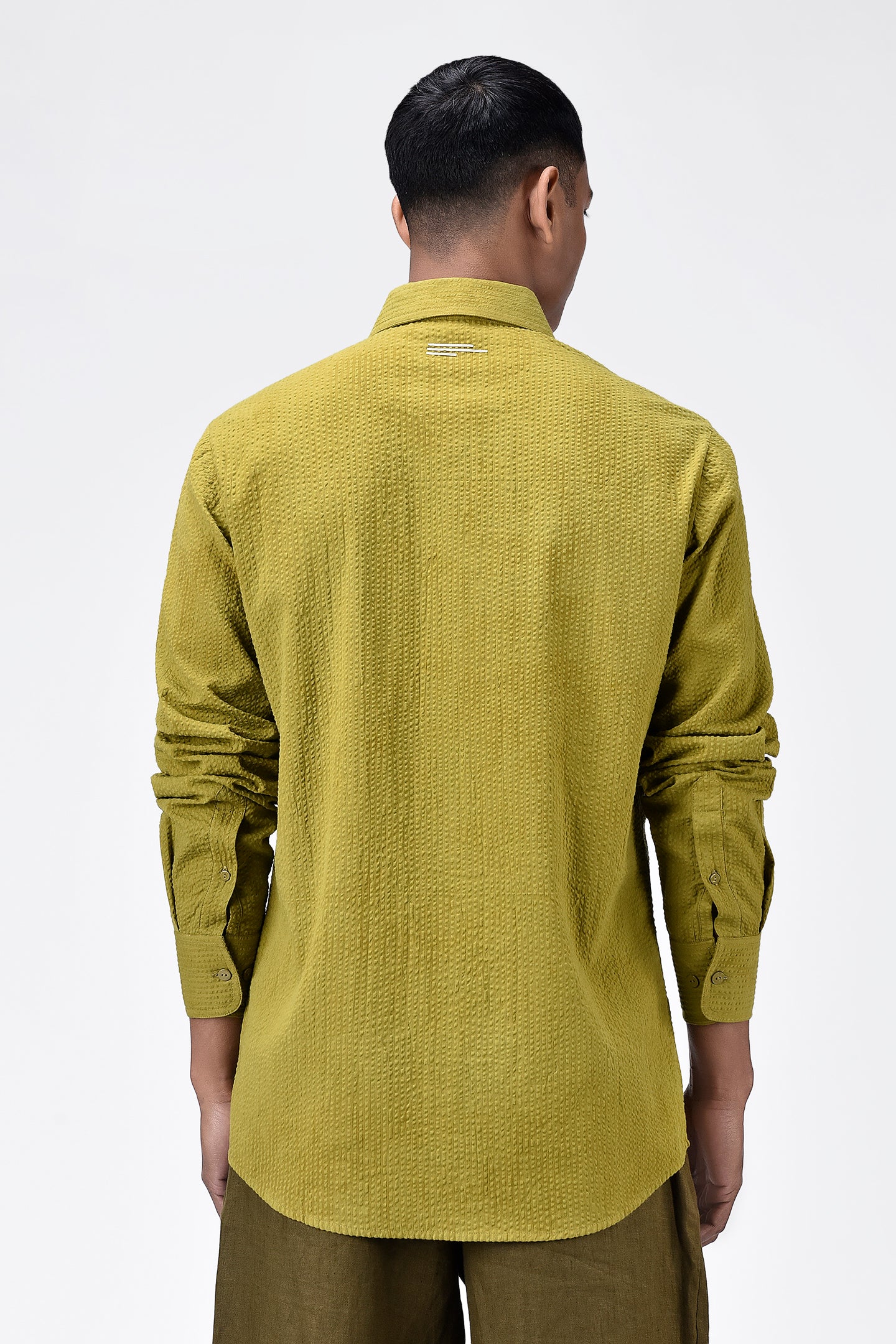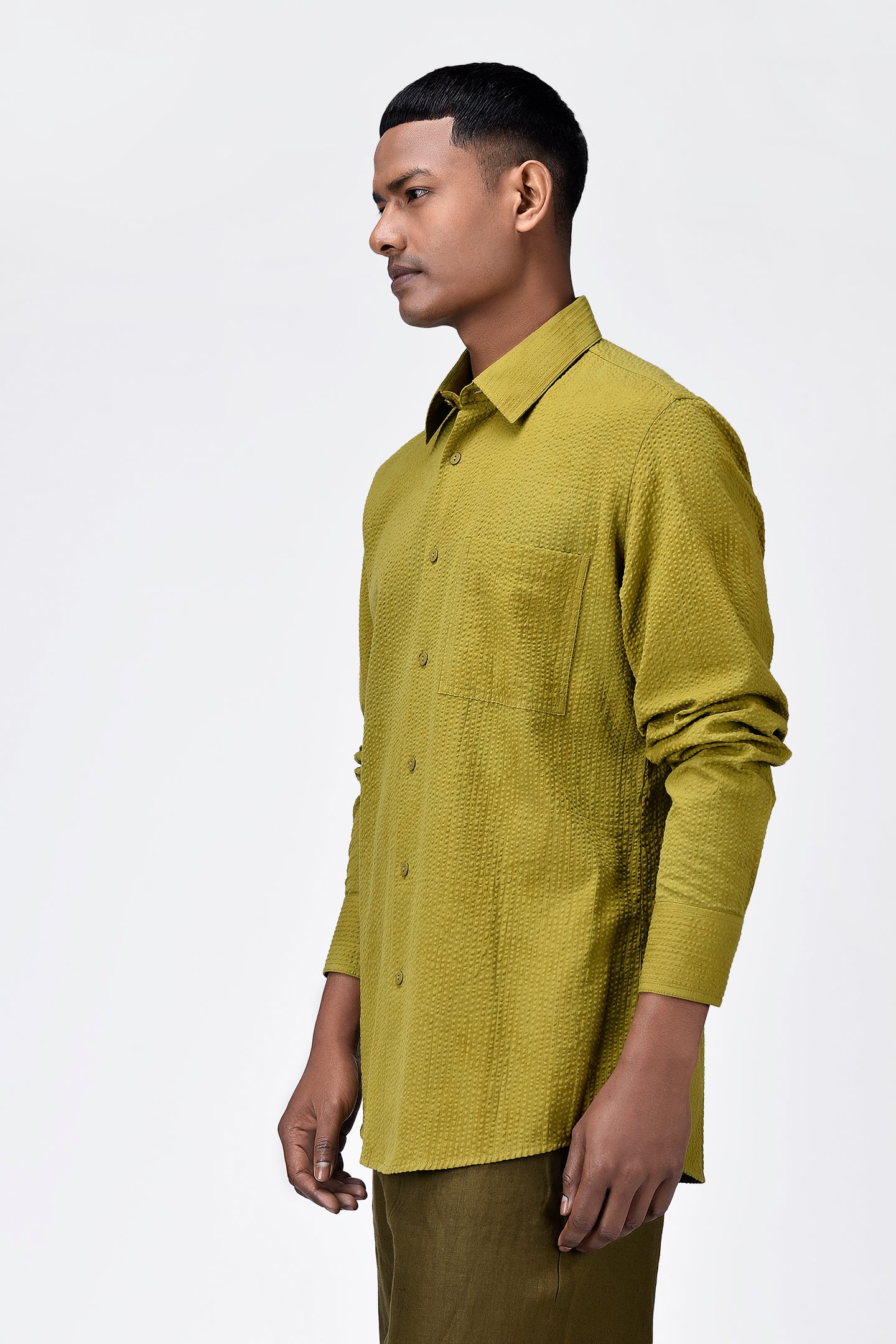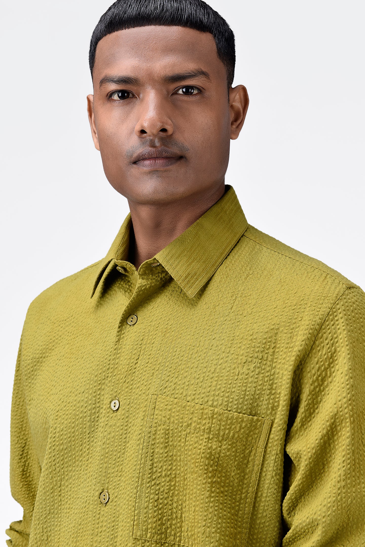 Classic Seersucker Regular Fit Men's Button-Up Shirt-Bright Olive