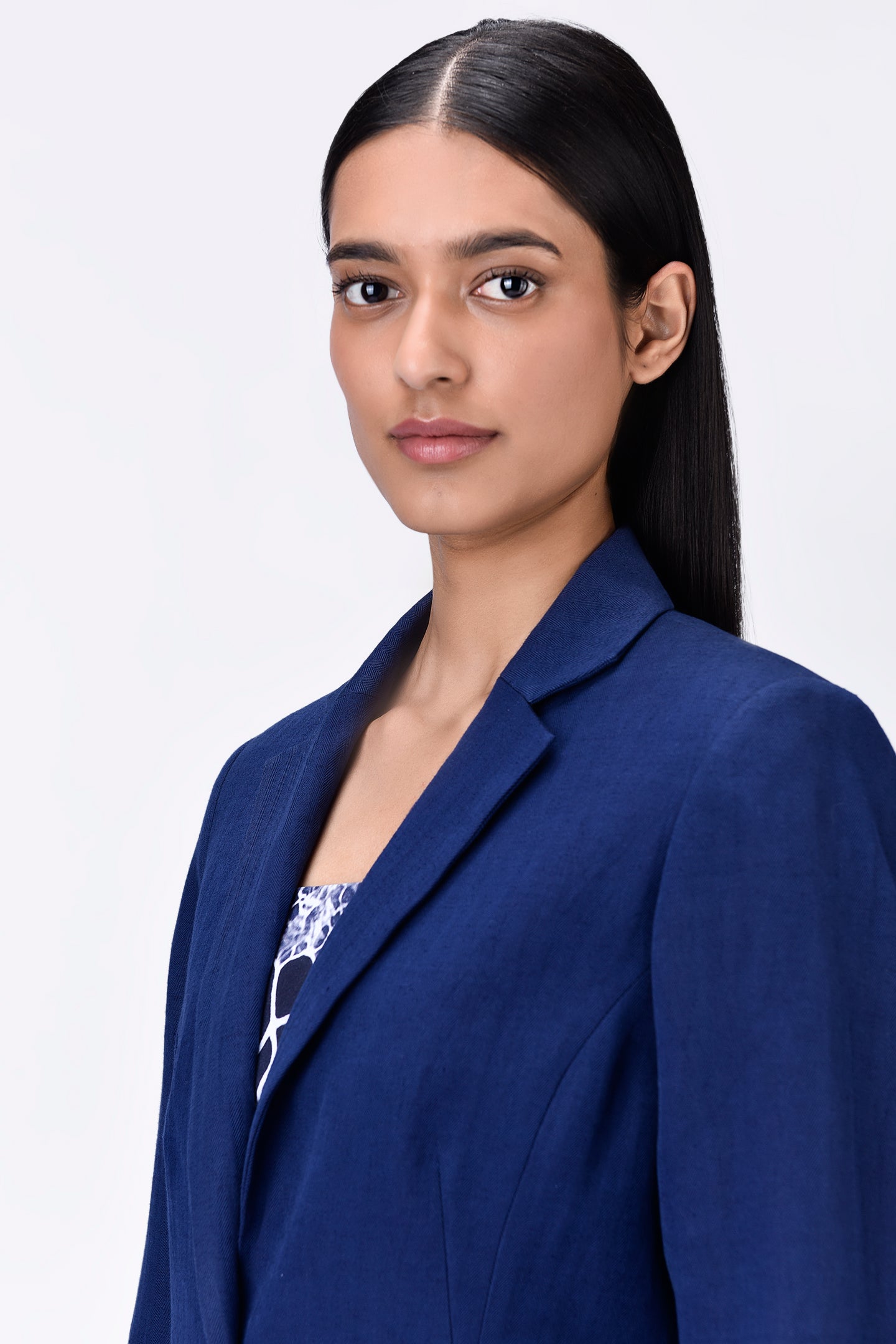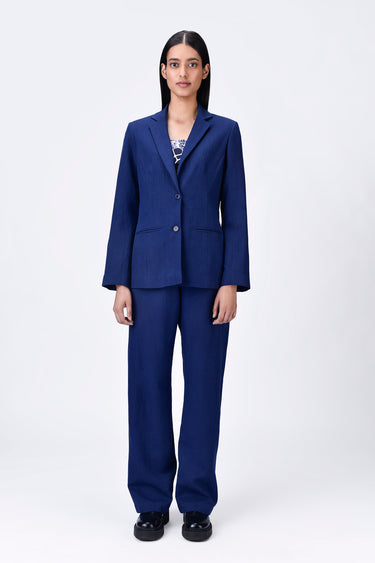 Linen Jacket with Constructed Darts - Navy Blue