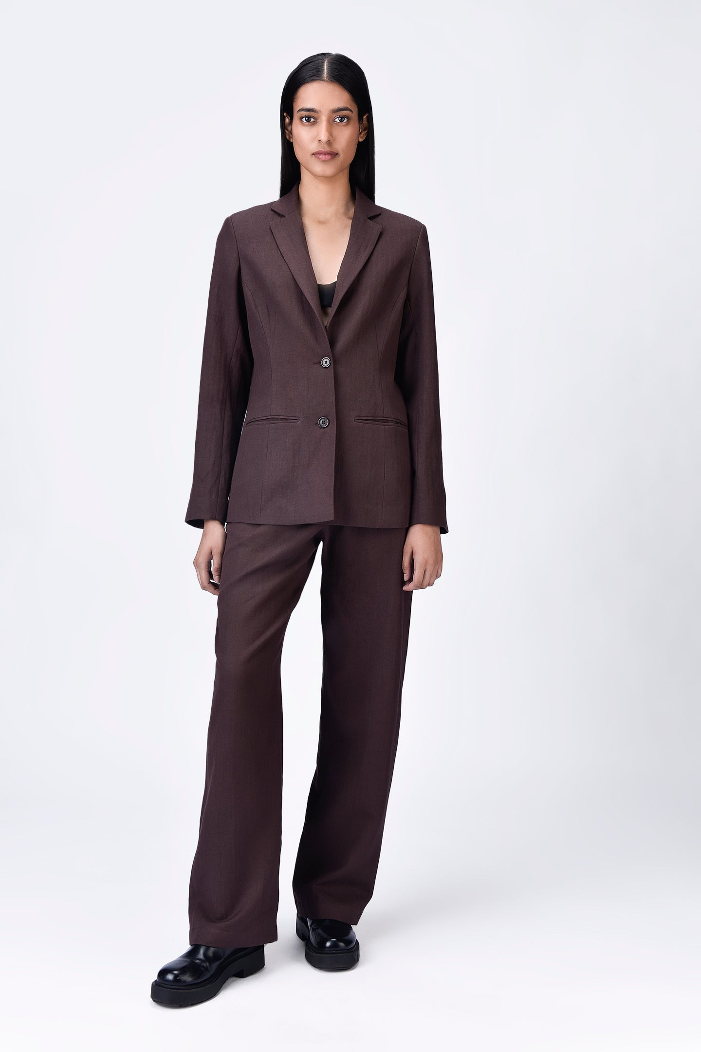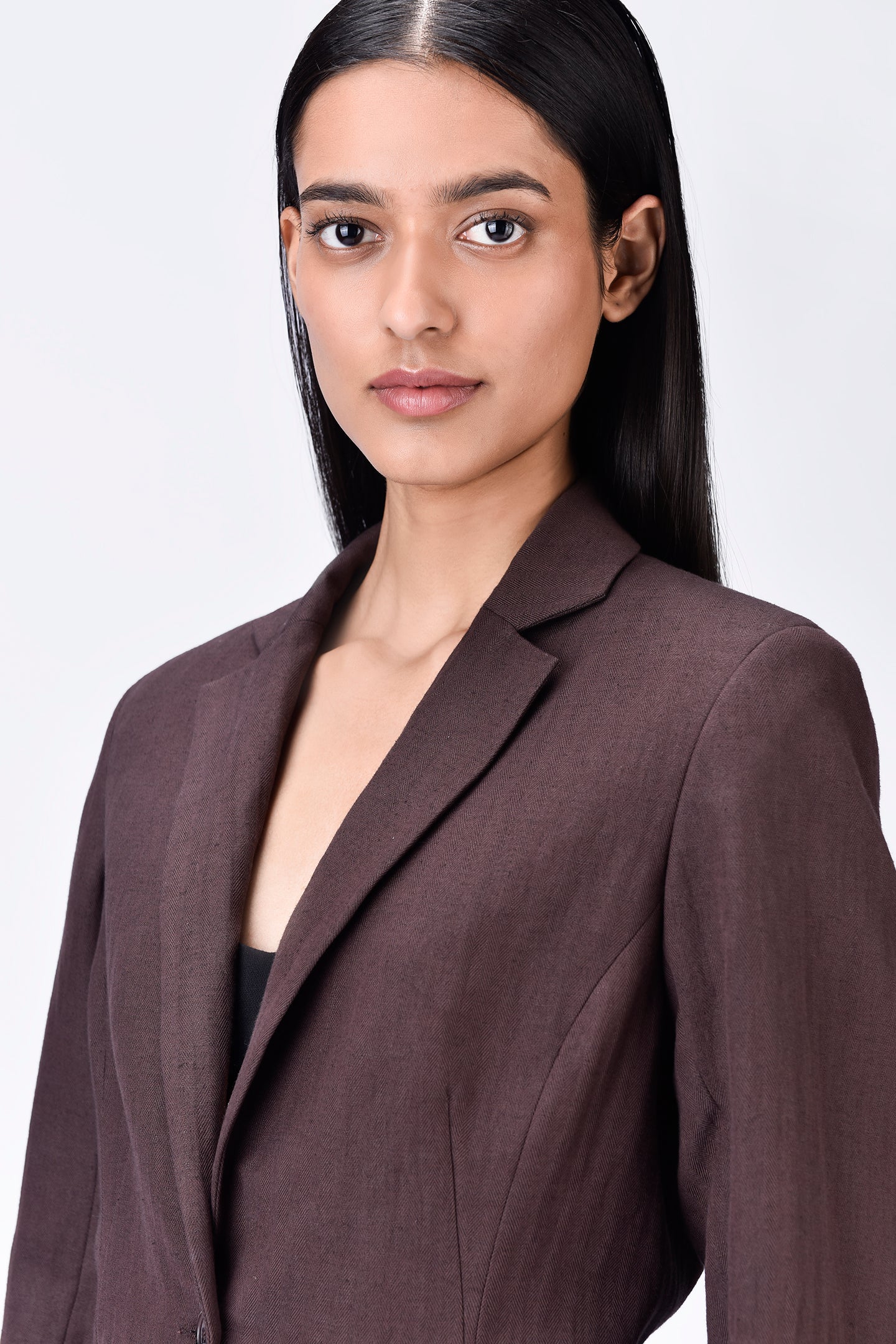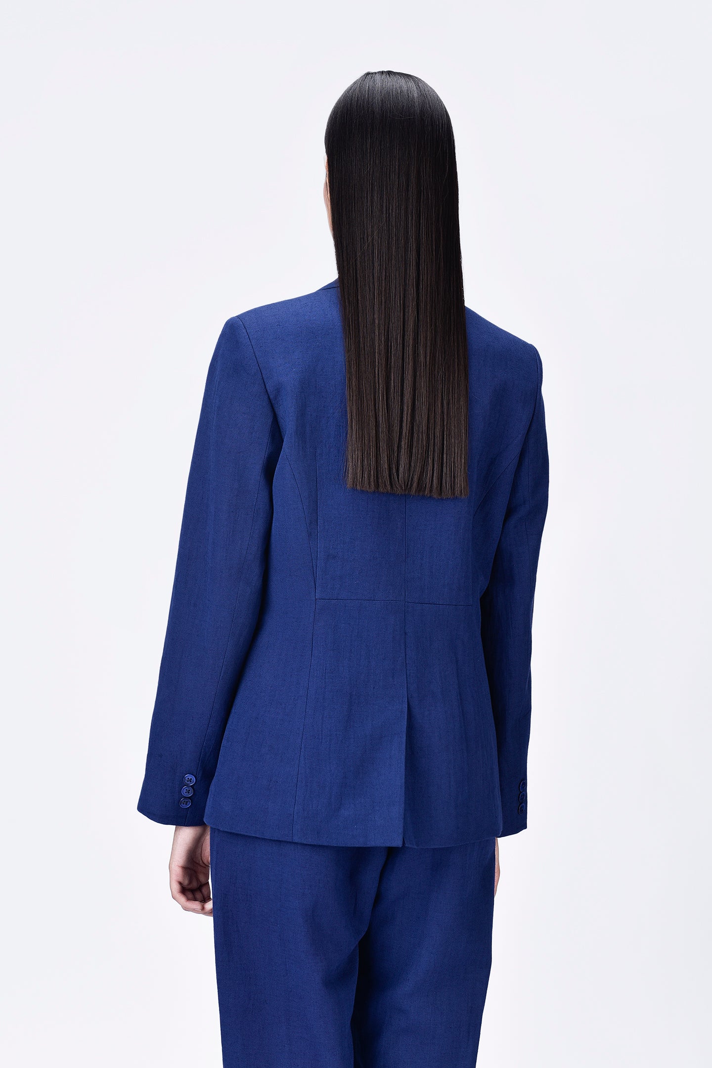 Featuring Semi-Fitted Linen Jacket with constructed darts delivering a tailored and refined look, perfect for both professional and casual setting.