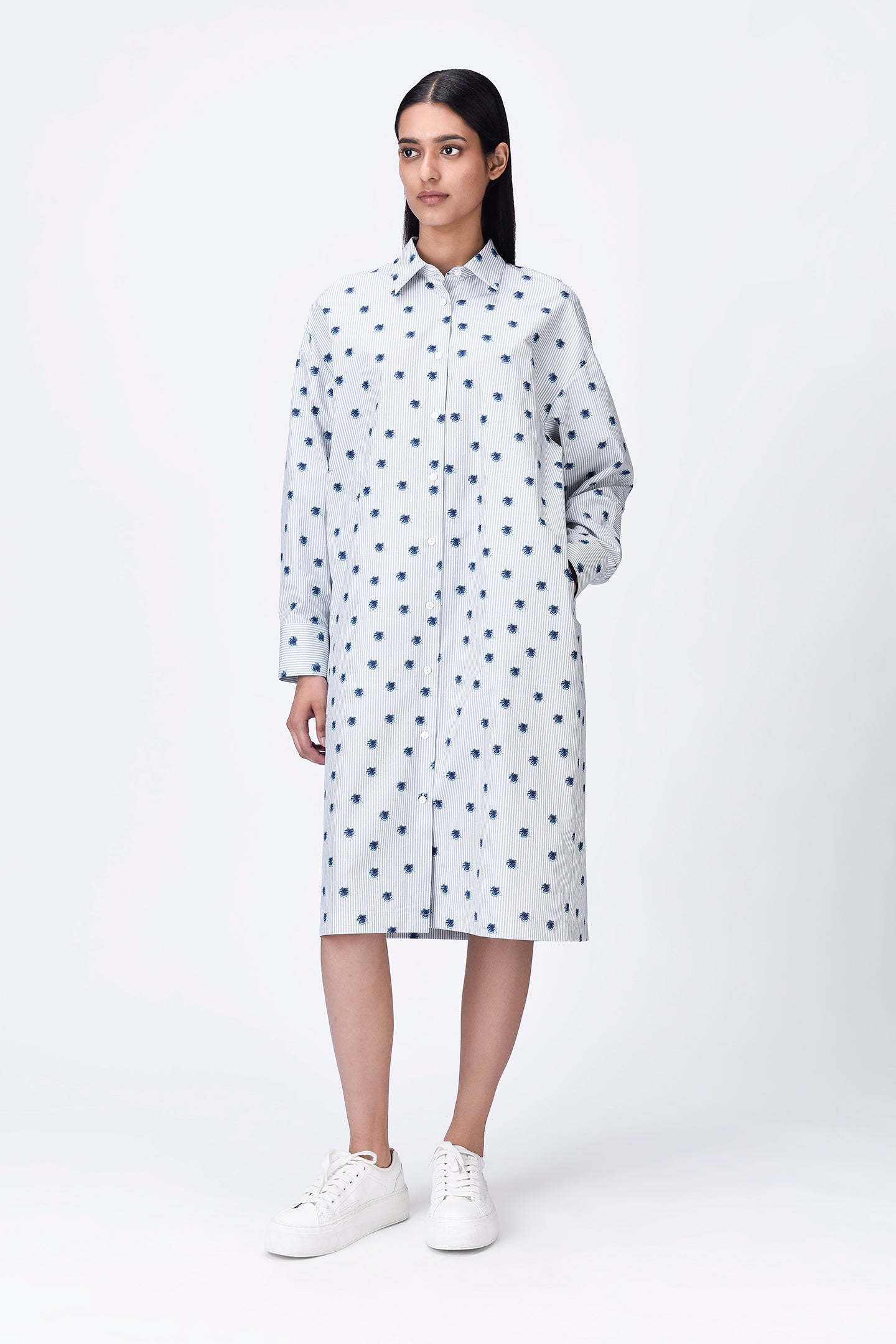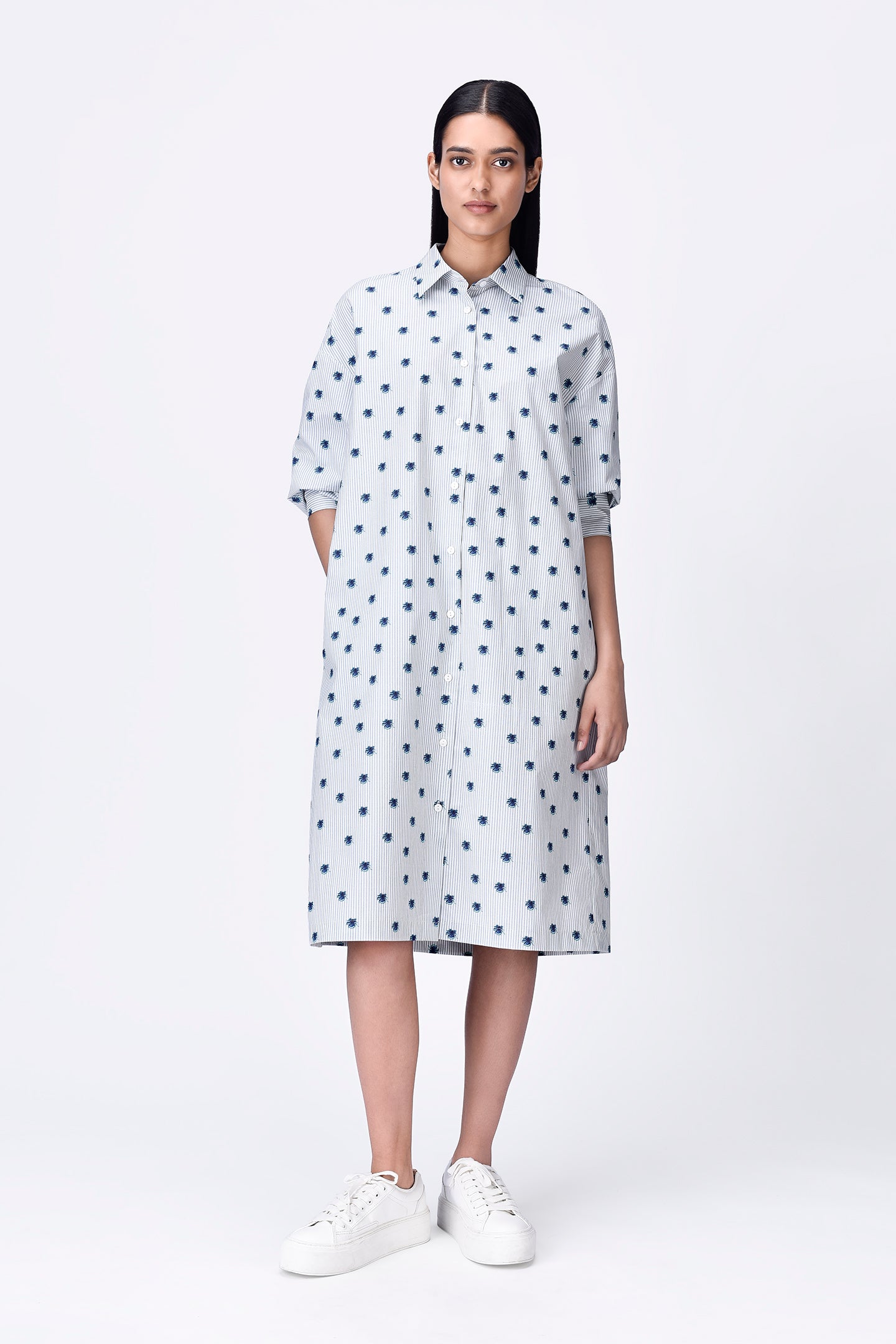 Stylish striped dress for women made from premium Giza cotton poplin. Combines a modern stripe pattern with the comfort and breathability of high-quality fabric.