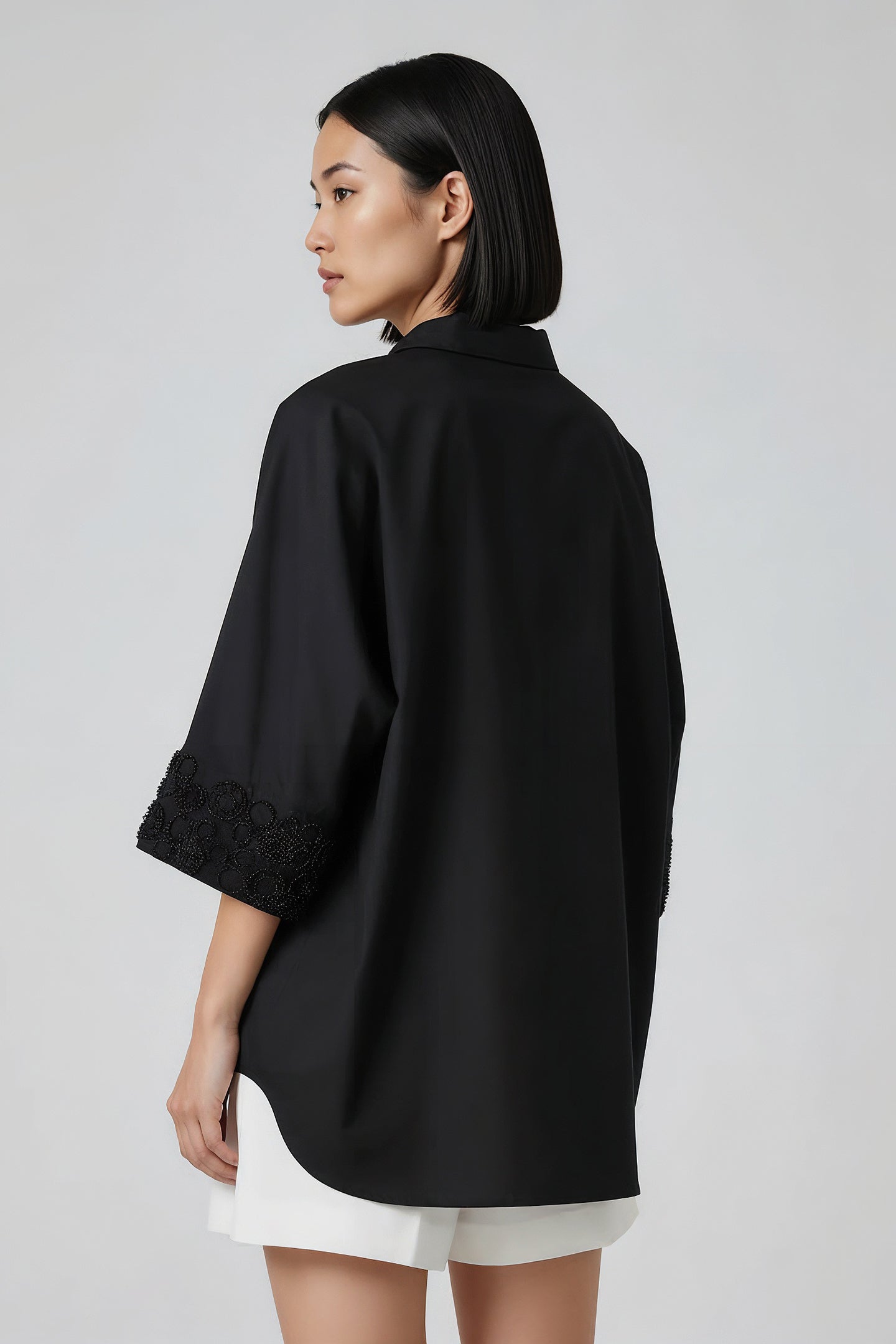 Tailored from 100% Giza Cotton Poplin, this shirt merges refined craftsmanship with contemporary ease. The fabric’s luxurious crispness and soft sheen lend architectural precision to the silhouette while maintaining all-day comfort.