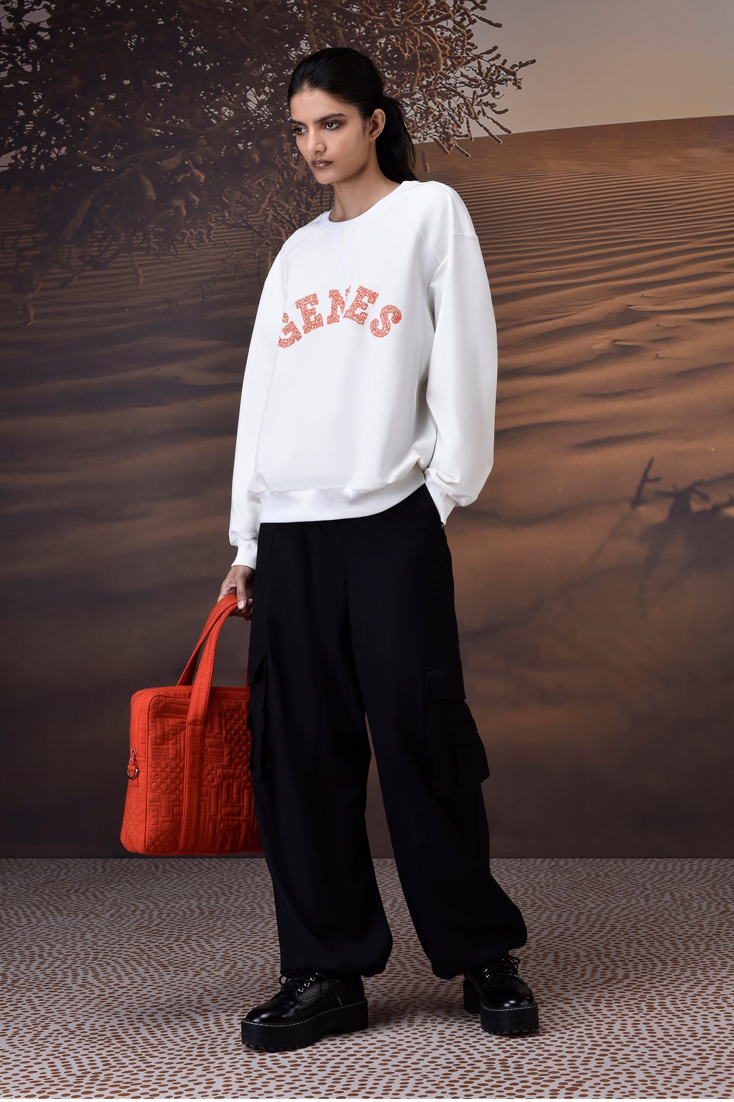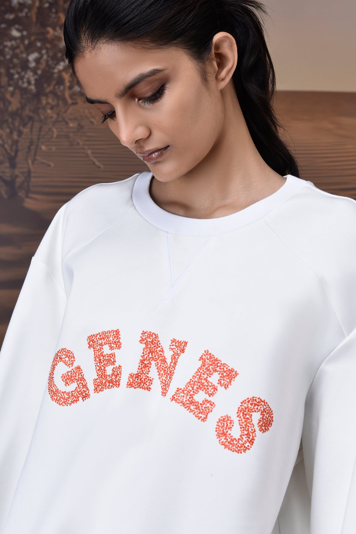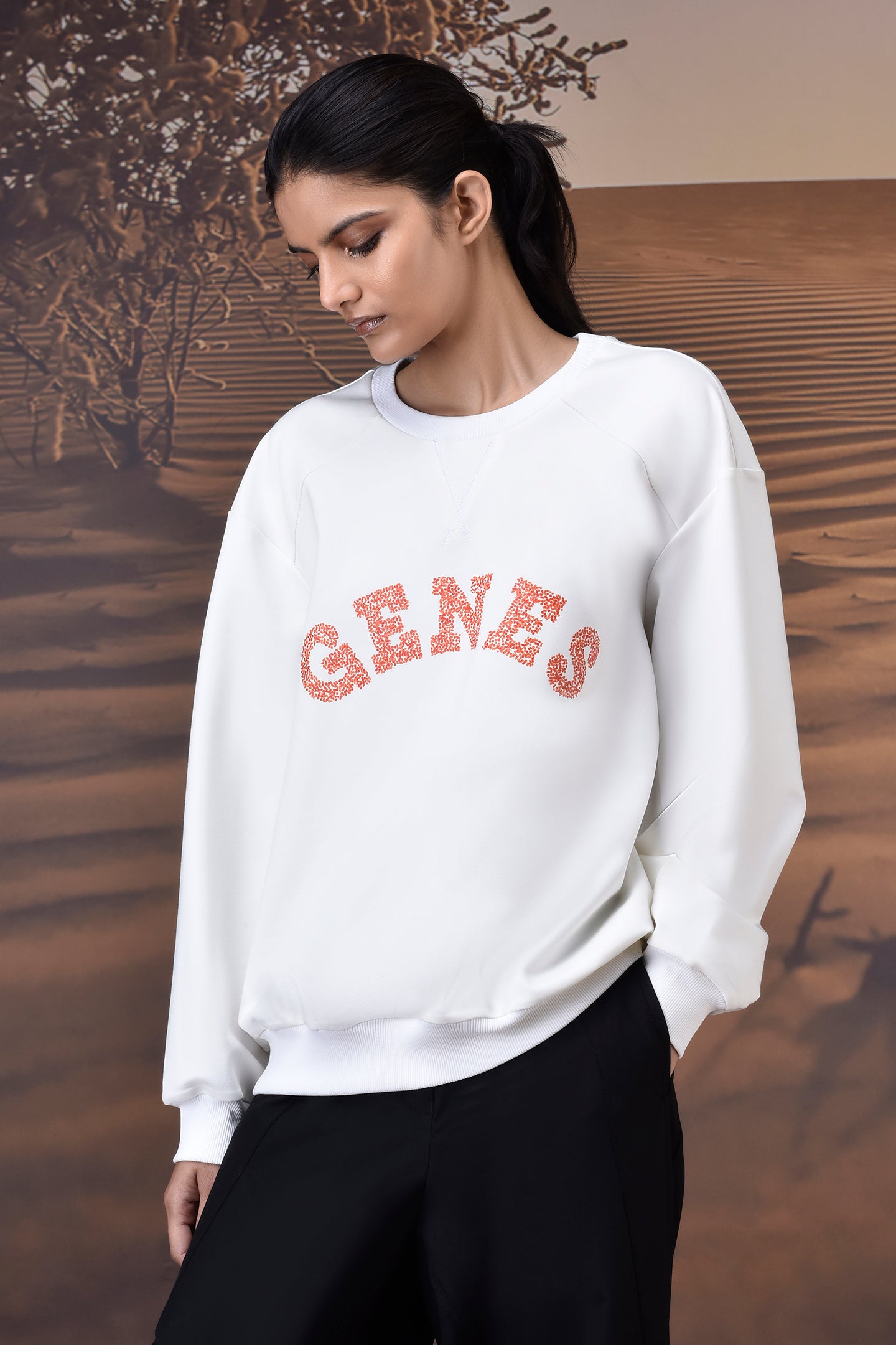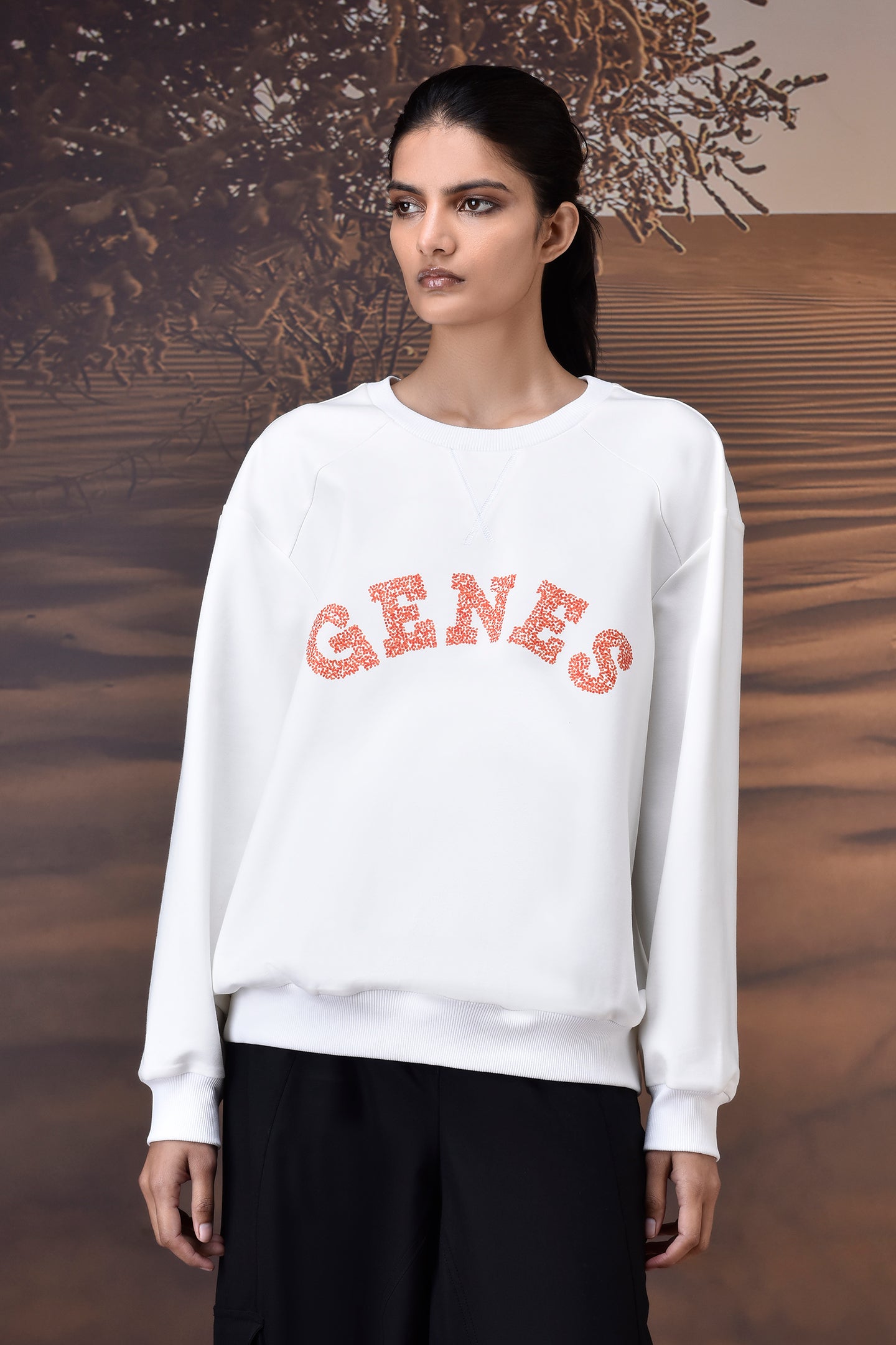 Ecru Crew Neck Sweatshirt with Textured GENES Appliqué