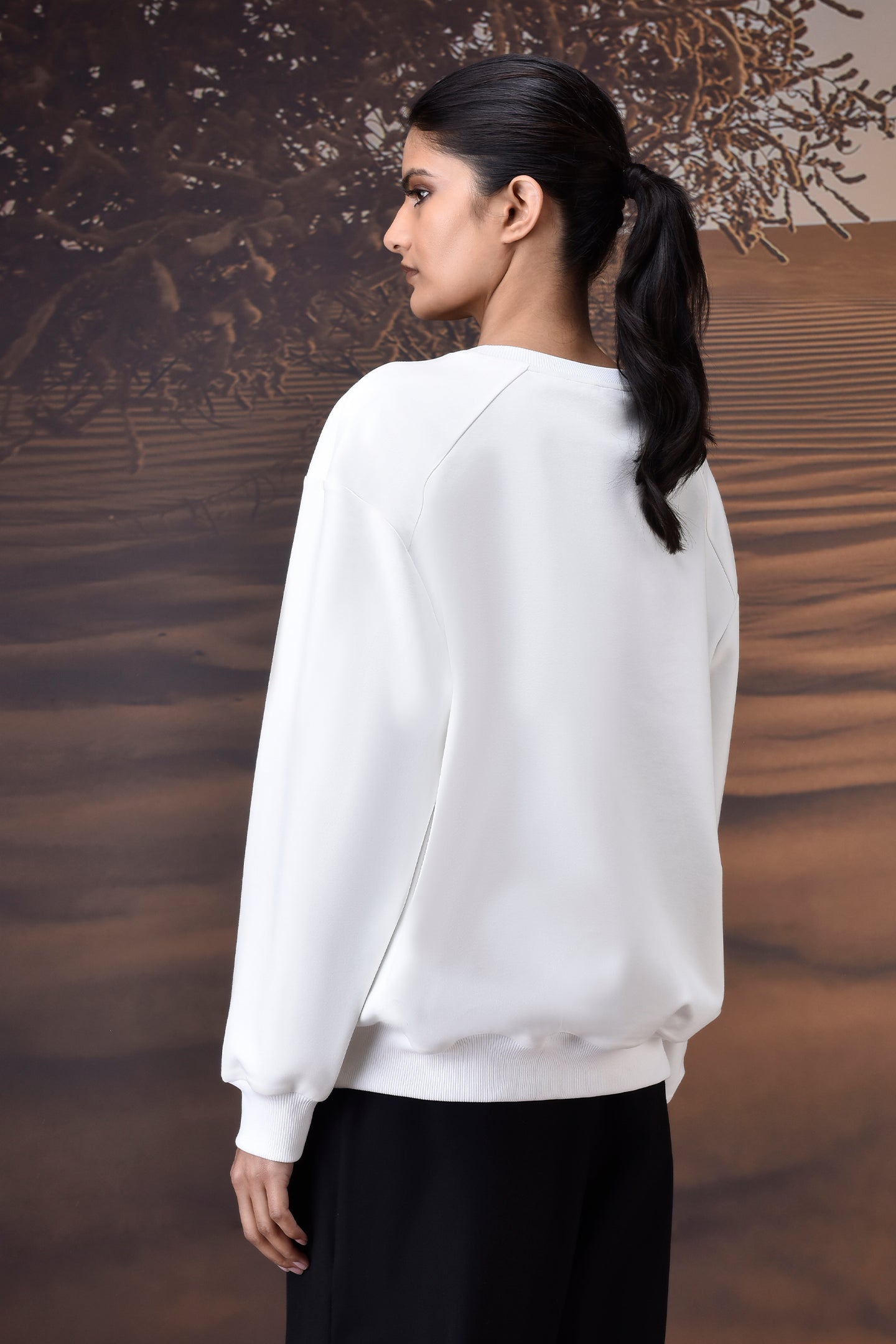 Perfect with tailored trousers, wide-leg pants, or casual denim, this sweatshirt offers a polished yet approachable take on everyday dressing.
