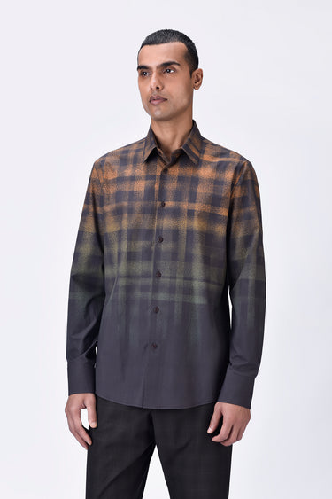 Featuring a comfortable shirt with our Dot check print inspired by the visualization of solar waves using a pattern of dots to portray complex behaviors and interactions of solar waves.