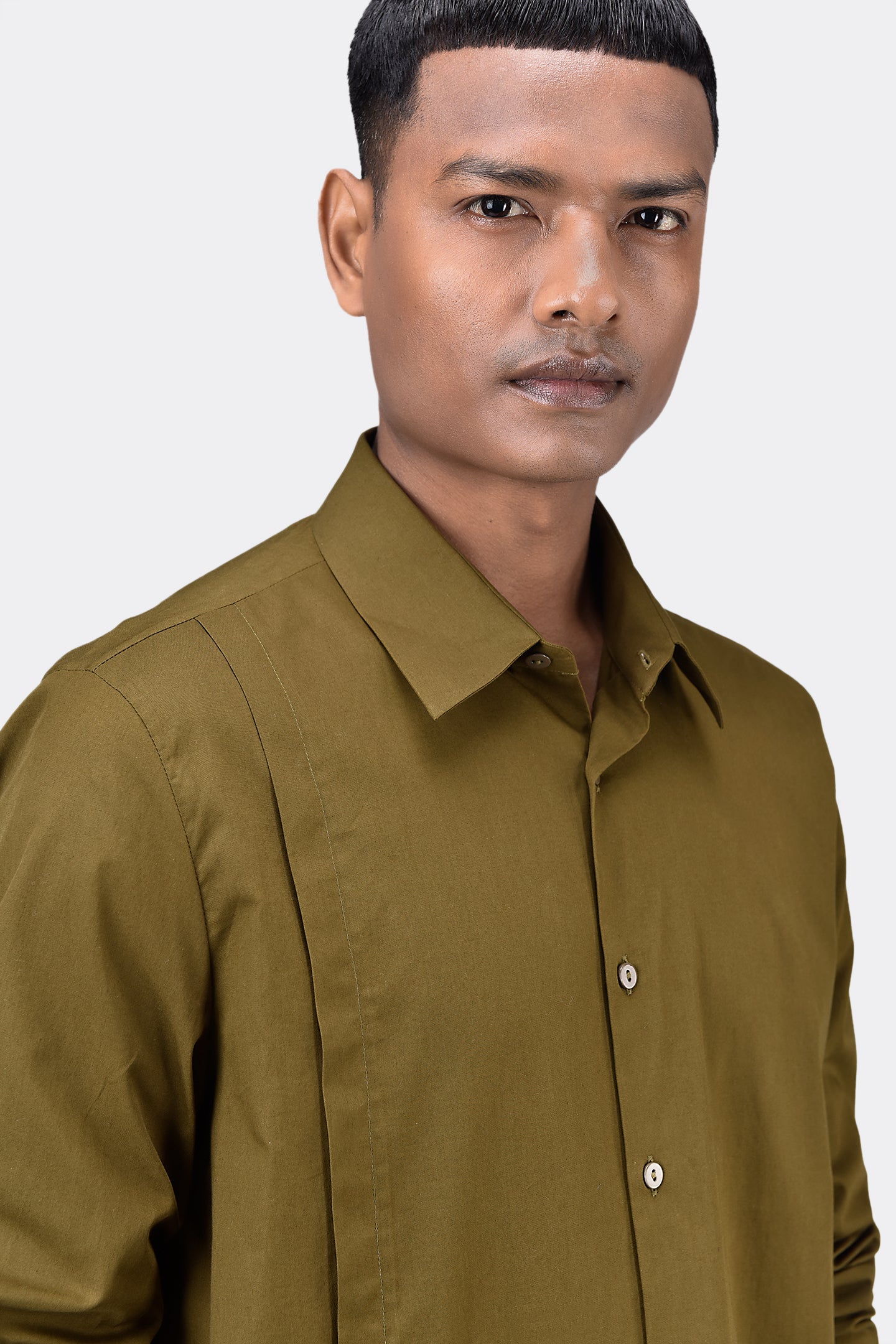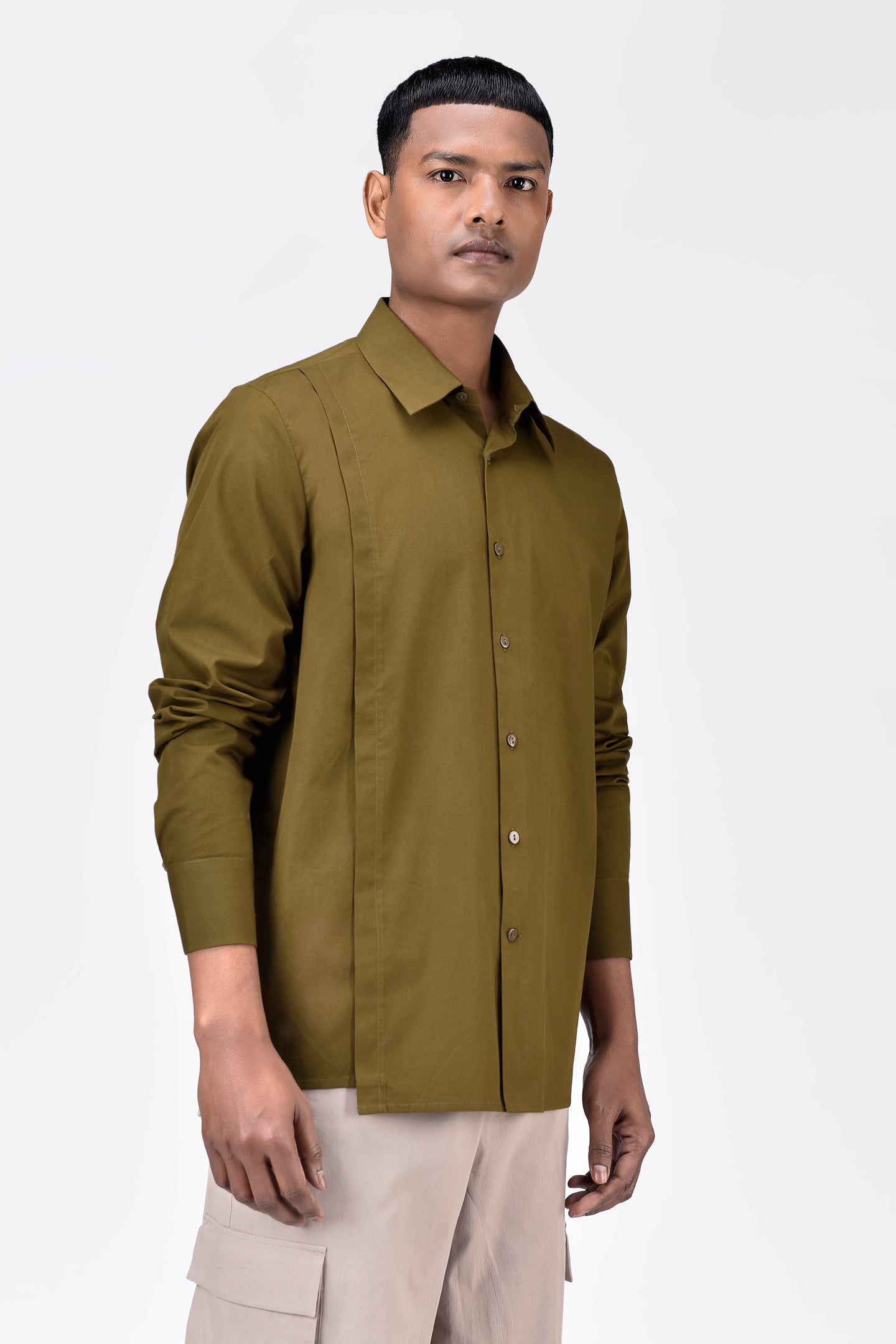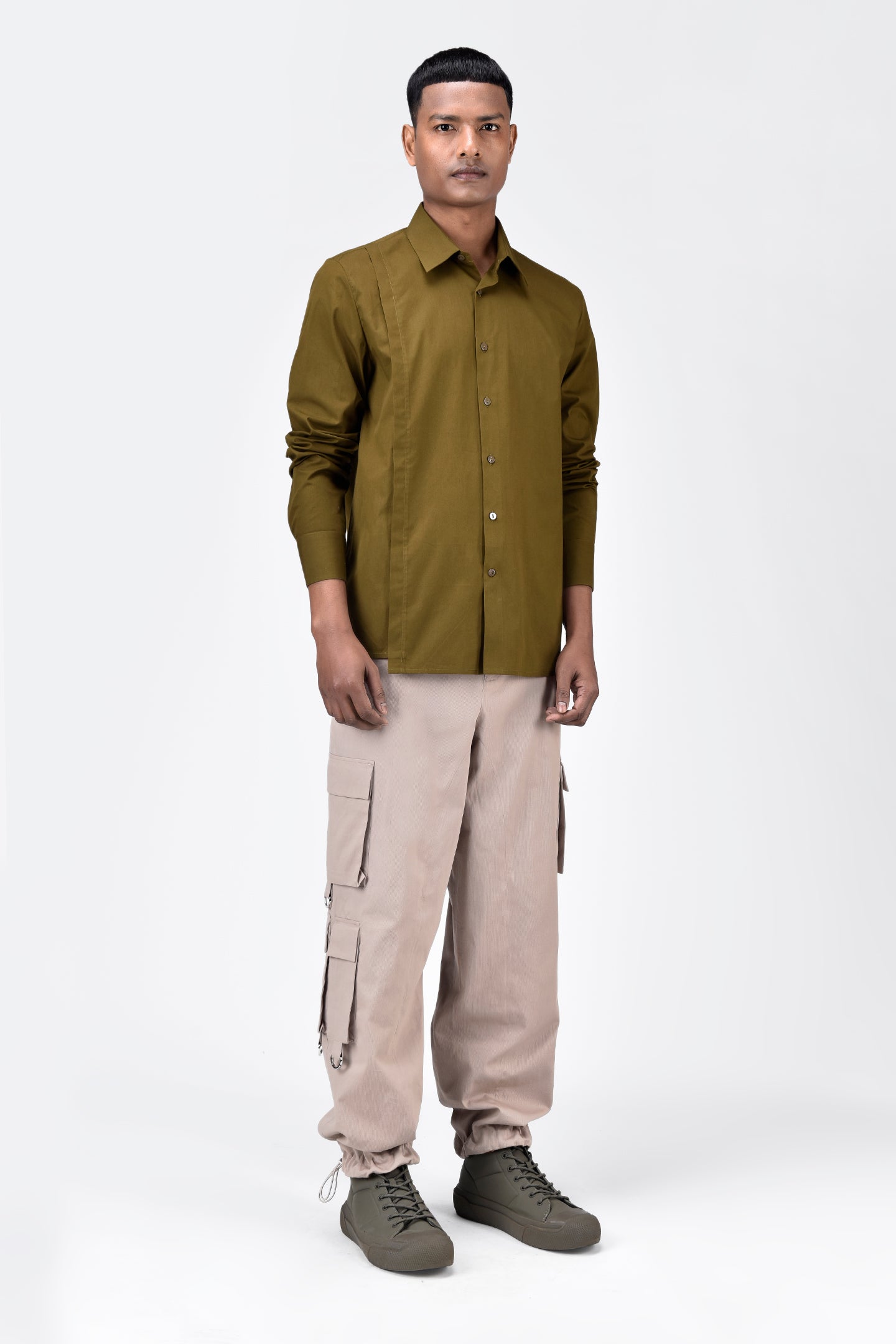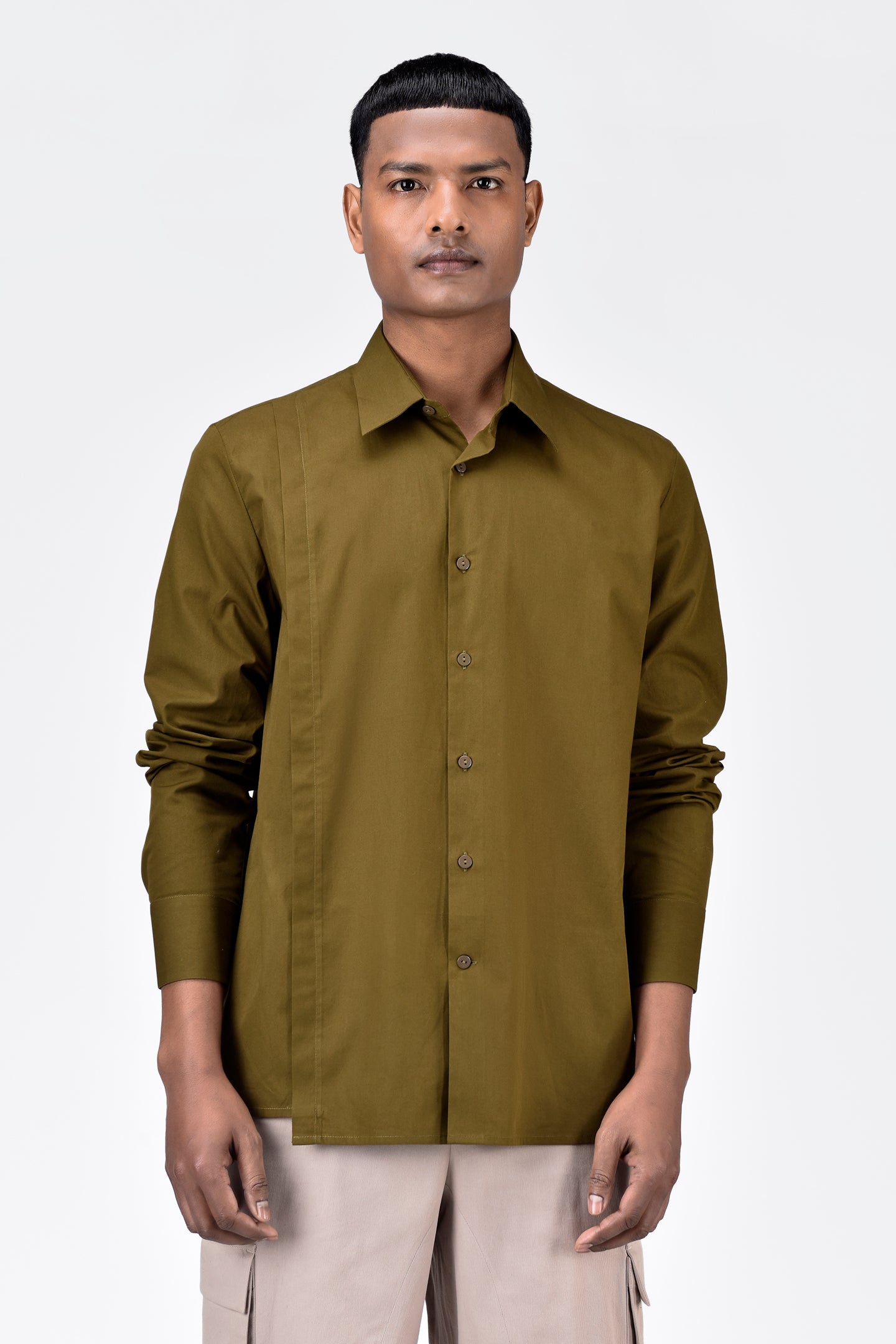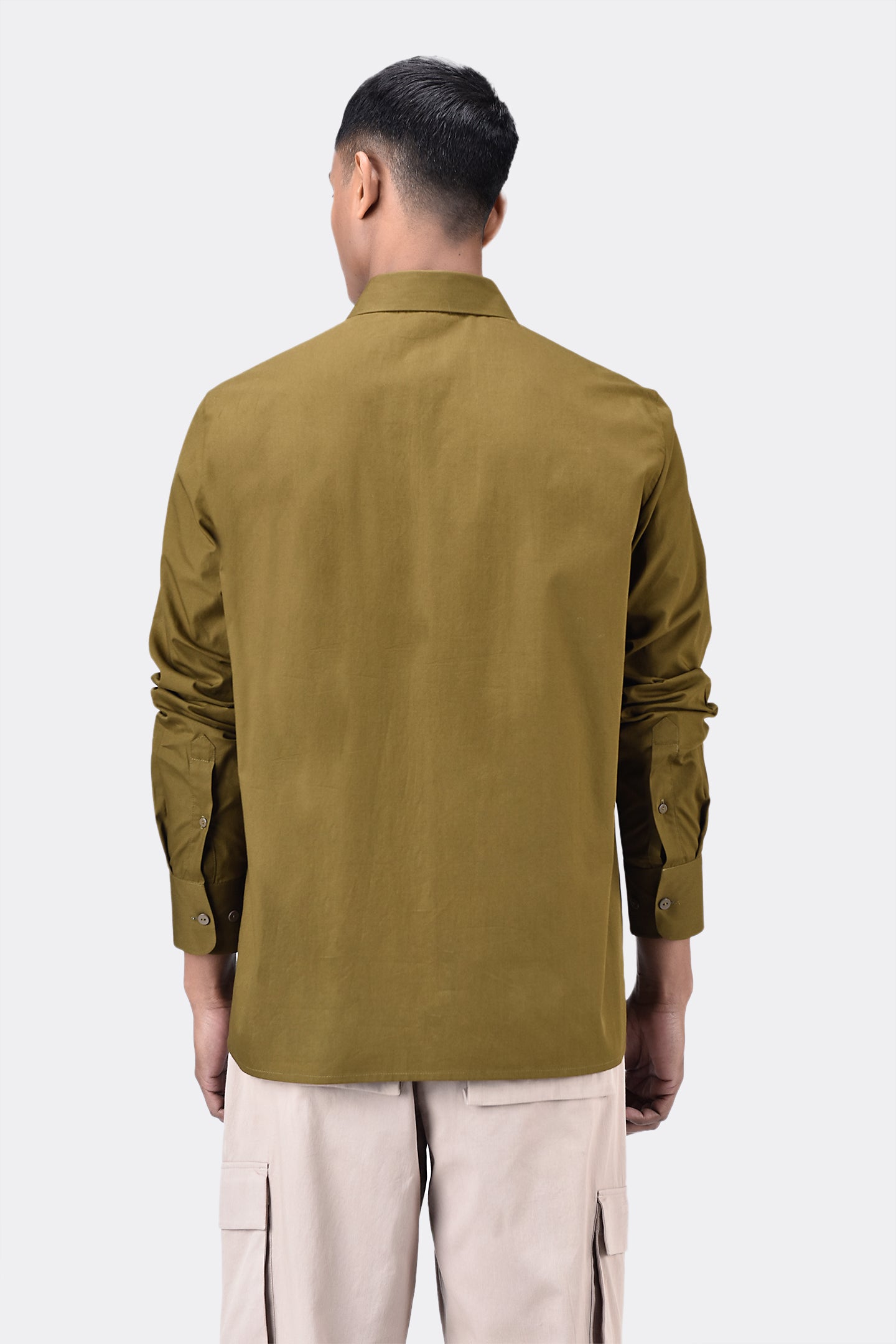 Elevate your wardrobe with our Regular Fit Men's Shirt featuring an edgy asymmetrical hem. Crafted from high-quality khaki cotton poplin, this shirt offers a modern twist on a classic silhouette, perfect for adding a unique touch to your everyday style.