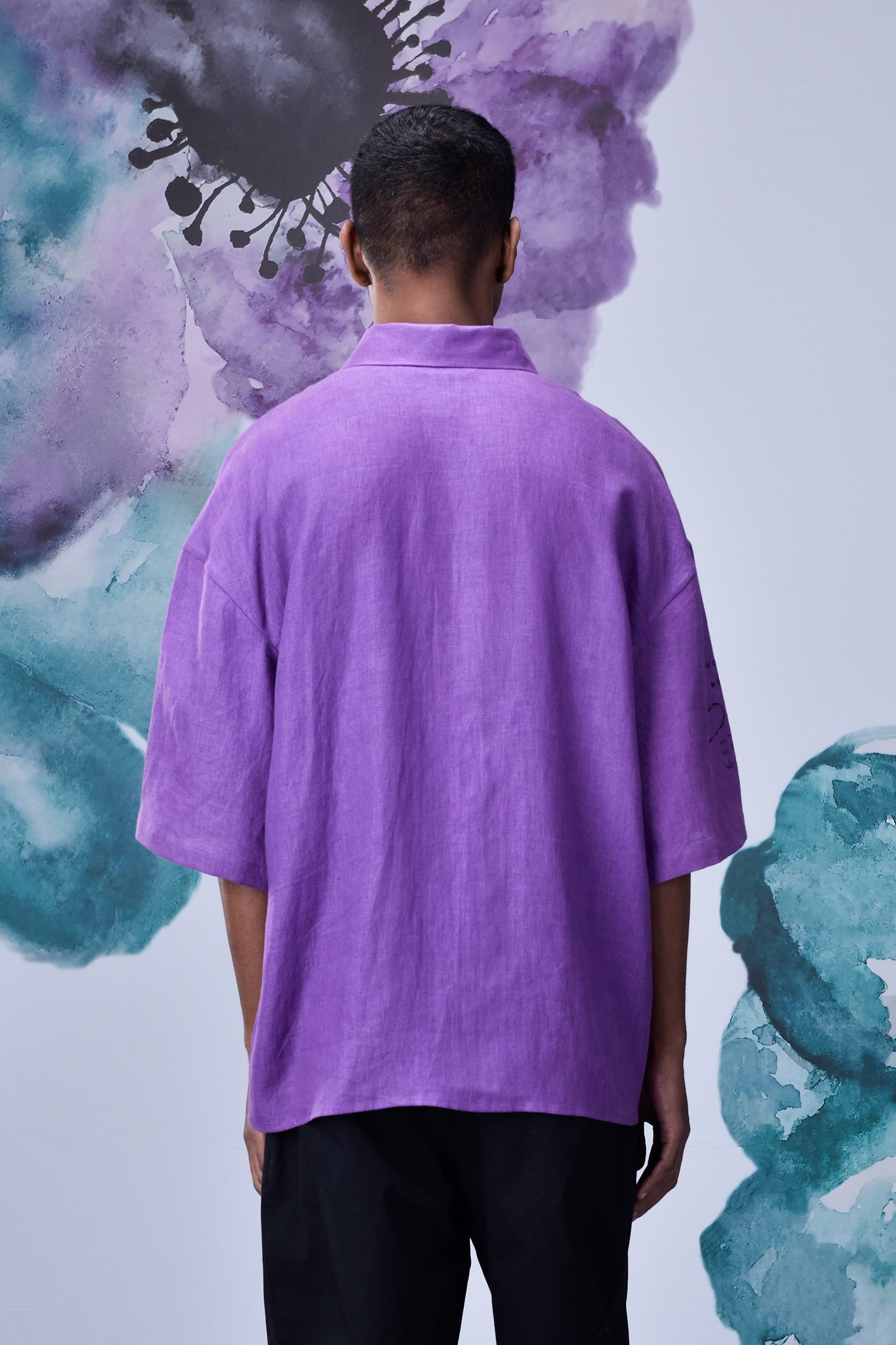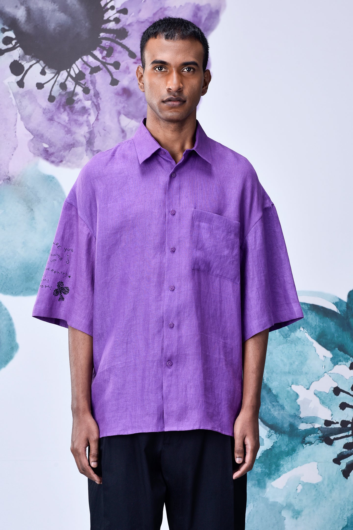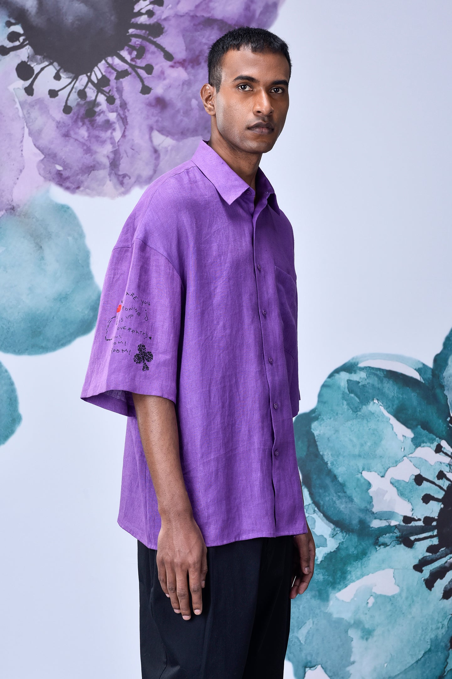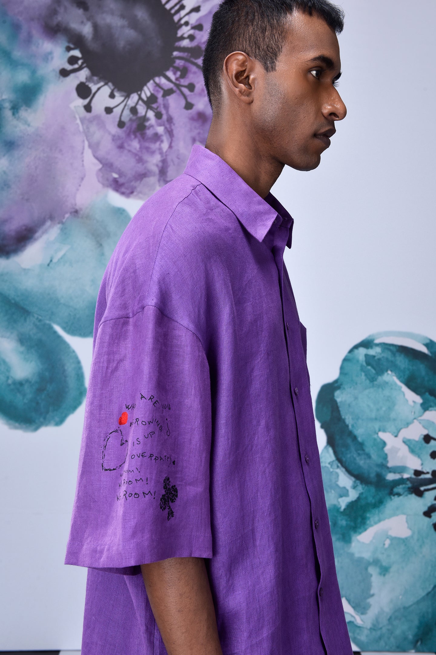 Presenting our Lavender graffiti oversized Shirt perfect blend of casual elegance and breathable comfort, with graffiti type print, evocating expression of joy with wisecrackers that add humor to everyday living.