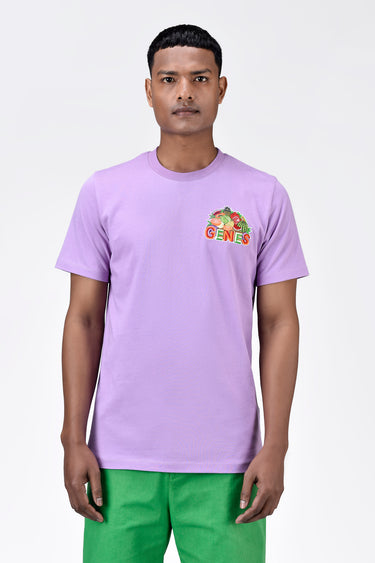 Elevate your casual wear with our Regular Fit Crew Neck T-Shirt, featuring an exquisite Genes fruit basket embroidery placement. Crafted in soft lavender cotton single jersey, this T-shirt combines comfort with playful sophistication, making it a standout addition to your wardrobe.