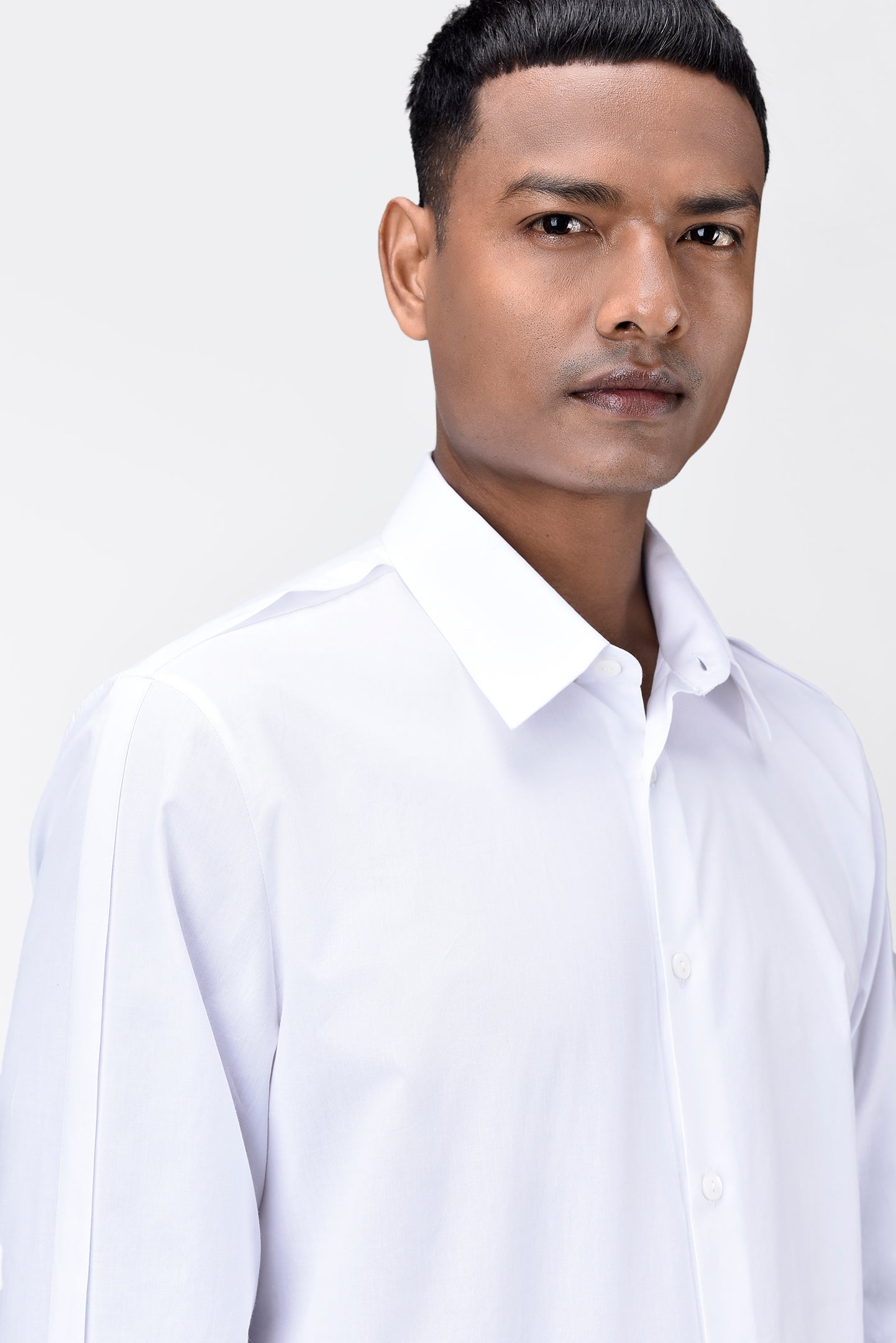 Introducing a unique twist to the classic silhouette, our Regular Fit Men's Button-Down Shirt features an uneven pleat design from shoulder to cuff. Crafted in soft cotton poplin, this shirt combines traditional comfort with innovative detailing for a distinctive, stylish look.