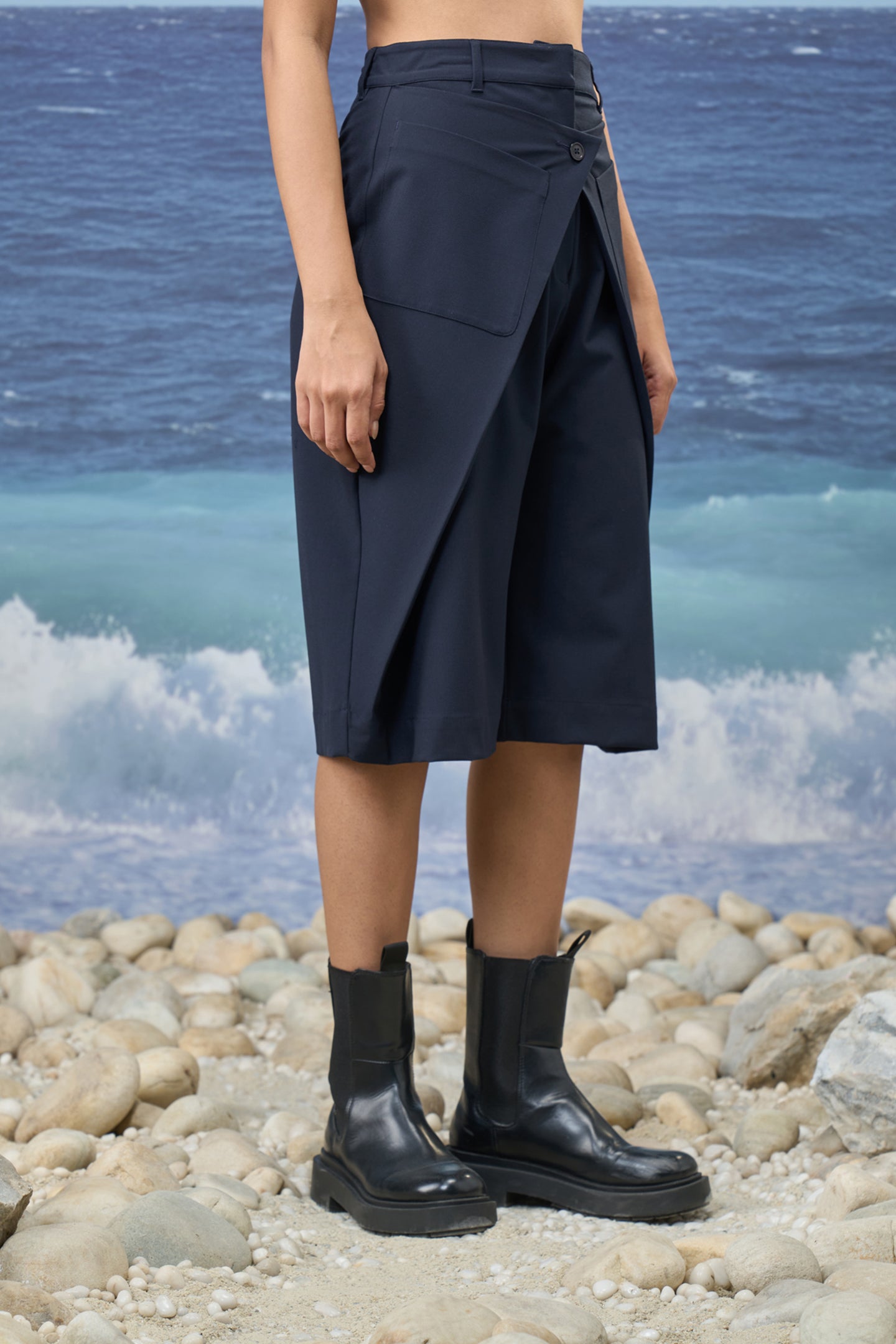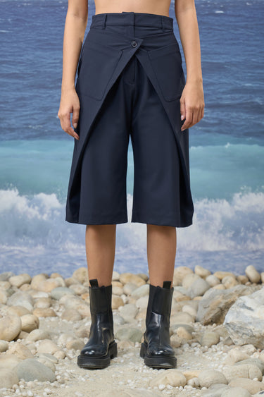 Tailored from smooth poly viscose, these culottes offer a refined balance of structure and fluidity. Rendered in a deep Navy hue, the design feels modern yet timeless, bringing quiet sophistication to everyday dressing. The relaxed silhouette is elevated with clean tailoring details, creating an effortless piece that moves seamlessly between polished and casual contexts.