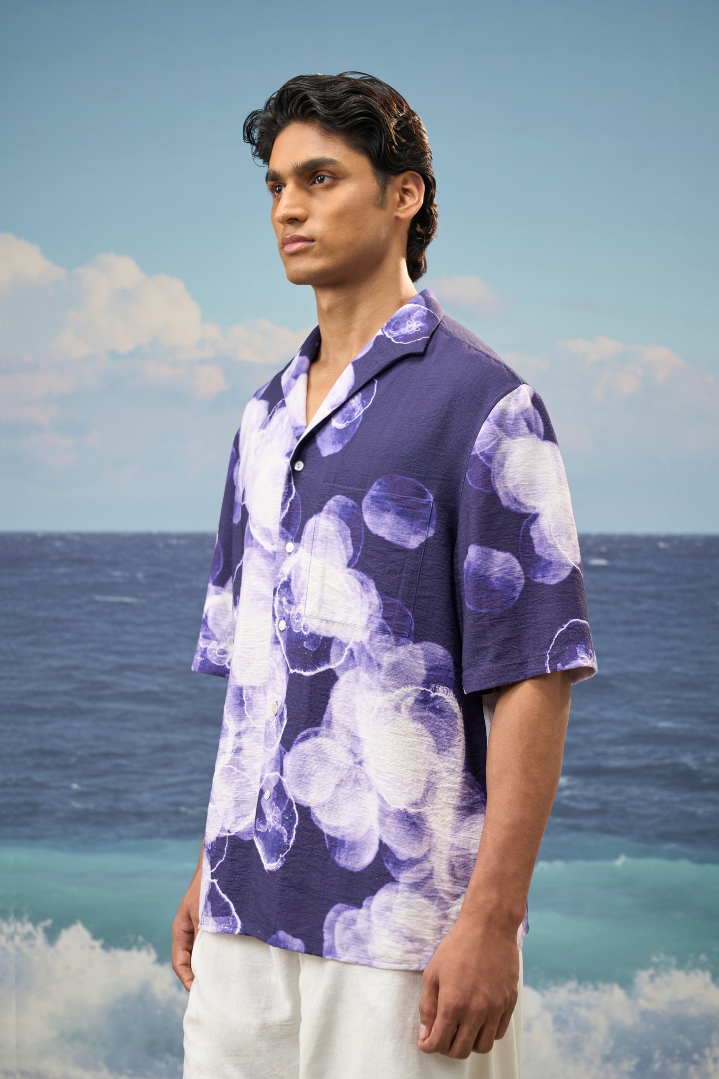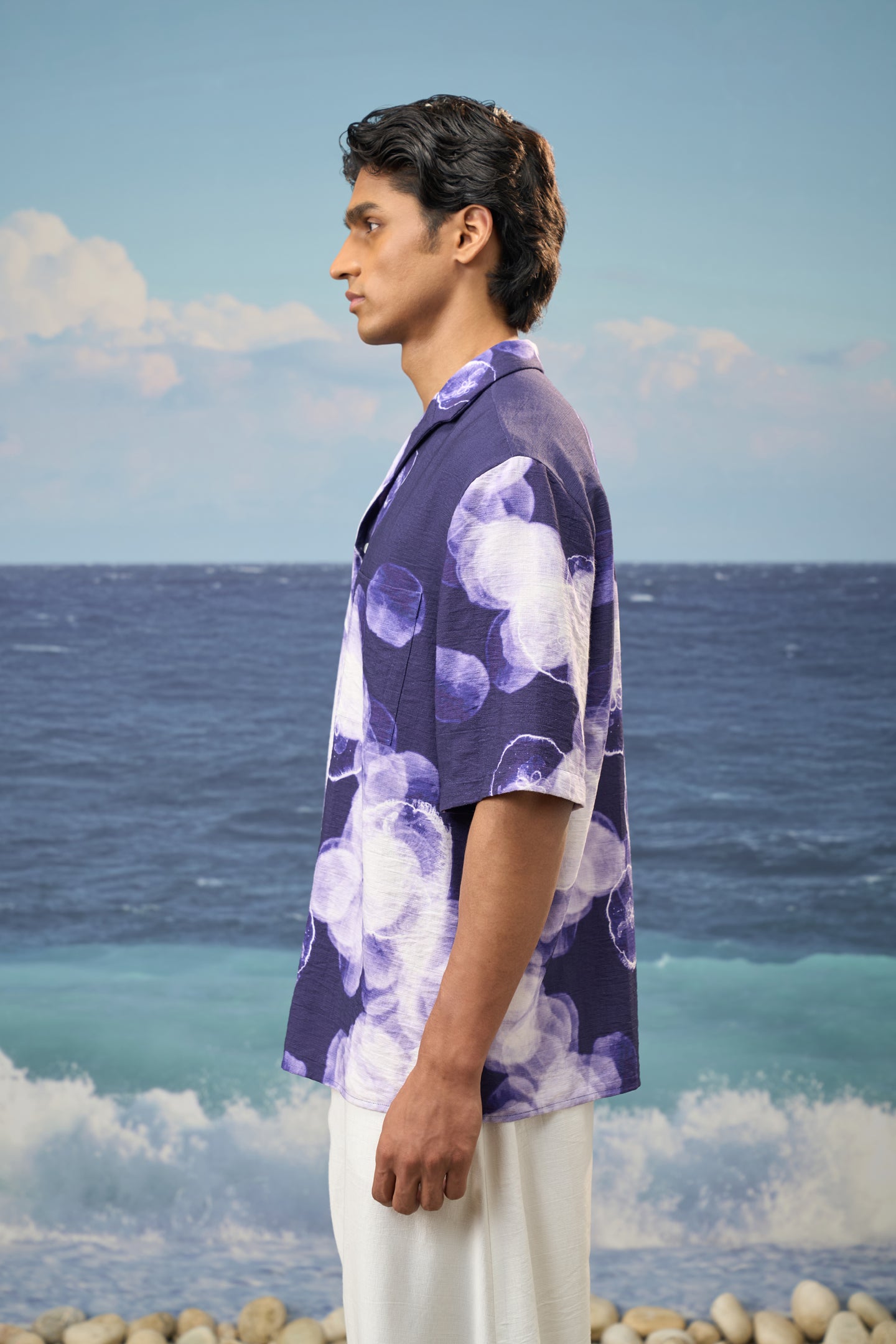 Navy Premium Viscose Nylon Abstract Cloud Print Shirt