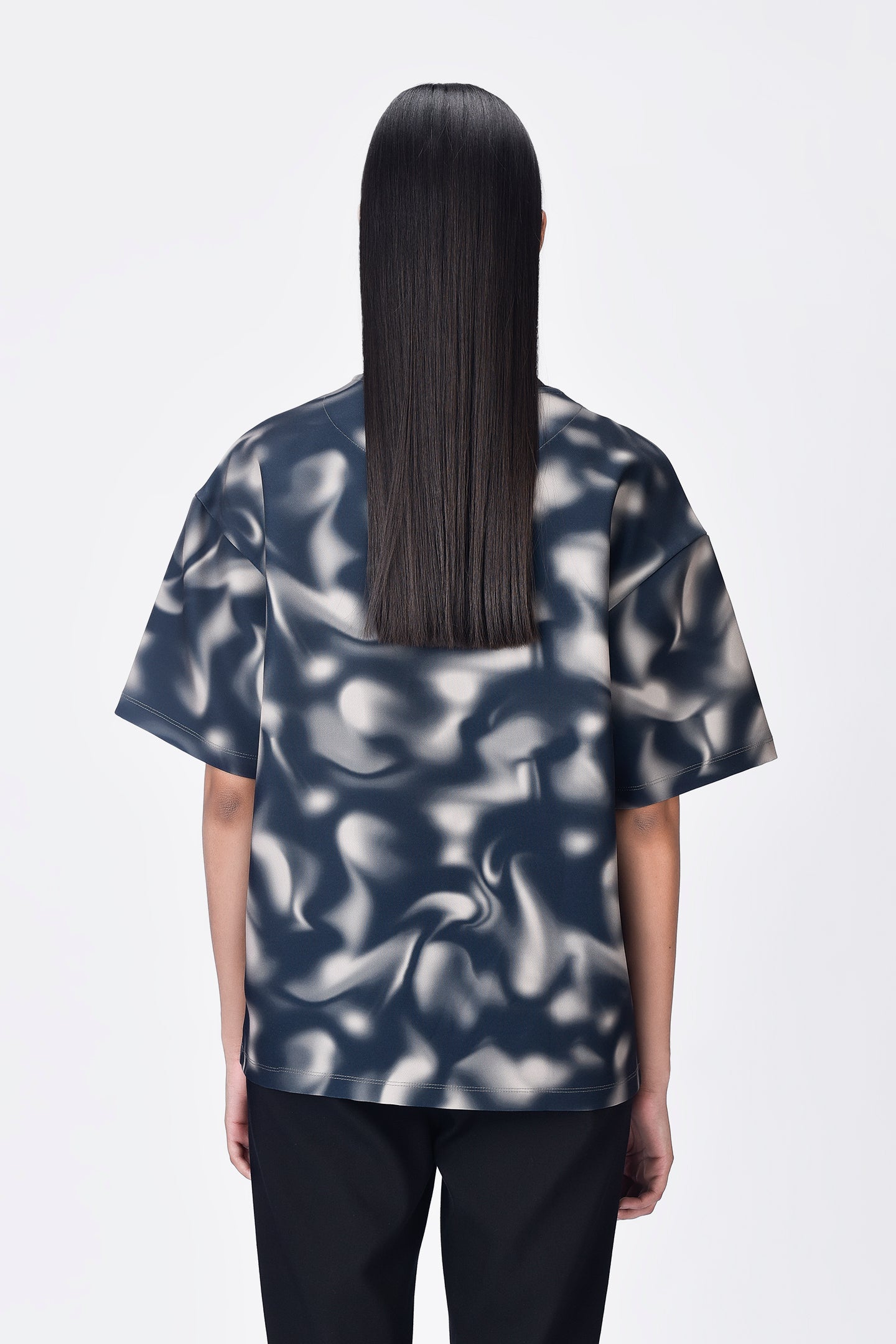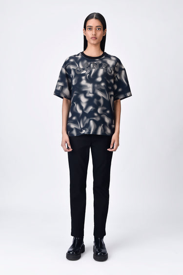 A relaxed fit round neck t-shirt in cotton single jersey, featuring an all-over aurora print with Genes typography superimposed for a striking visual statement.