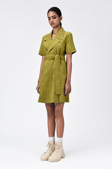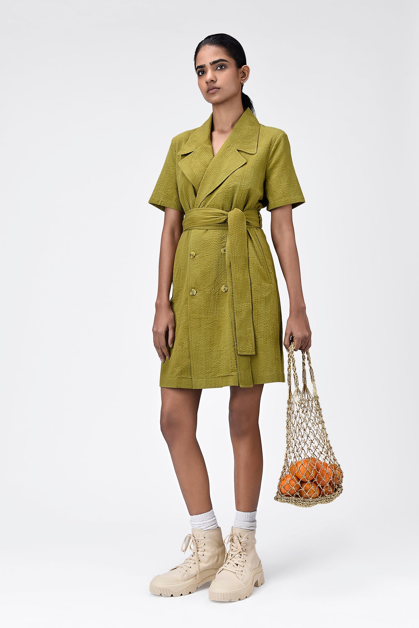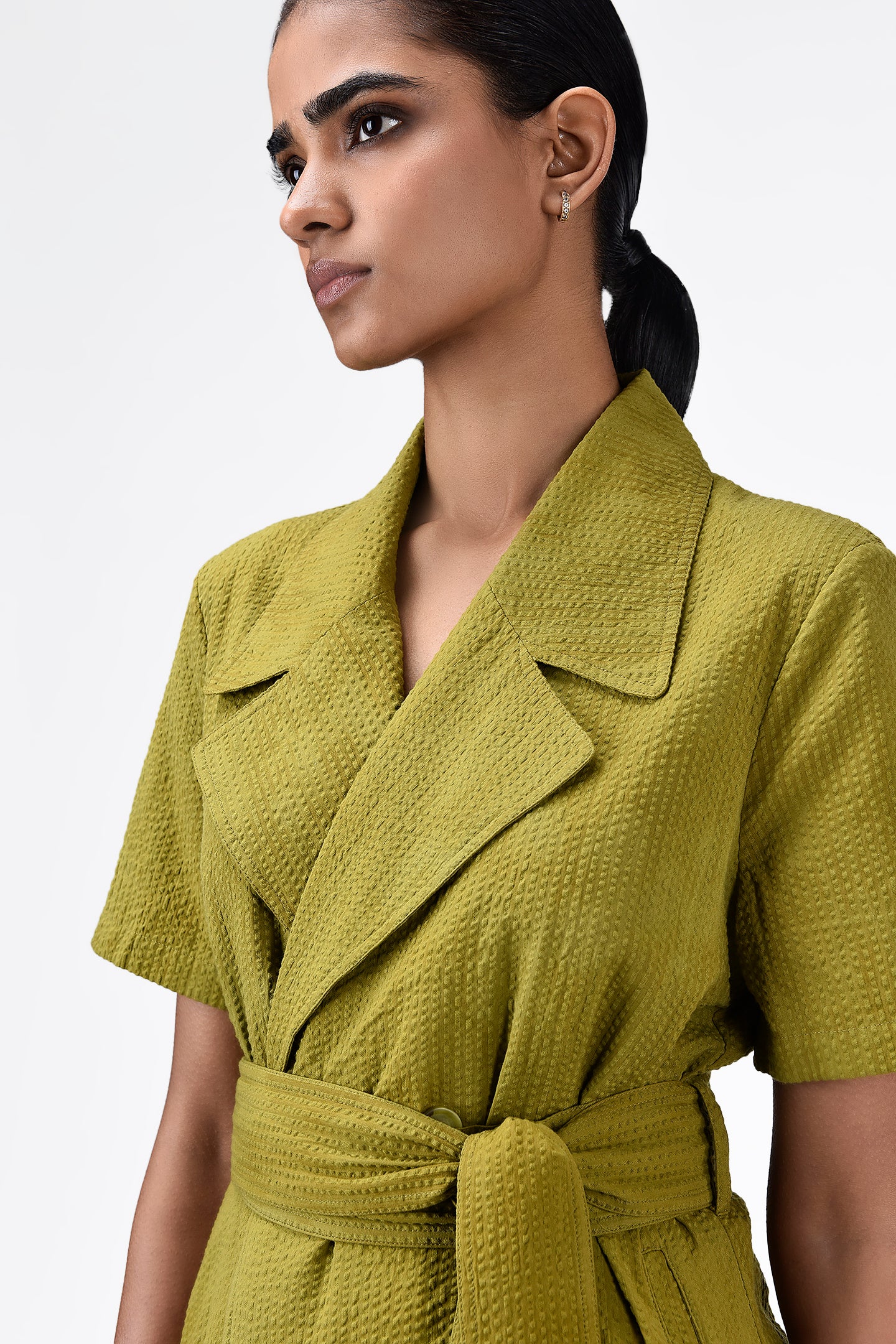 Straight Fit Dress With Tie-Up Waist-Bright Olive