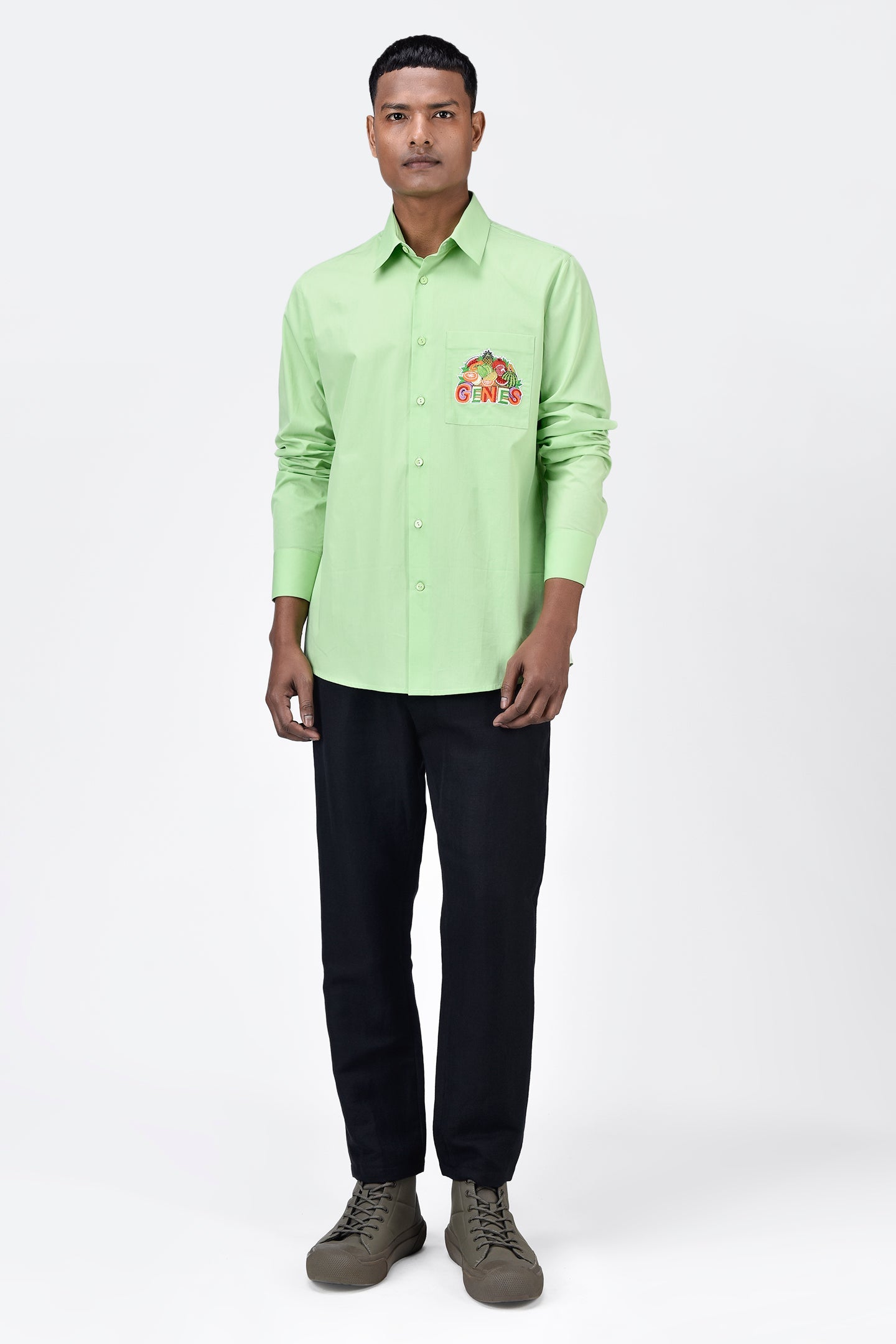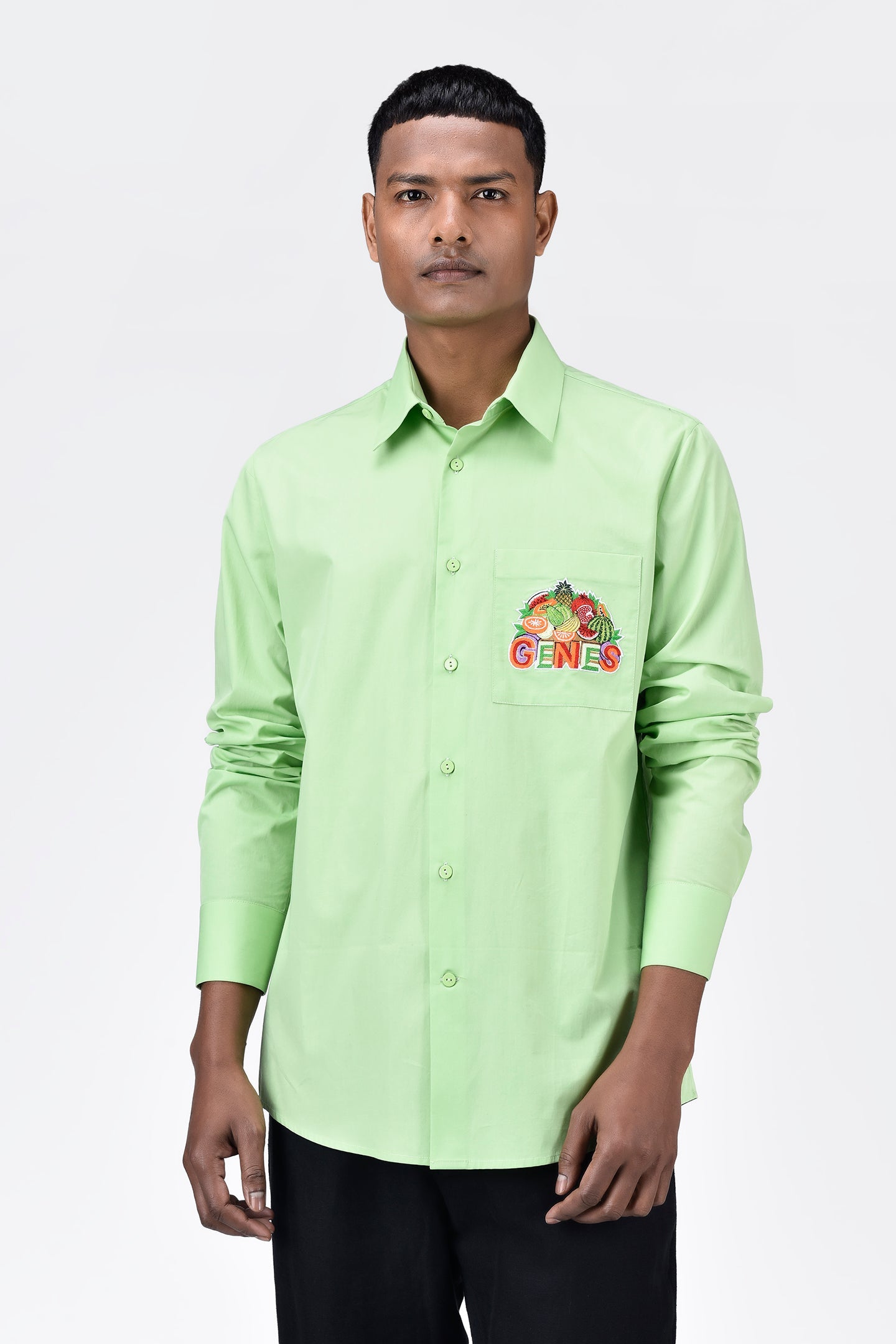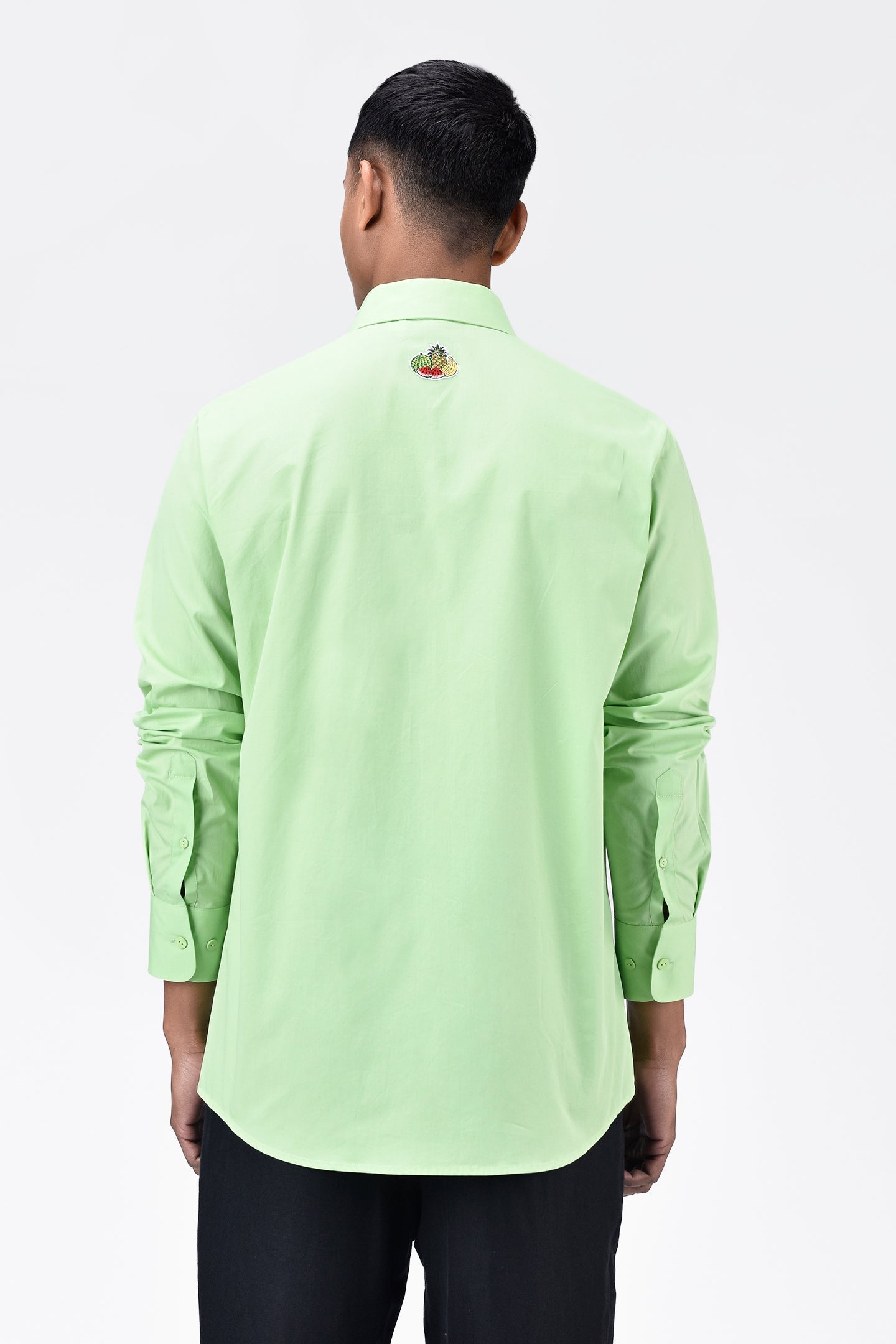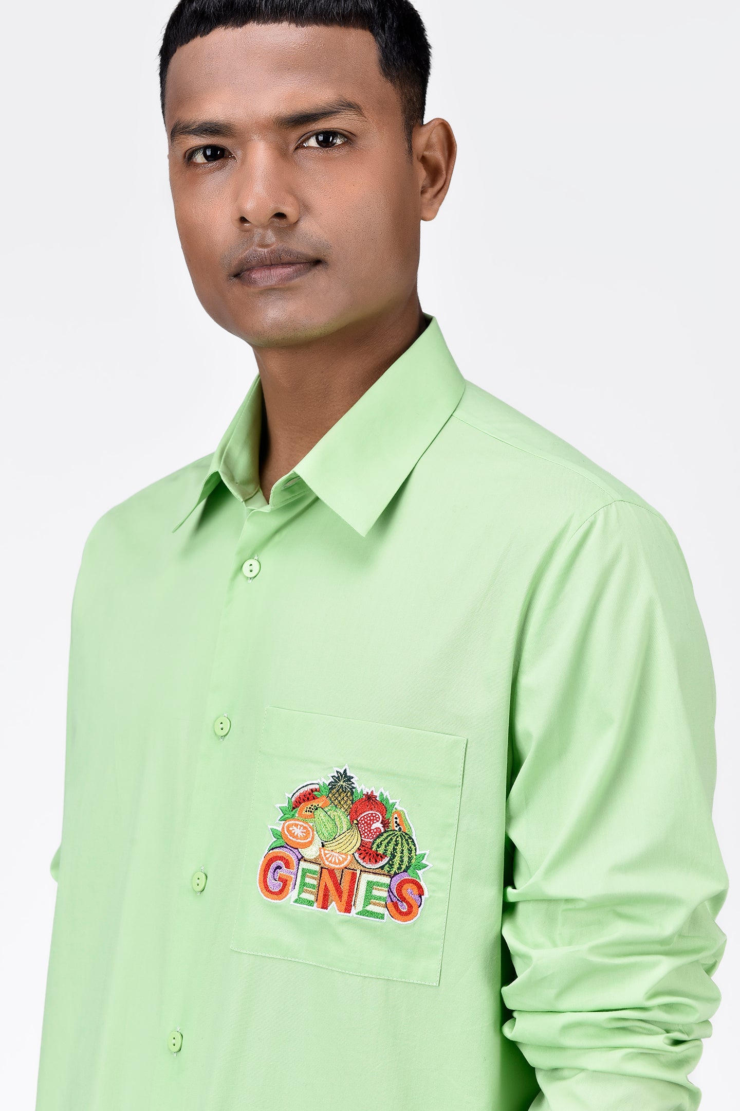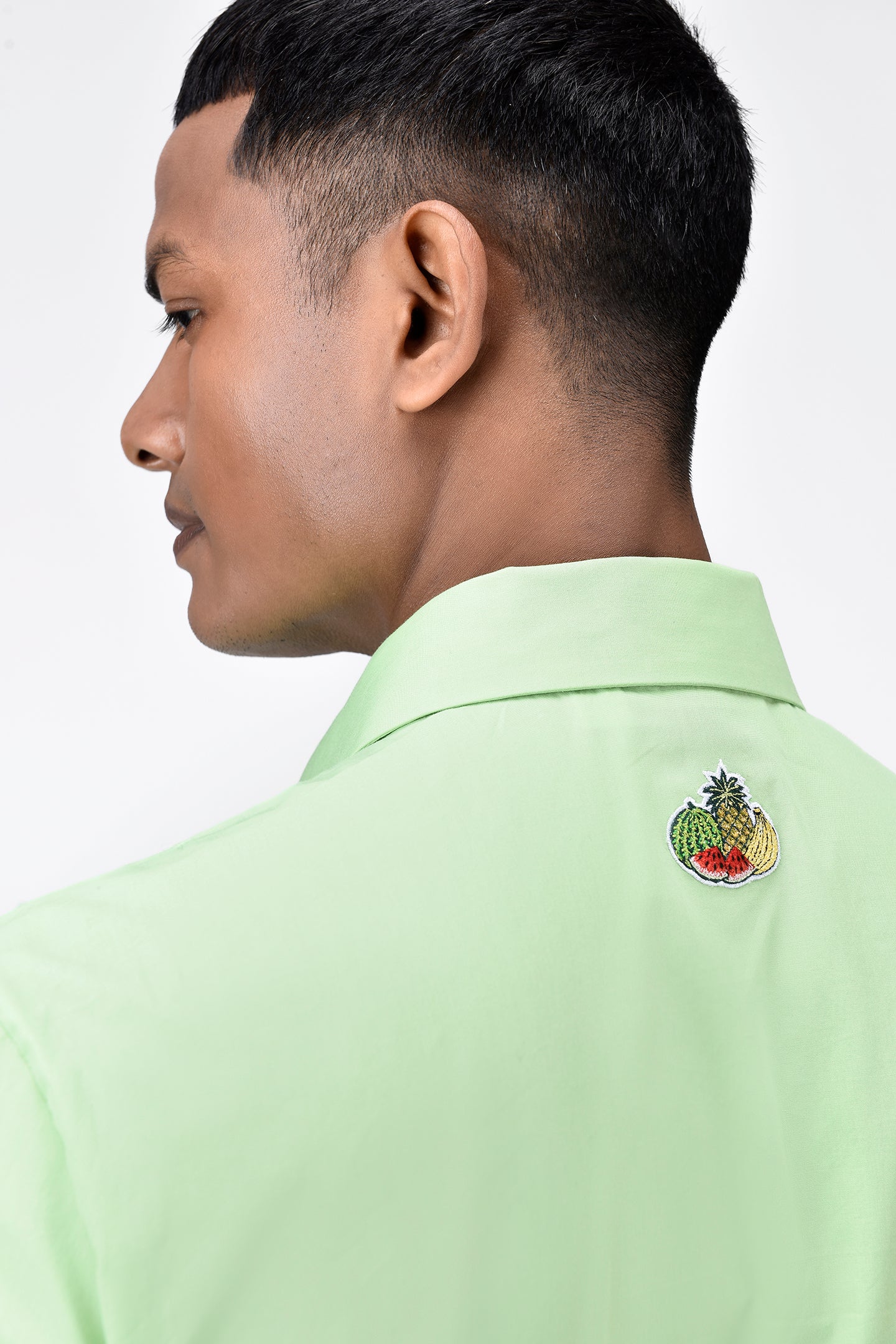 Men's Regular Fit Button Up Shirt with Fruit Basket Embroidery-Mint Green